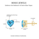 3 CT Heart Shape Swiss Blue Topaz Solitaire Stud Earrings