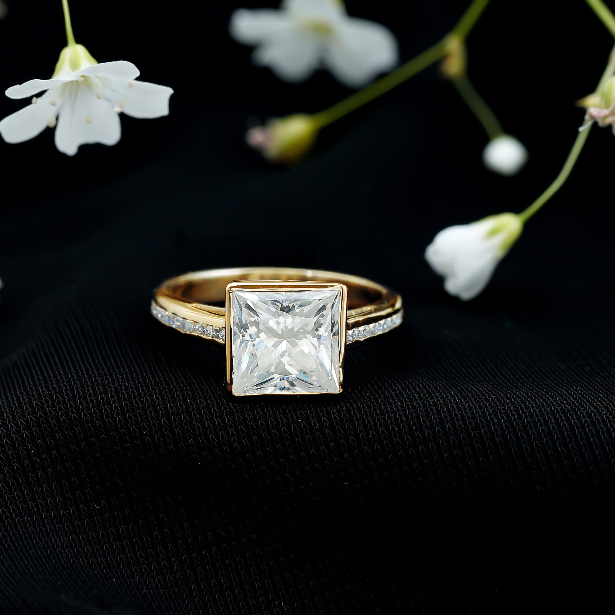 3 CT Moissanite Bezel Set Engagement Ring with Channel Set
