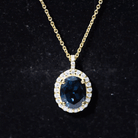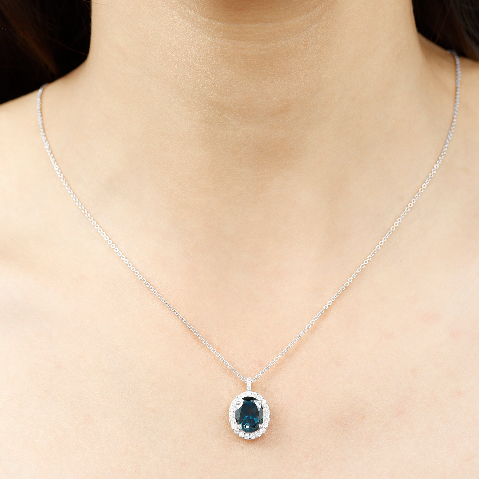 3 CT Oval Cut London Blue Topaz and Diamond Halo Pendant