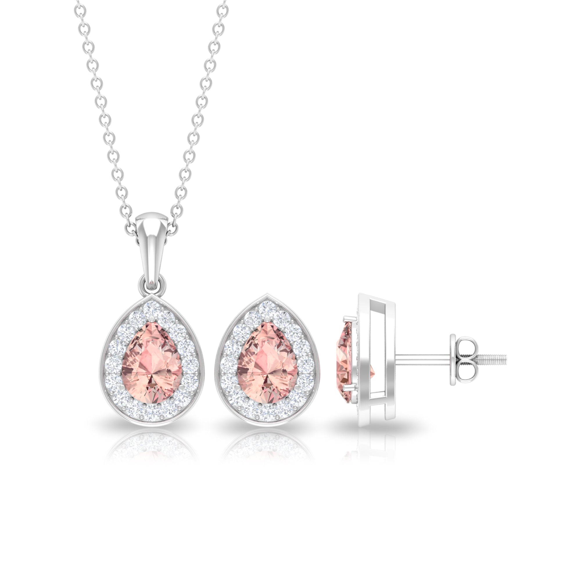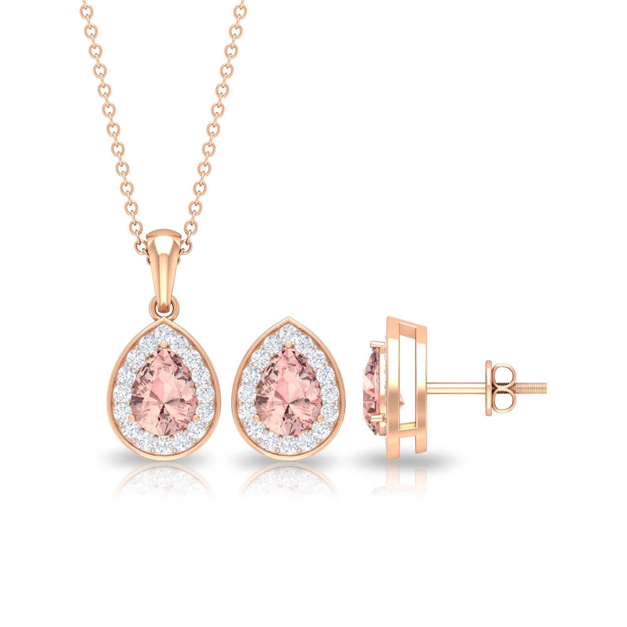 3 CT Pear Cut Peach Morganite Jewelry Set with Moissanite