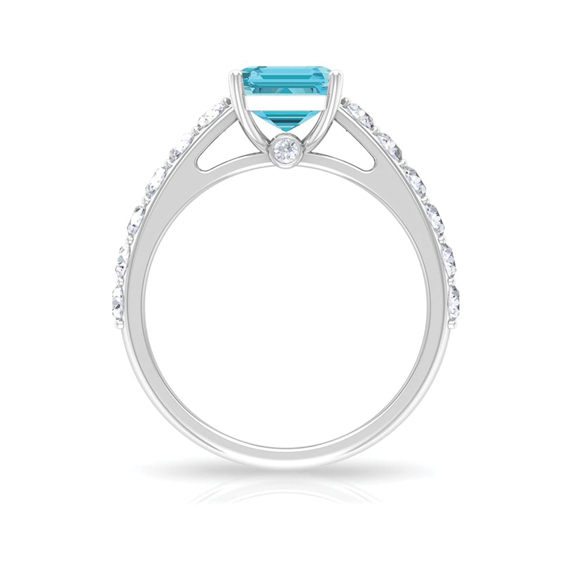 3 CT Swiss Blue Topaz Solitaire with Moissanite Side Stone Ring