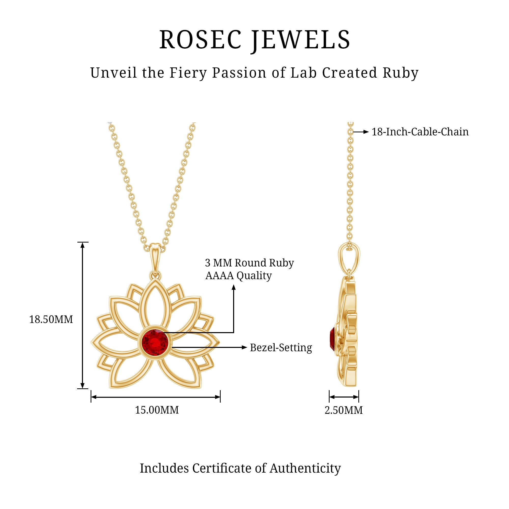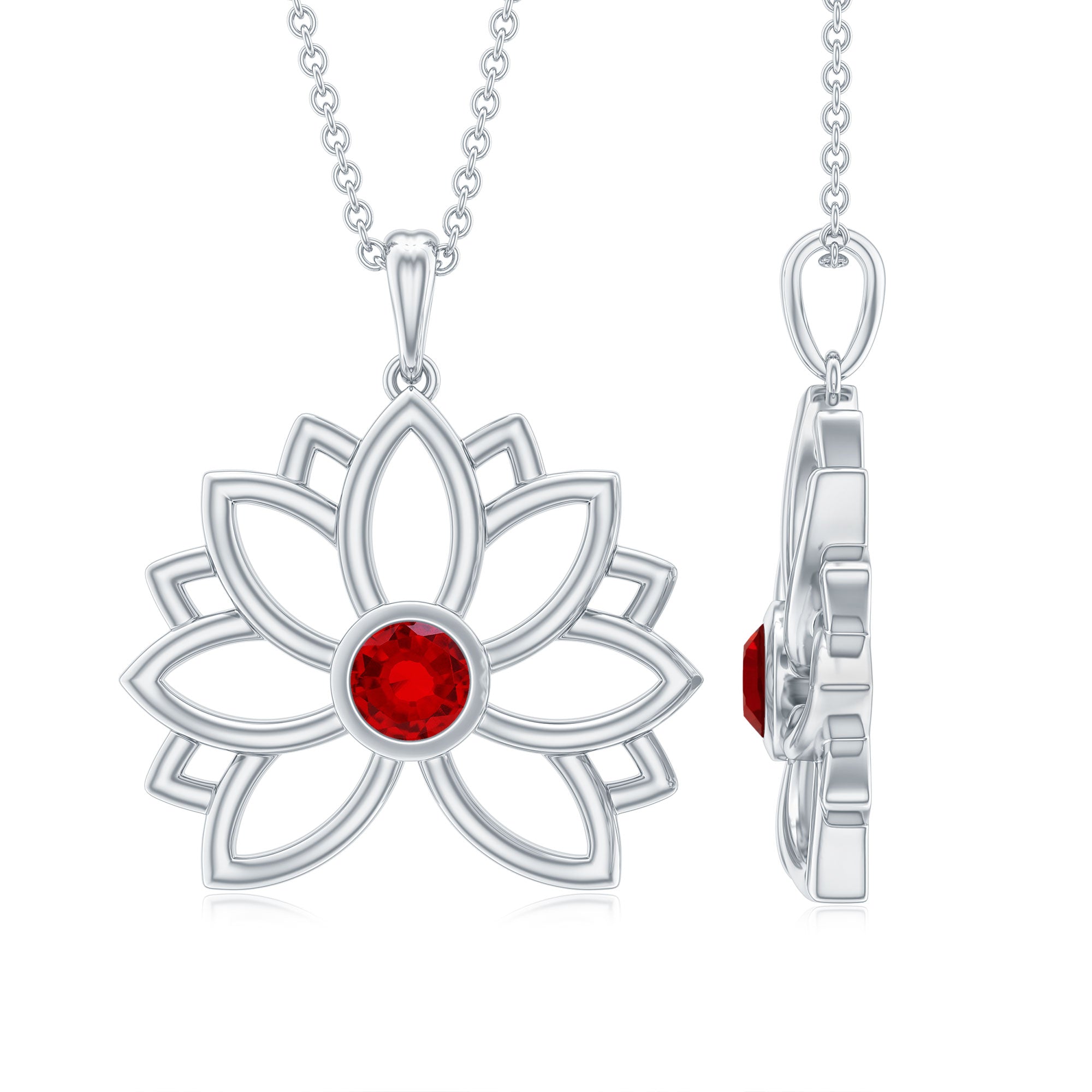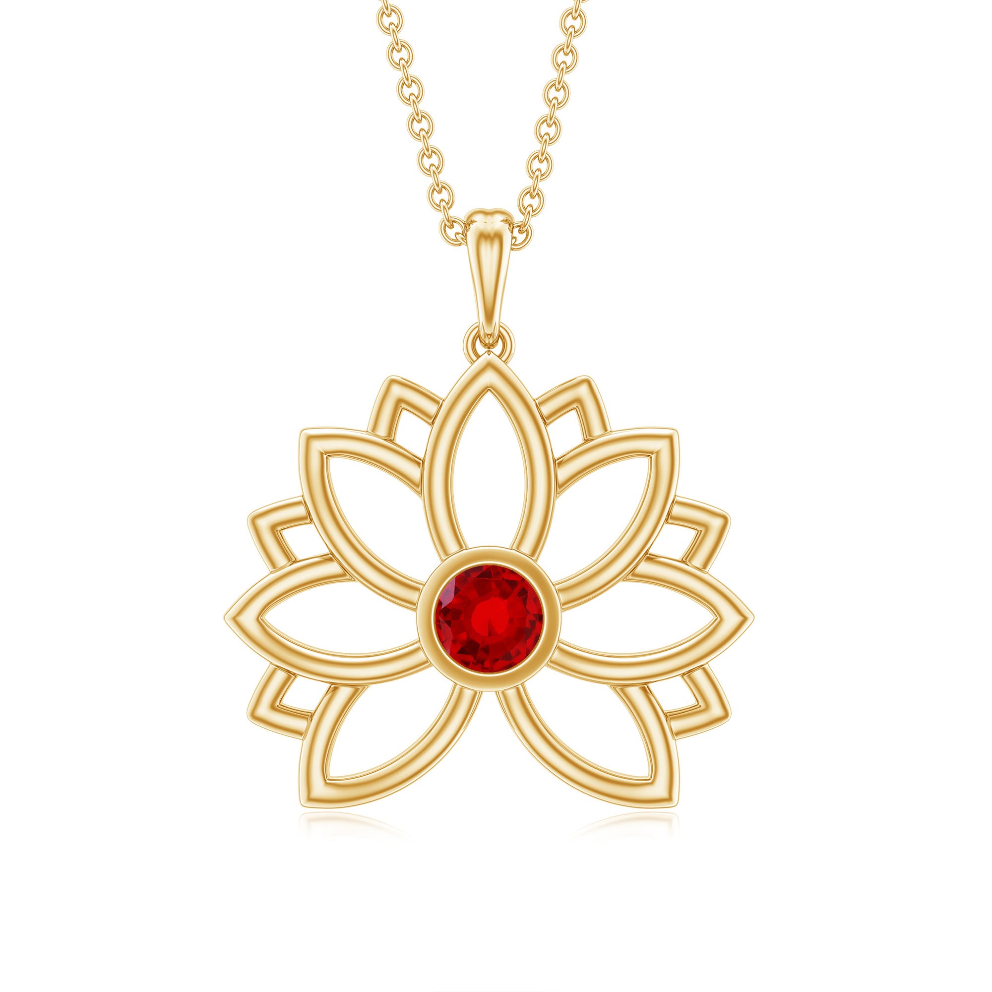 3 MM Created Ruby Lotus Flower Gold Necklace