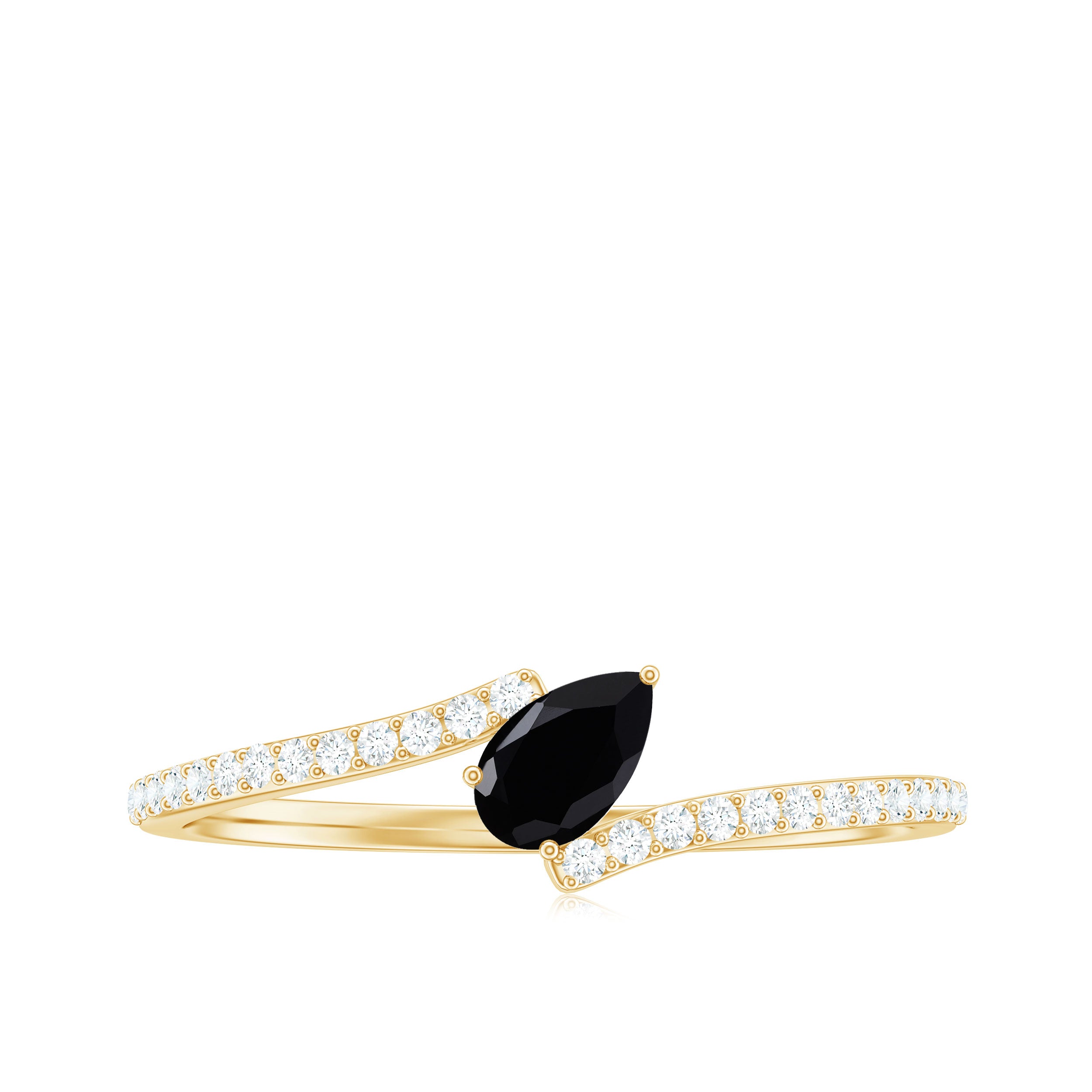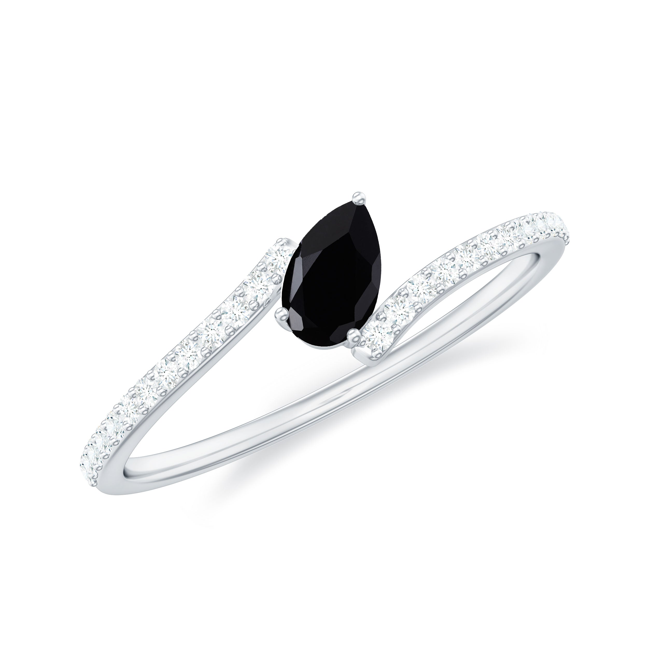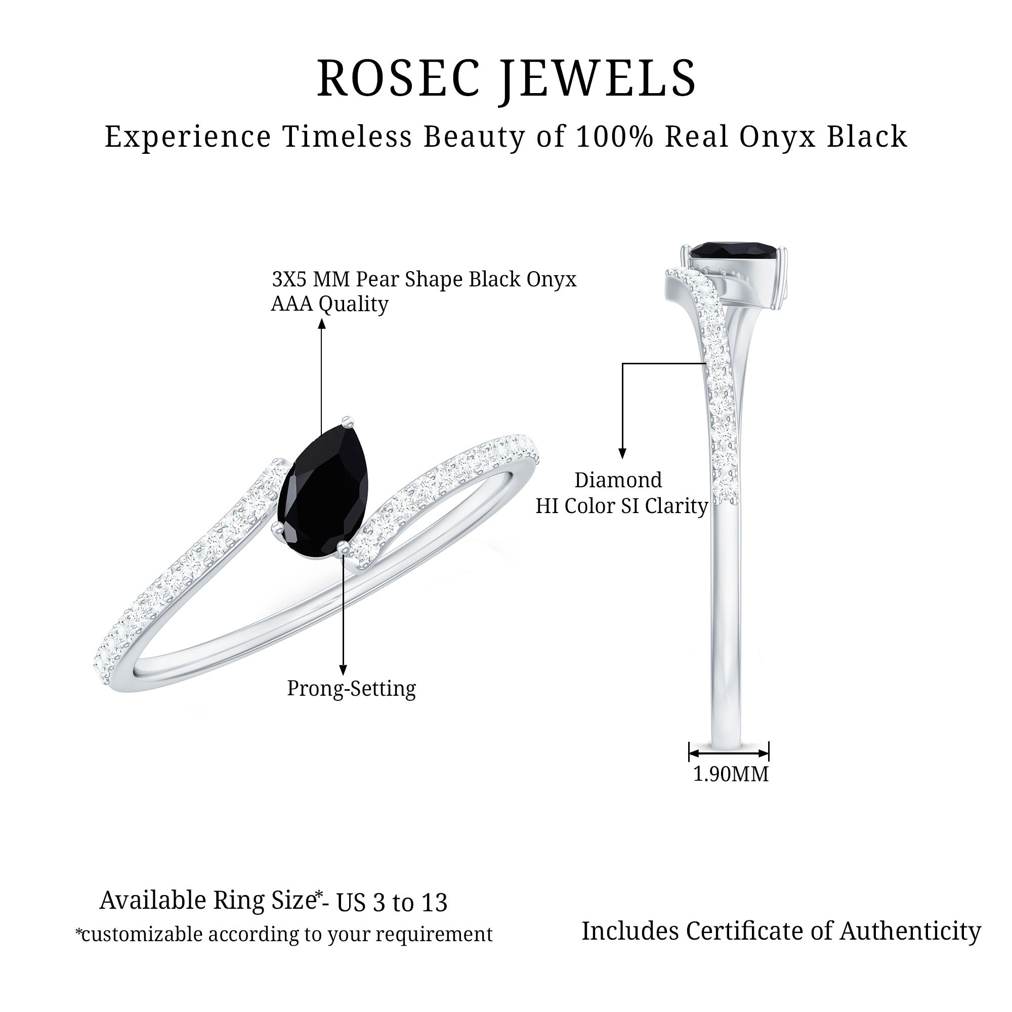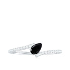 3X5mm Pear Cut Black Onyx Solitaire Promise Ring with Diamond Bypass Shank