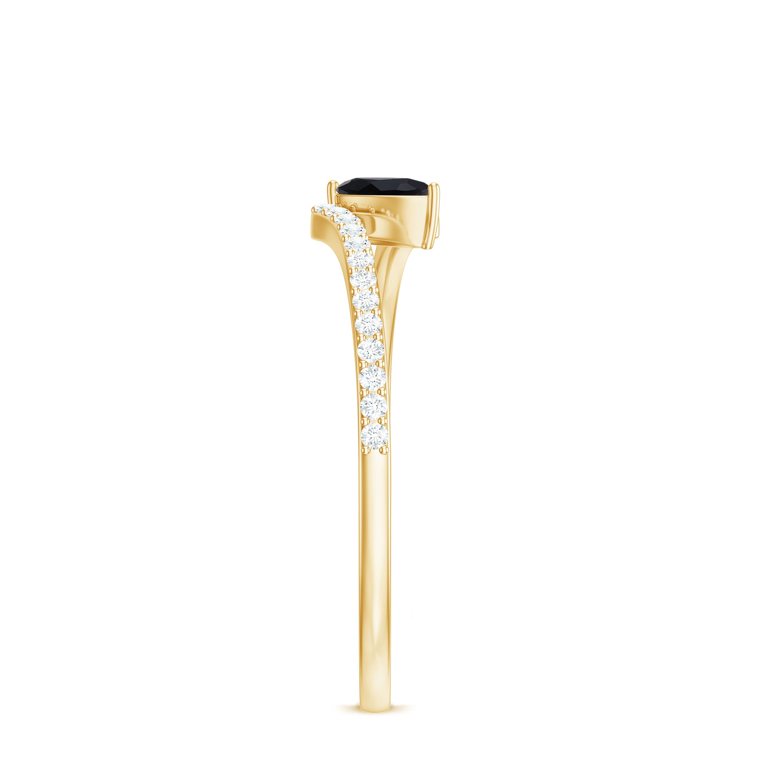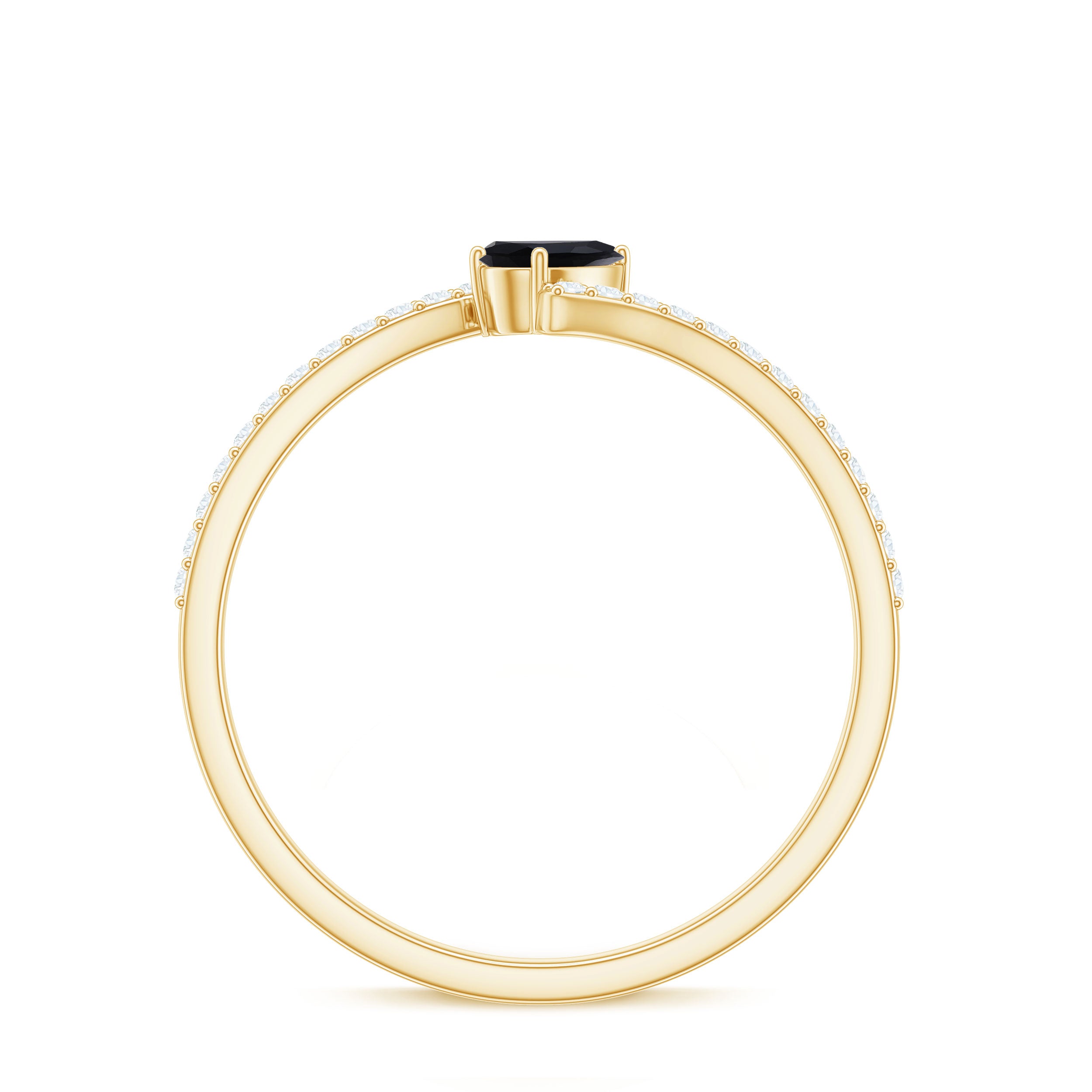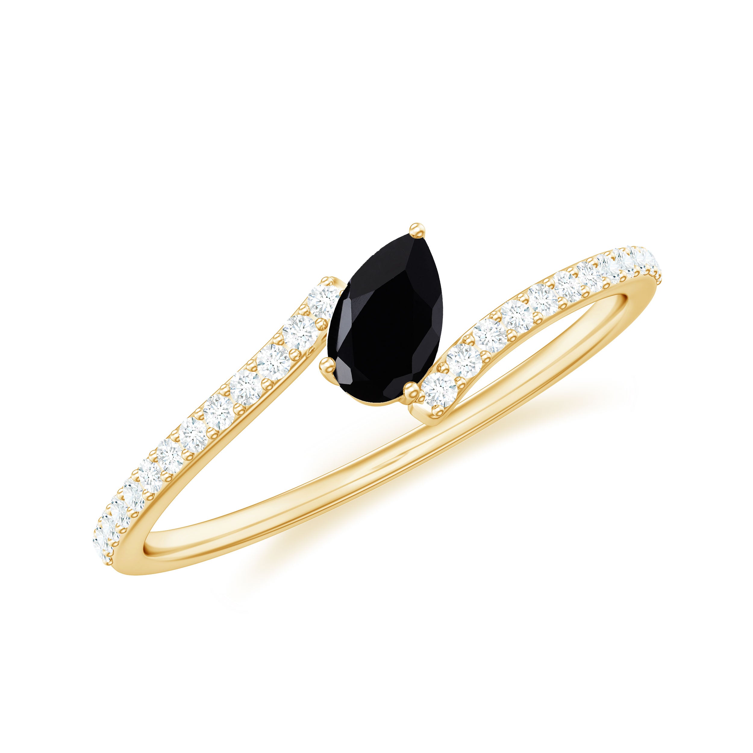 3X5mm Pear Cut Black Onyx Solitaire Promise Ring with Diamond Bypass Shank