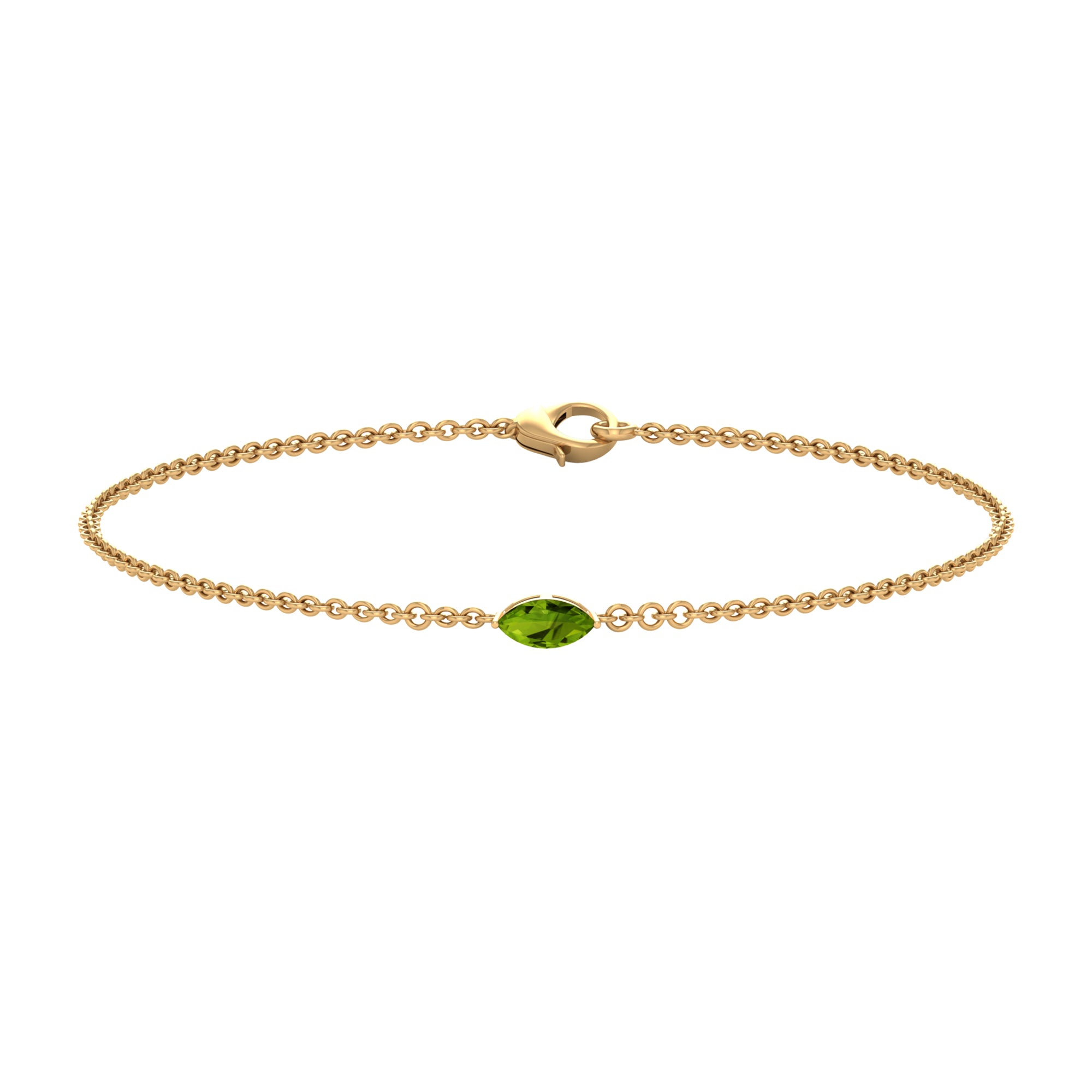 Grab this shinning Solitaire Chain Bracelet for your Lady Love embellished with Marquise Cut Peridot in Solid Gold with 2 Prong Setting. This is a perfect for gifting it on her birthday.