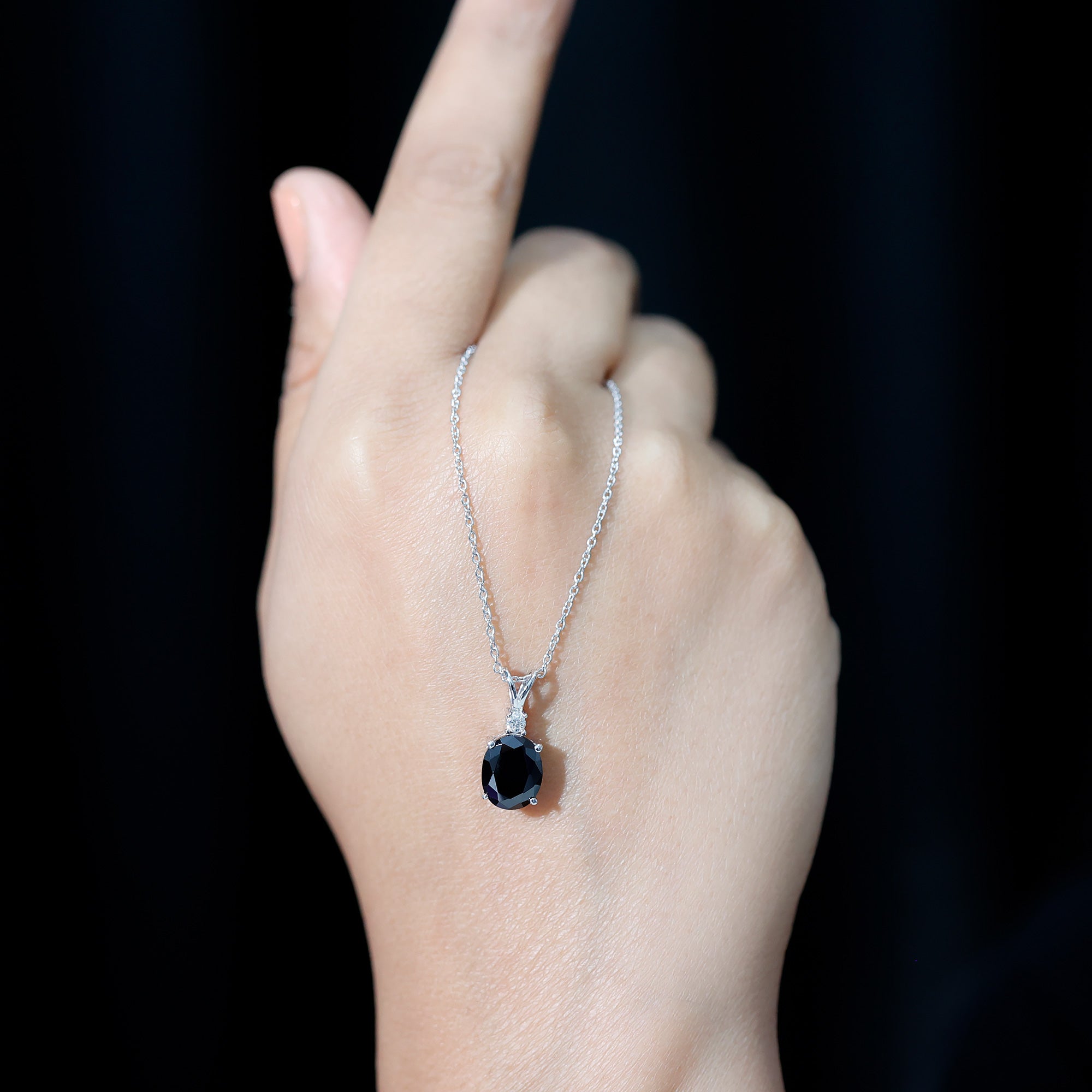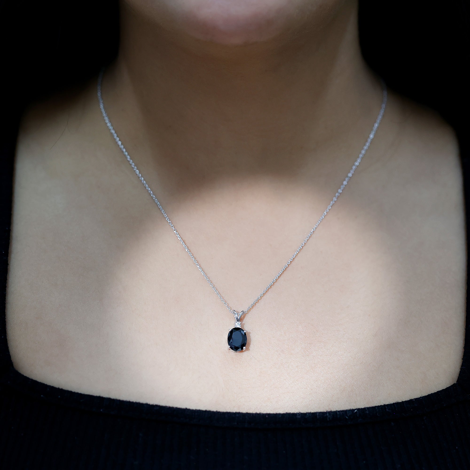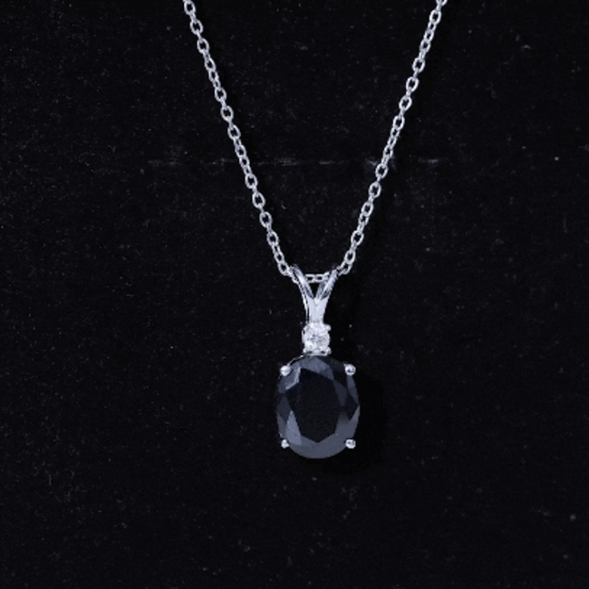 This stunning Lab Grown Black Diamond Necklace effortlessly combines vintage charm with contemporary style. Meticulously crafted with precision, this pendant features an 8X10mm Oval Shape Lab Grown Black Diamond set in a prong setting, complemented by round brilliant cut Moissanite that sparkles from above. Suspended from a chain, this Oval Locket showcases a remarkable and striking design, while the AAAA Quality Lab Black Diamond adds an impressive element that embodies timeless elegance, symbolizing beauty and wisdom. With its incredibly adaptable design, it presents a classic Lab Black Diamond Pendant, making it a favored option for individuals in search of beauty and spiritual enrichment. As a representation of elegance and sophistication, this Solitaire Necklace serves as an extraordinary means of capturing beauty with its captivating and enchanting hue. Providing a unique and distinct charm, it draws the observer attention with its exceptional allure. Create a breathtaking impression with this big stone necklace, a magnificent addition to any jewelry collection that is destined to be cherished for many years ahead.