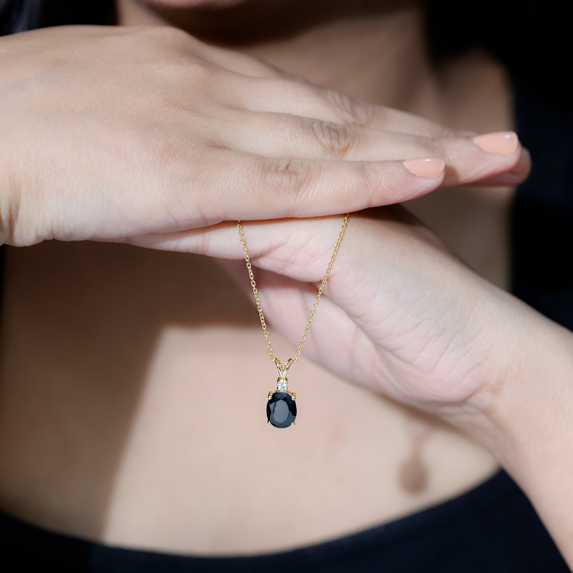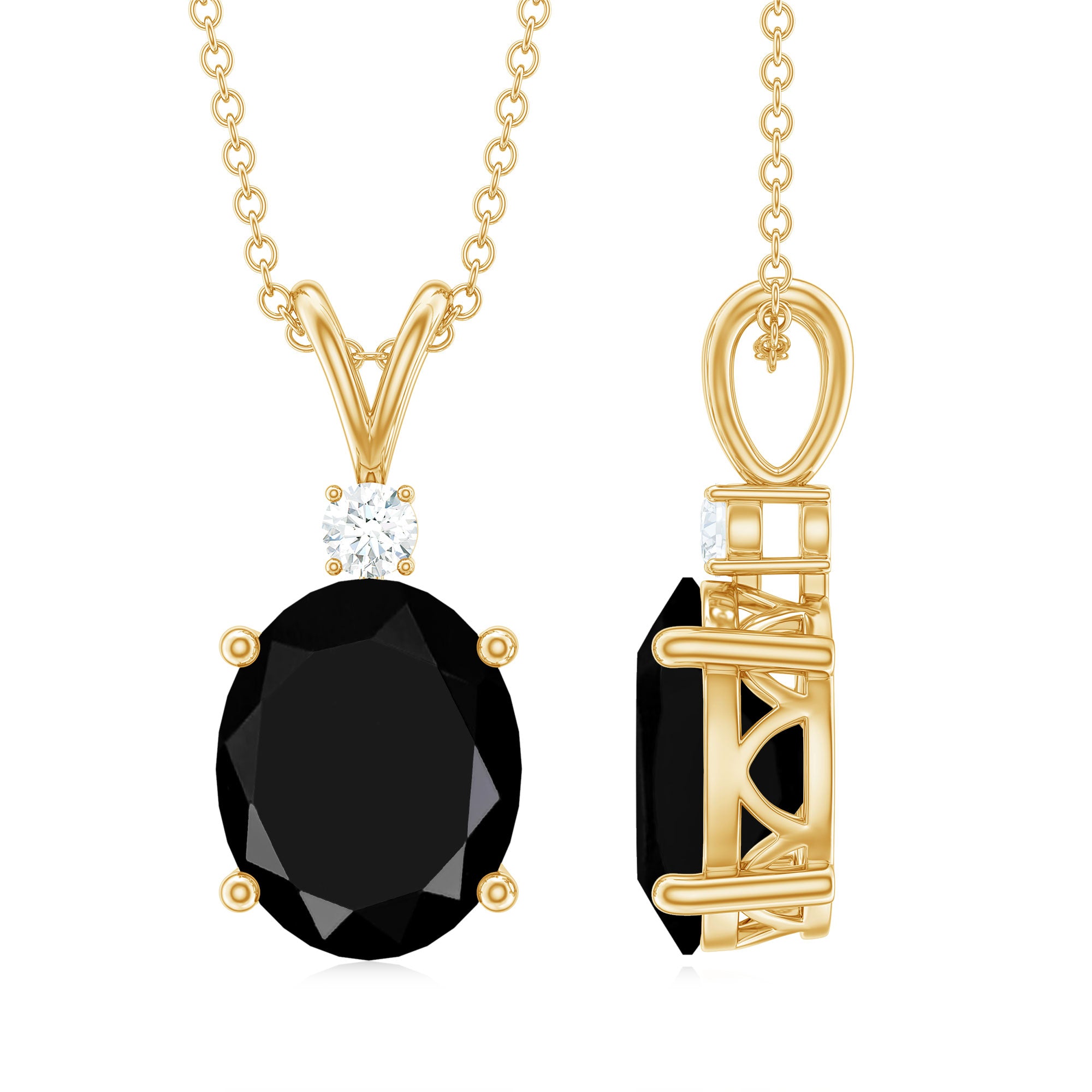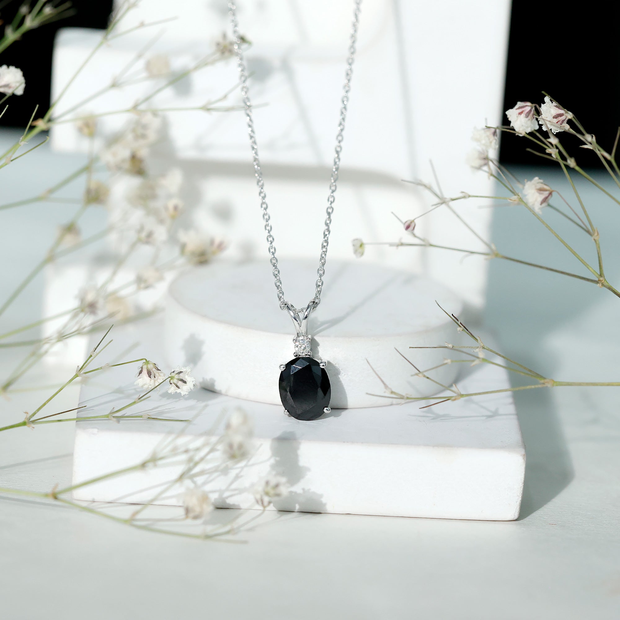 This stunning Lab Grown Black Diamond Necklace effortlessly combines vintage charm with contemporary style. Meticulously crafted with precision, this pendant features an 8X10mm Oval Shape Lab Grown Black Diamond set in a prong setting, complemented by round brilliant cut Moissanite that sparkles from above. Suspended from a chain, this Oval Locket showcases a remarkable and striking design, while the AAAA Quality Lab Black Diamond adds an impressive element that embodies timeless elegance, symbolizing beauty and wisdom. With its incredibly adaptable design, it presents a classic Lab Black Diamond Pendant, making it a favored option for individuals in search of beauty and spiritual enrichment. As a representation of elegance and sophistication, this Solitaire Necklace serves as an extraordinary means of capturing beauty with its captivating and enchanting hue. Providing a unique and distinct charm, it draws the observer attention with its exceptional allure. Create a breathtaking impression with this big stone necklace, a magnificent addition to any jewelry collection that is destined to be cherished for many years ahead.