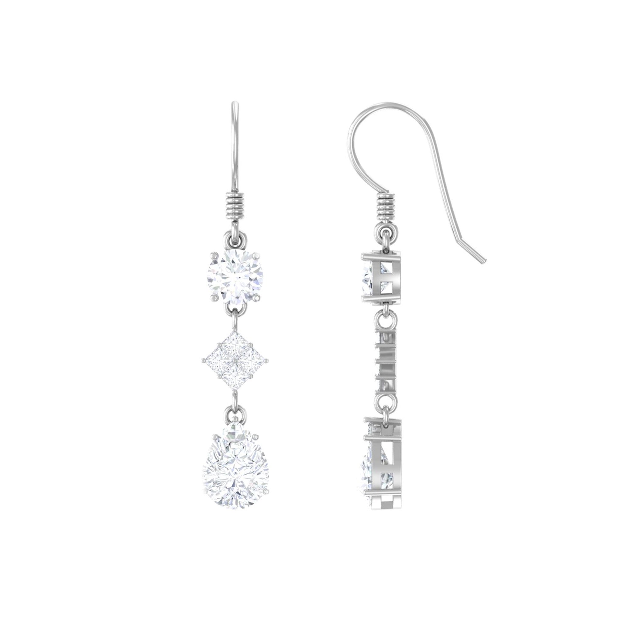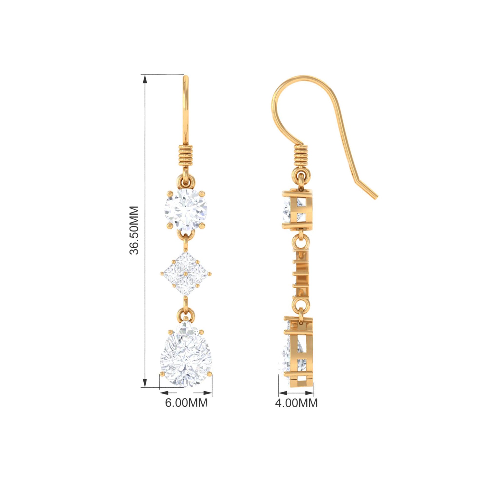 Make a statement with these radiant Moissanite Dangle Earrings. The Dangler earrings feature a combination of pear, princess and round cut Moissanite. Crafted in gold, these Moissanite earrings are the perfect accessory for women who loves something unique. Adorn yourself with these eye-catching dangle drop earrings and exude wealth and style. Upgrade your jewelry collection with these must-have dangle earrings.