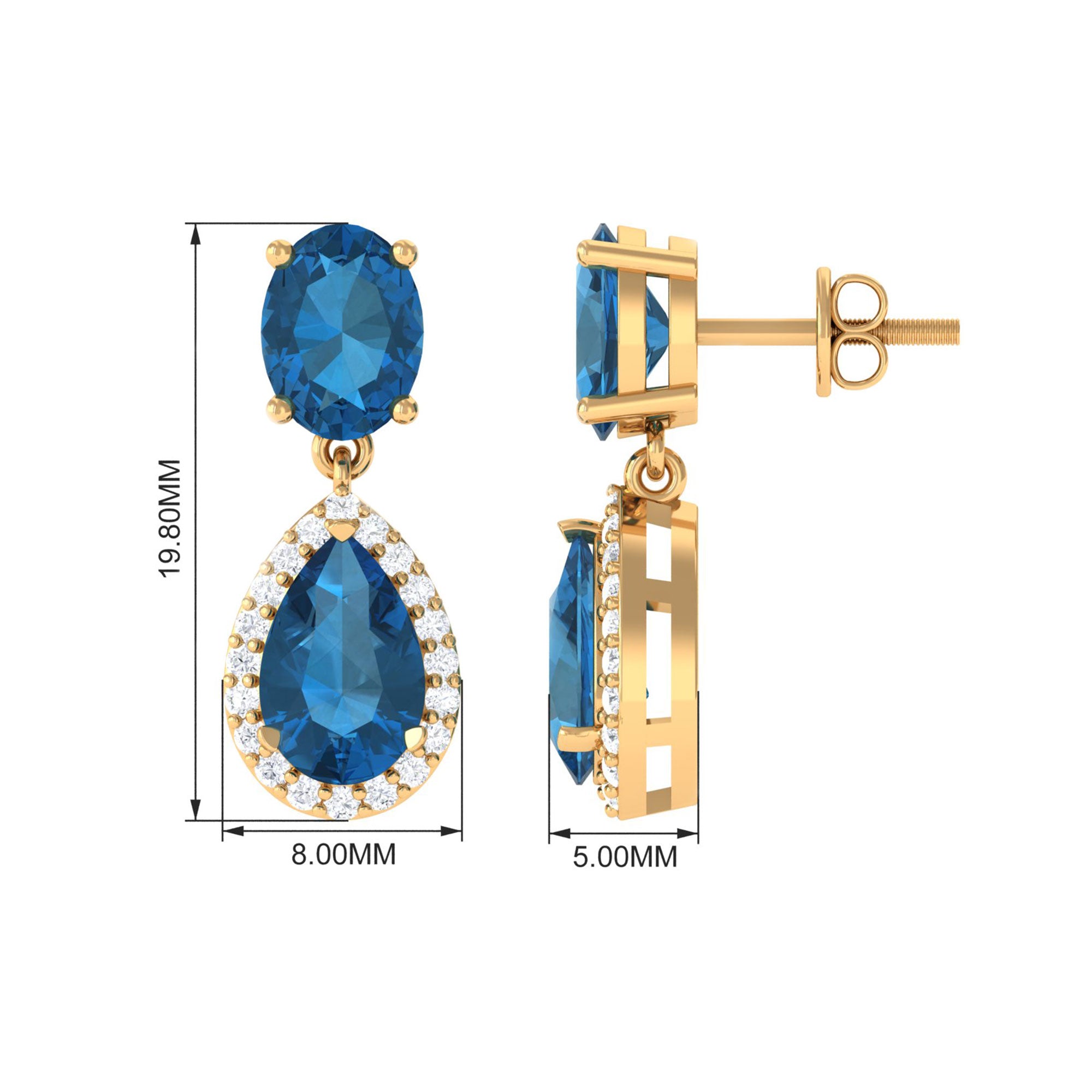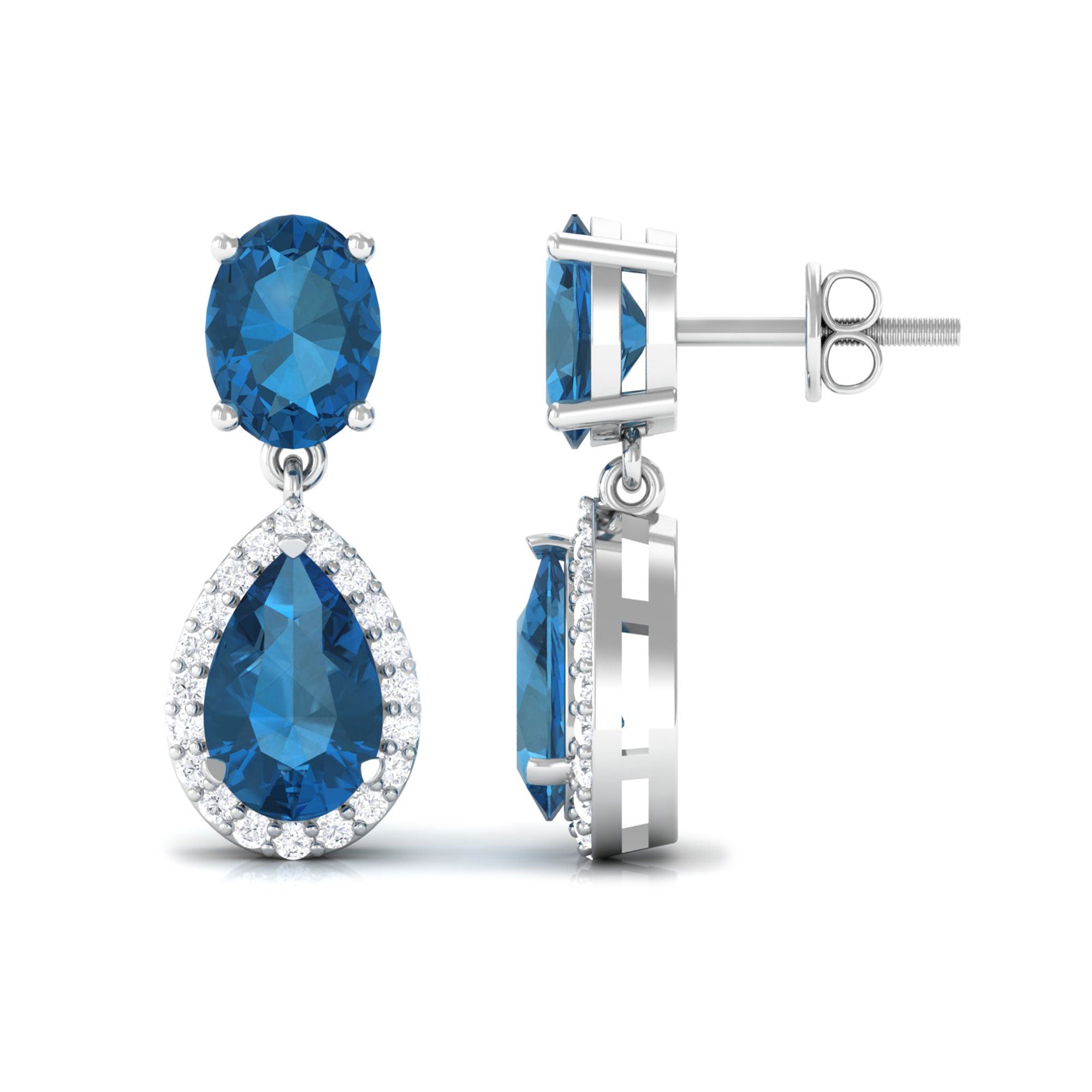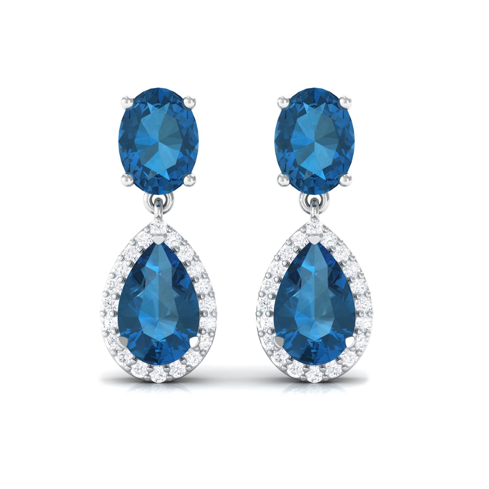 4.5 CT London Blue Topaz and Diamond Dangle Drop Earrings