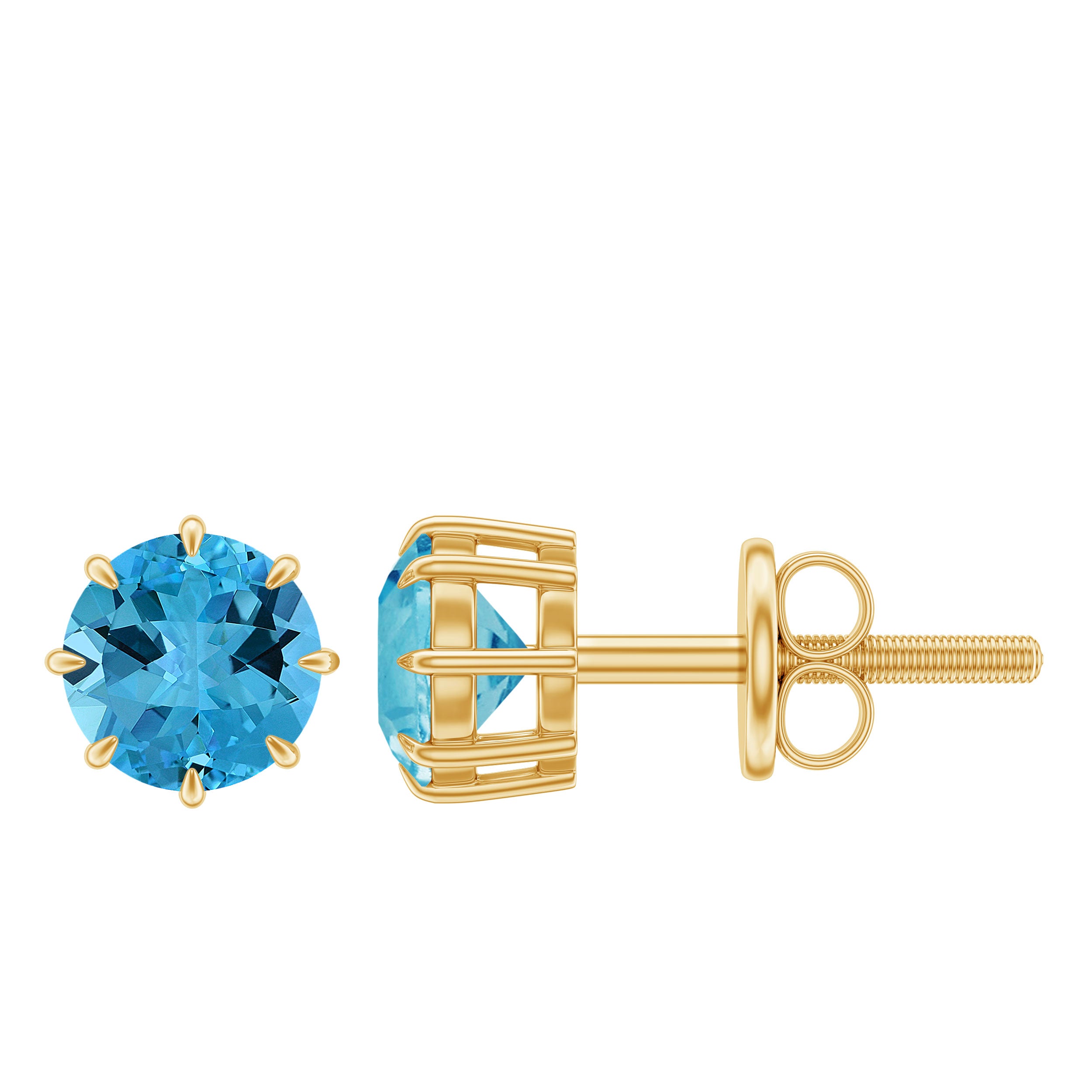 Whether it is New Year Party or Everyday dressing, this Stud Earrings fits with every look. These Earrings embellished with Round Cut Swiss Blue Topaz set as Solitaire in 8 Claw Prong Setting. These Screw Back Earring are composed by Solid Gold.