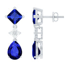 4.75 CT Created Blue Sapphire Stud Drop Earrings with Moissanite