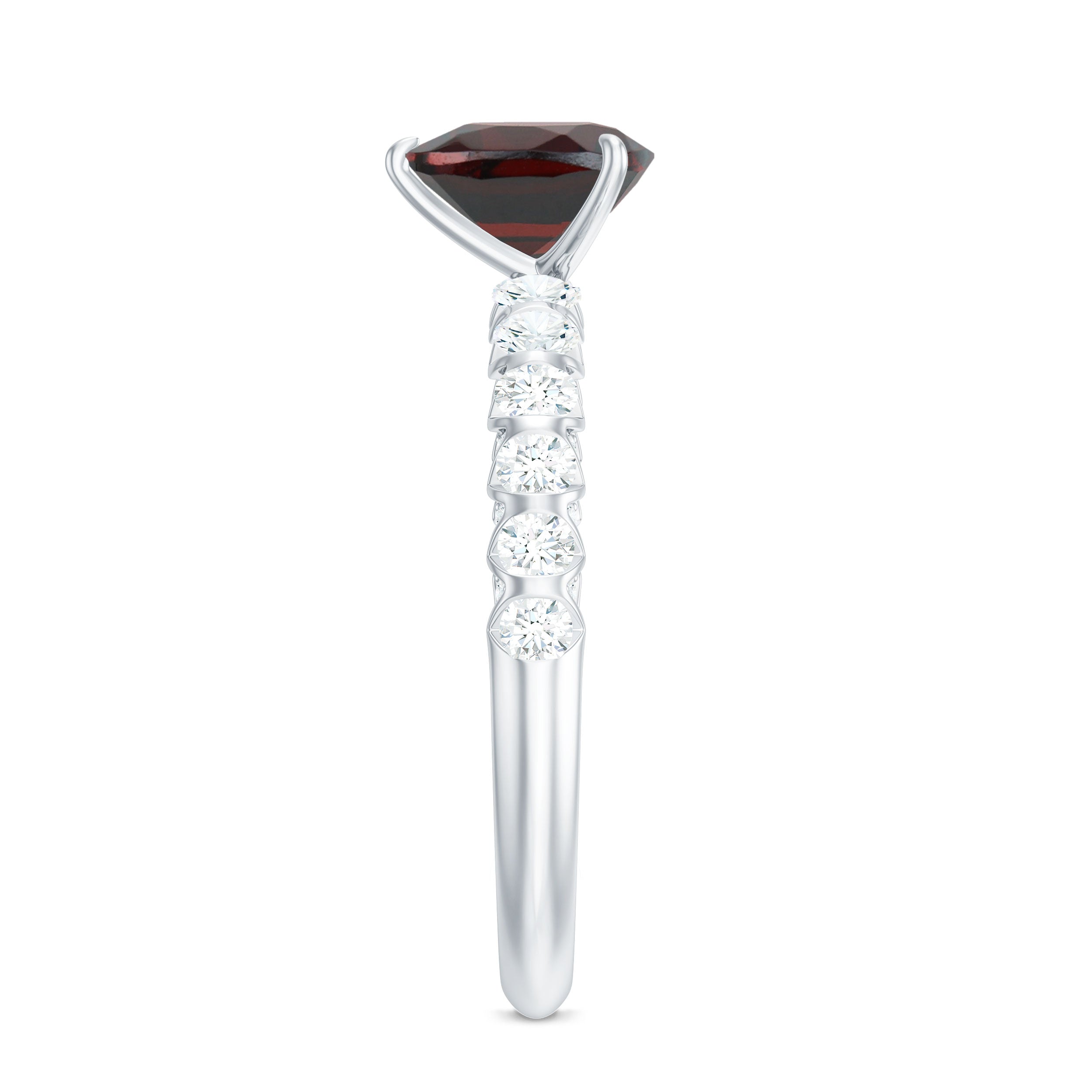 Natural 8mm Garnet Heart Engagement Ring with Diamond Side Stones
