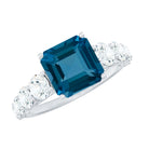 8mm Asscher Cut London Blue Topaz Solitaire Engagement Ring with Moissanite