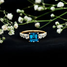 This exquisite London Blue Topaz Ring embodies a classic style infused with a modern flair, making it a piece of jewelry she will cherish forever. Designed as a Ring, it aims to create an unforgettable moment for you. At its heart lies an 8 MM asscher cut London Blue Topaz stone, elegantly set in a prong setting that elevates the gem slightly above the band, enabling it to capture light and stand out magnificently. The striking London Blue Topaz naturally draws attention, becoming the focal point of this sophisticated December Birthstone Ring. Flanking the blue topaz are sparkling round moissanite stones, meticulously arranged along the band. Their radiant brilliance contributes a subtle sparkle without detracting from the main stone. Each element of this Solitaire Engagement Ring is crafted with precision to harmonize bold beauty with profound significance. This Asscher Cut Engagement Ring transcends mere jewelry; it symbolizes your unique narrative and the commitment you share. Presented in an elegant gift box, this London Blue Topaz Engagement Ring merges timeless sophistication with enduring beauty. Whether intended for a proposal or as a special gift, this ring provides a meaningful and stylish way to commemorate your journey together.