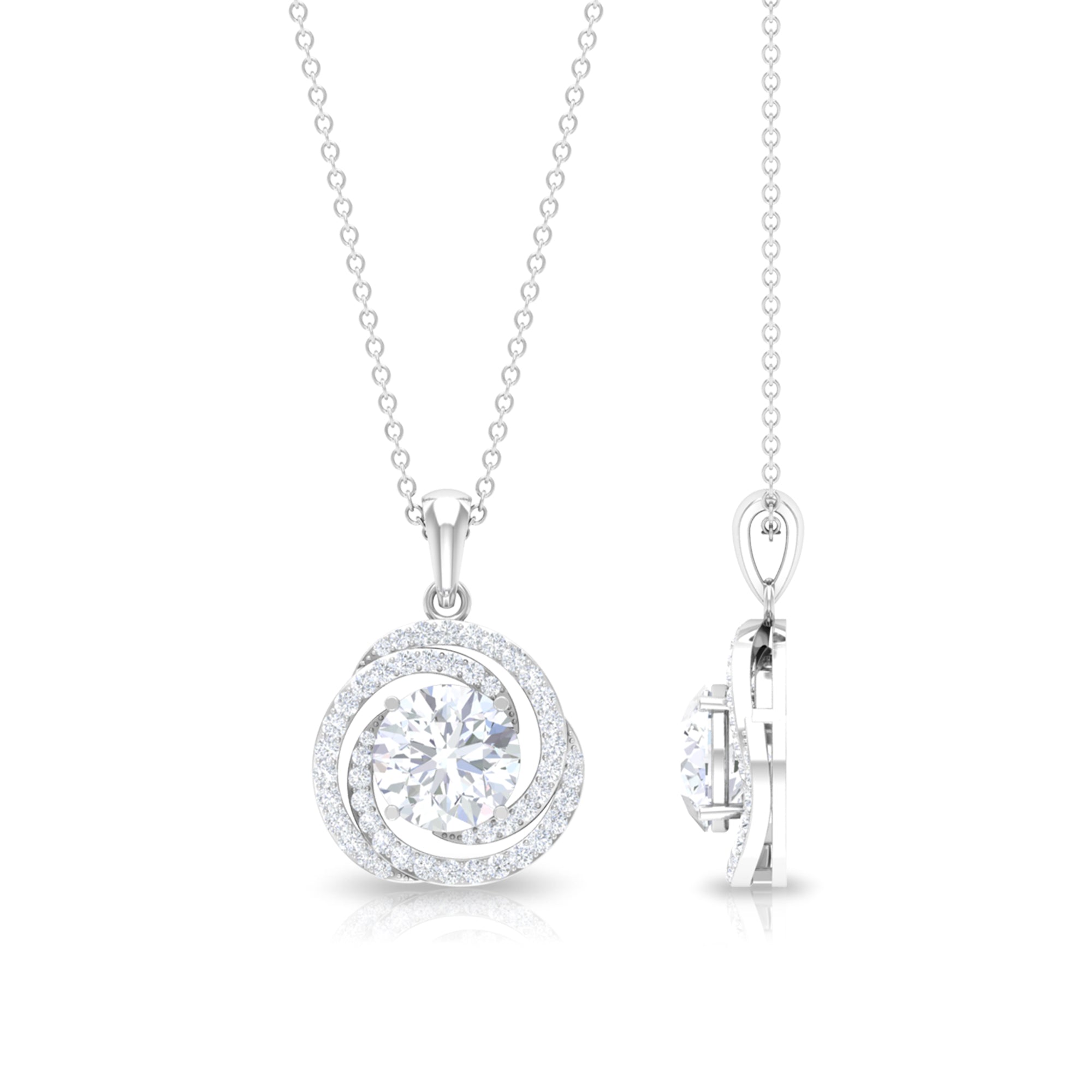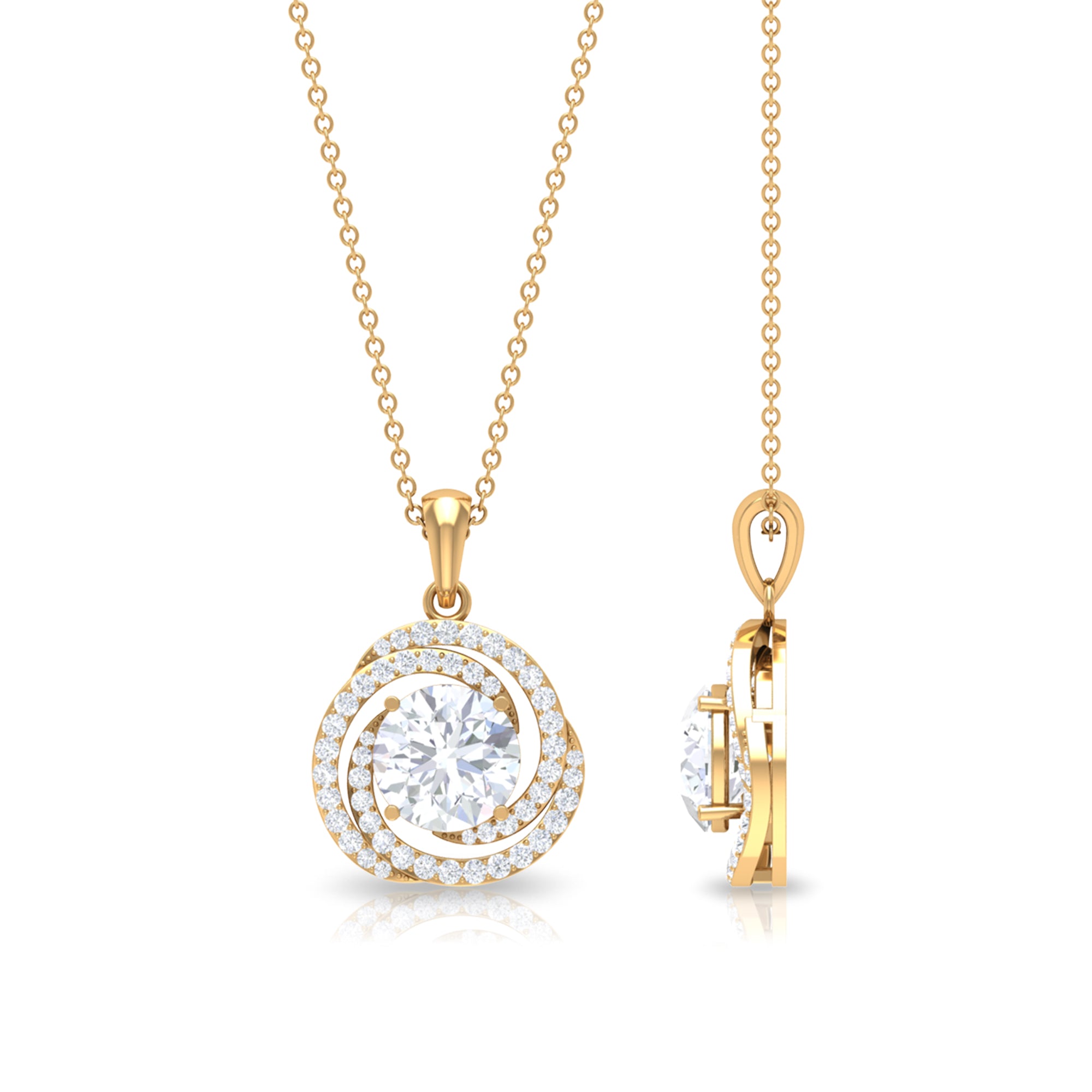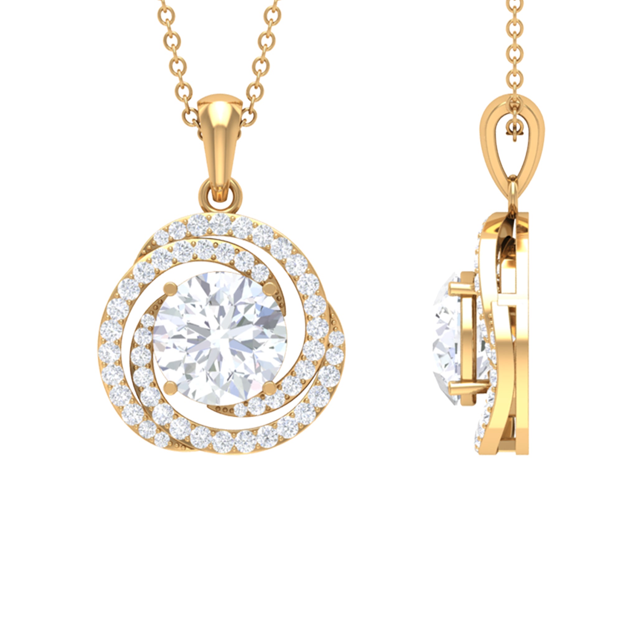 4 CT Certified Moissanite Swirl Halo Pendant in Gold