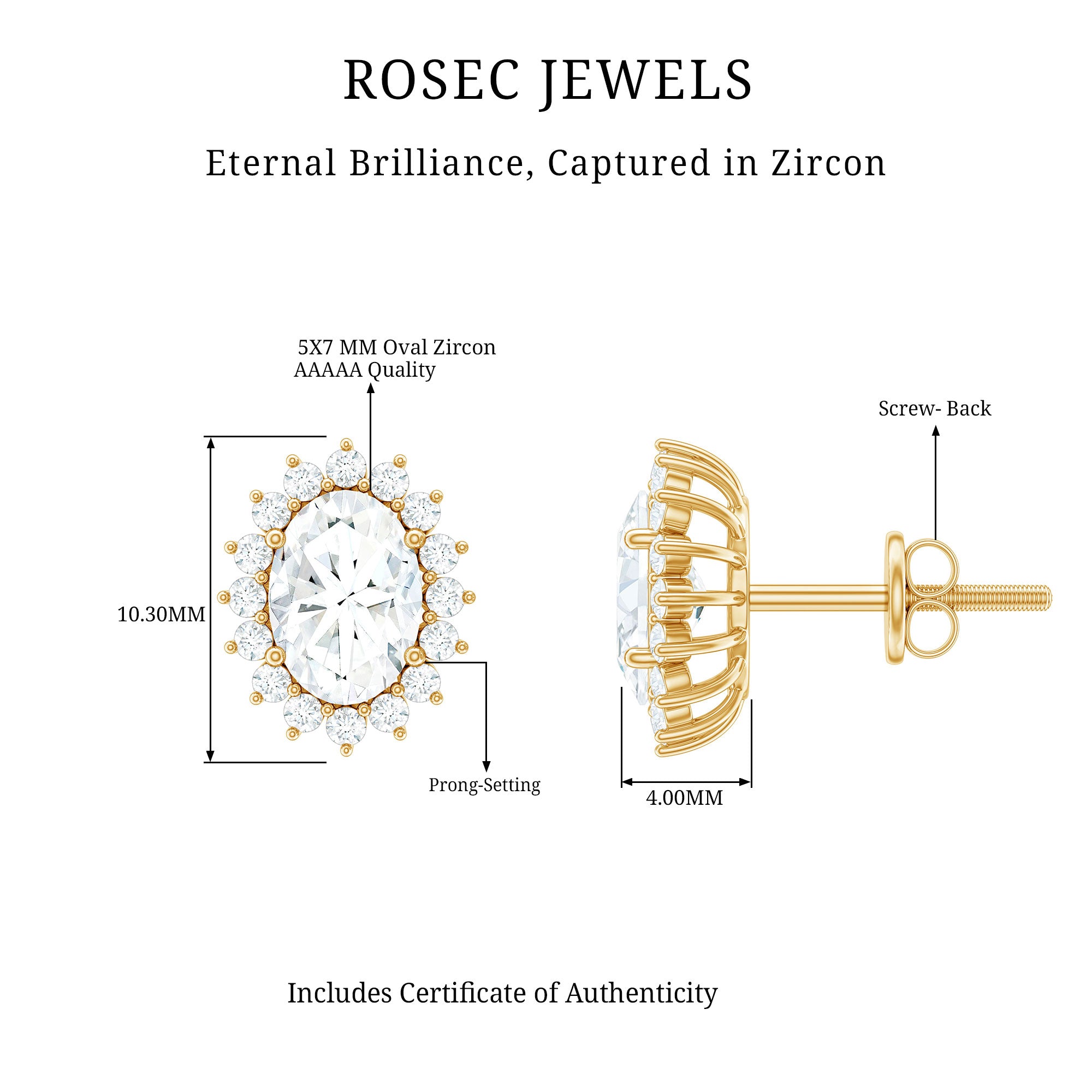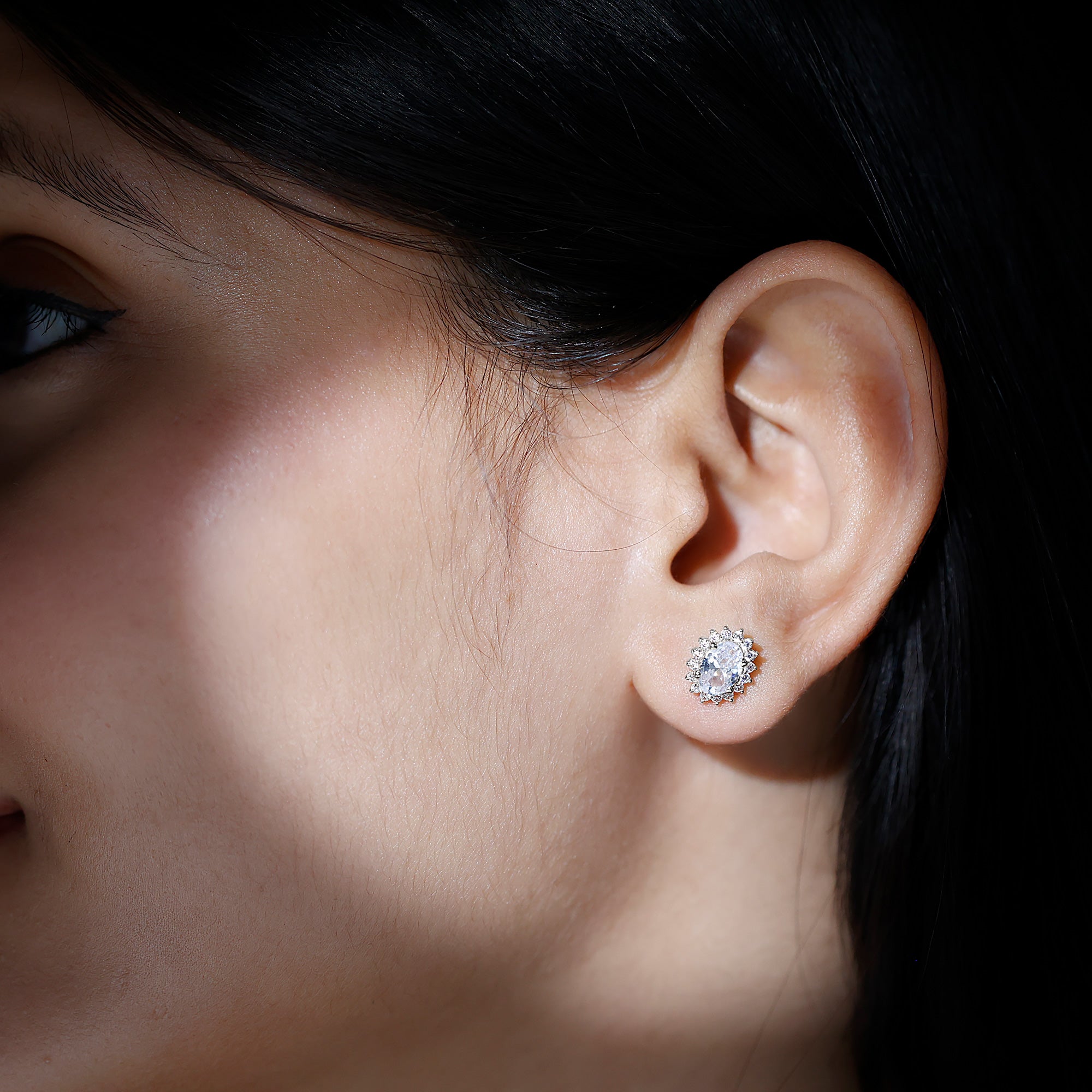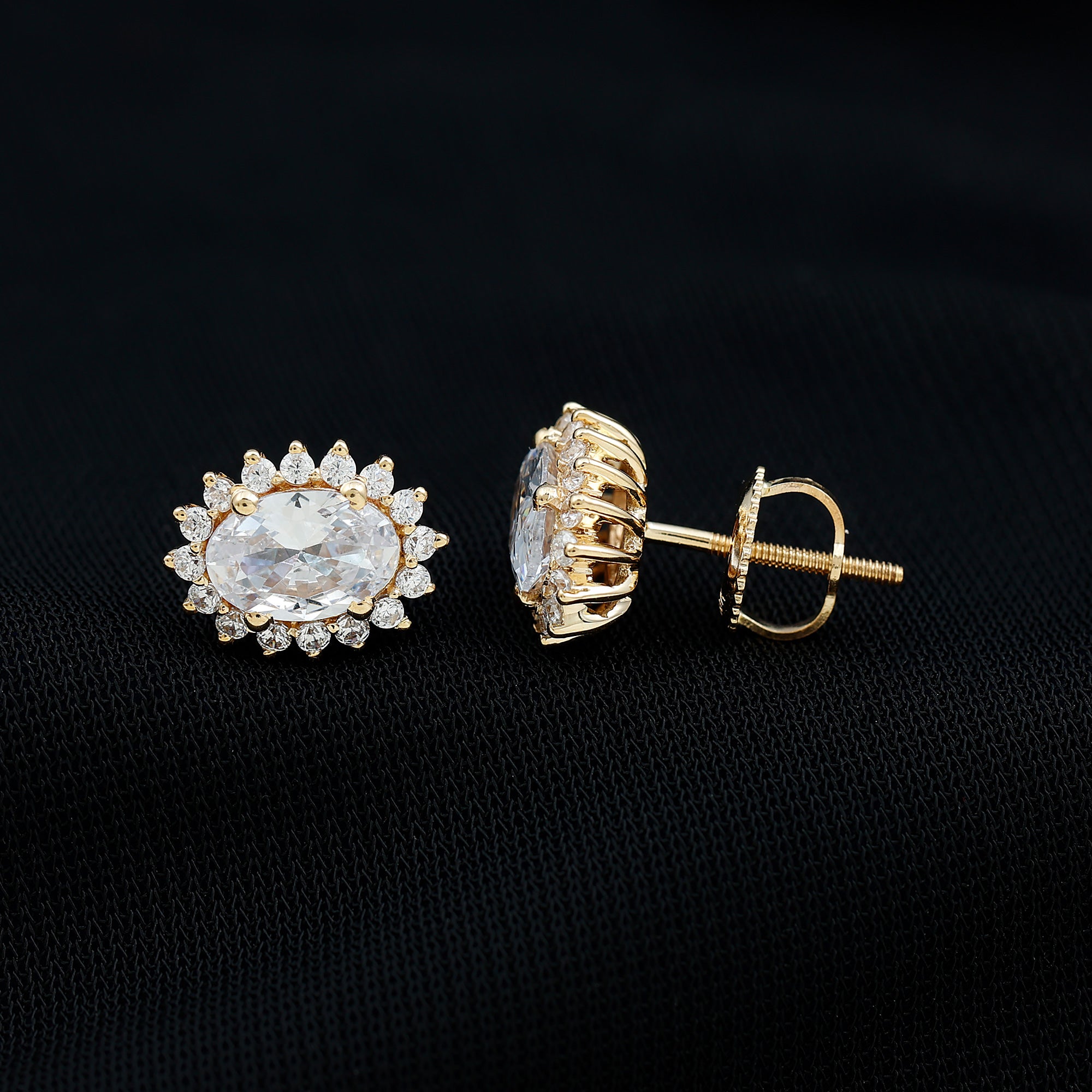 The Classic Halo Stud Earrings are a timeless and stylish accessory that will elevate any look. Oval Cut Zircon Stone is surrounded by a halo of smaller zircon stones, creating a sparkling and eye-catching design. The screw back closure provides added security and comfort for extended wear. These Cubic Zirconia Stud Earrings are versatile and suitable for both casual and formal occasions.