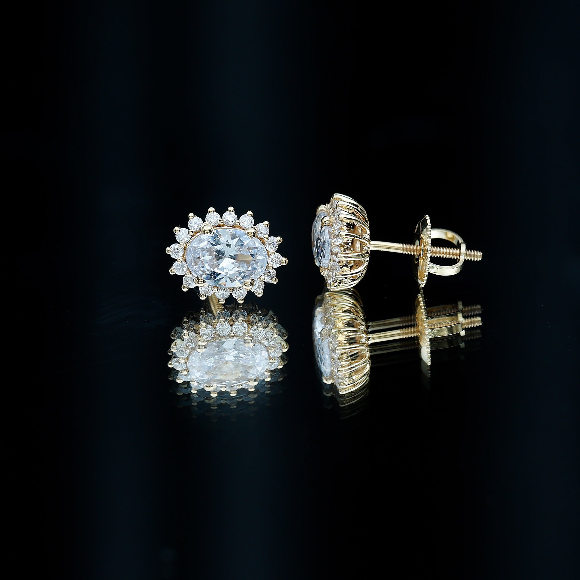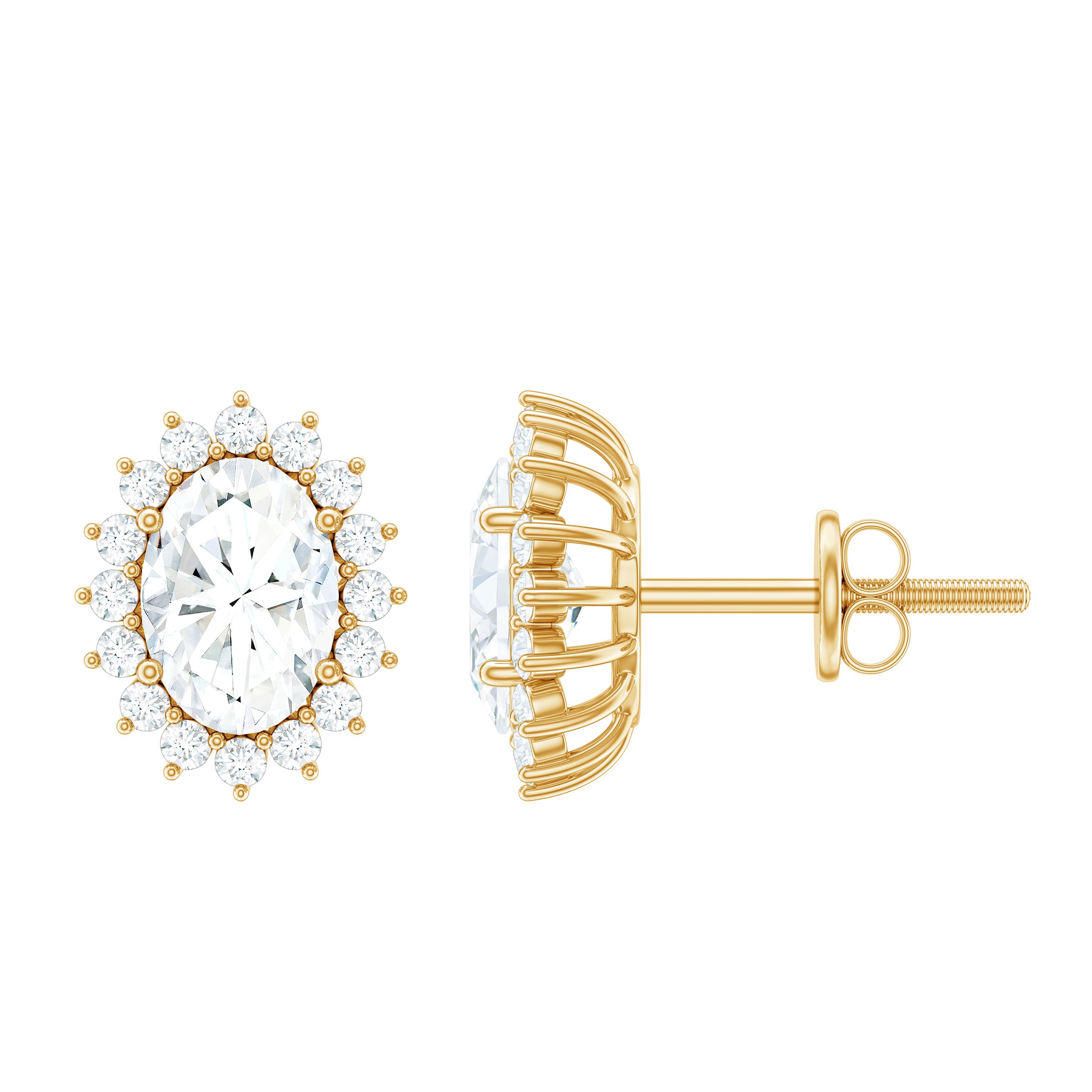 4 CT Oval Zircon Classic Halo Stud Earrings in Gold