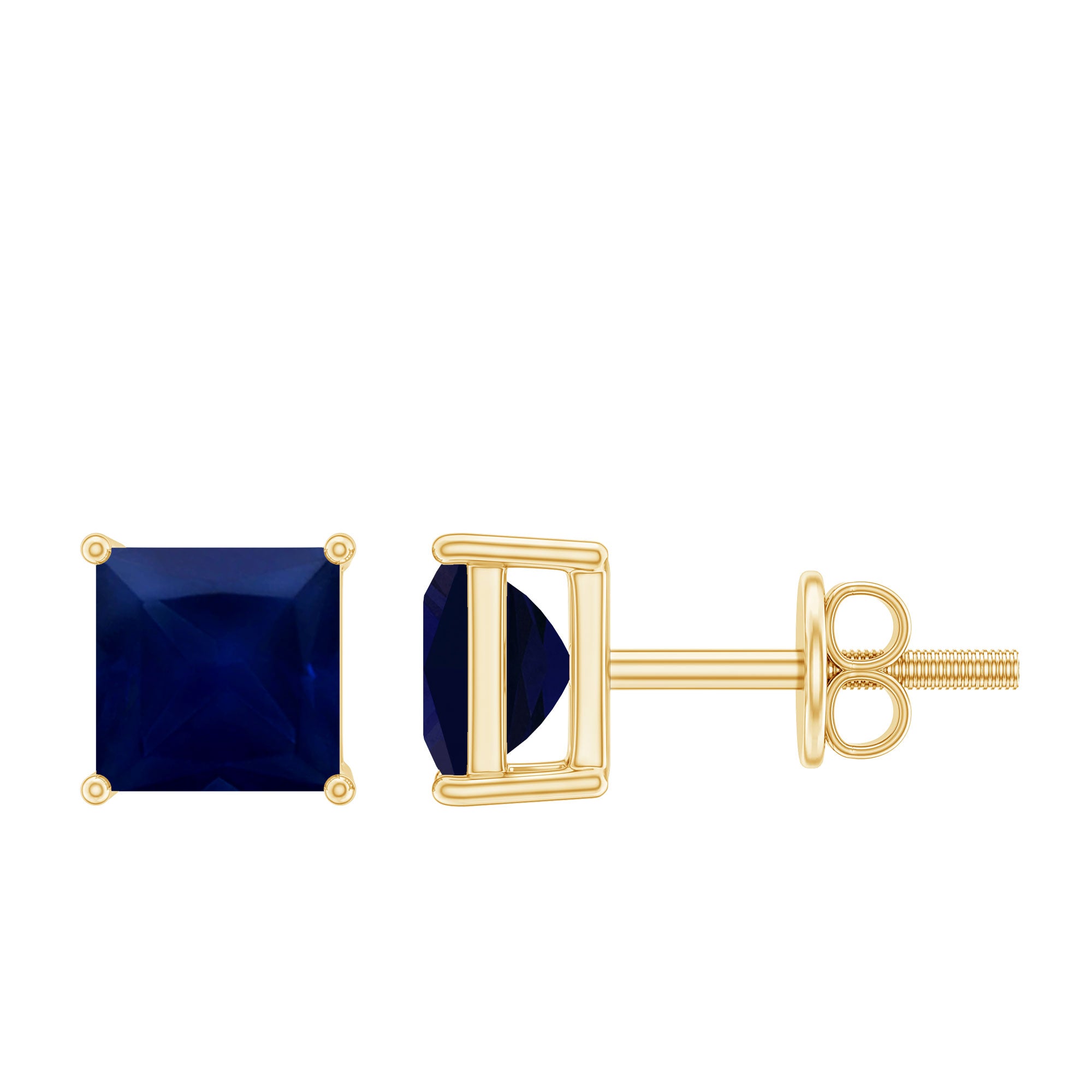 Indulge in a luxurious accessory with these stud earrings designed for women. The centerpieces of these earrings are Princess Cut Blue Sapphires, held in place by a 4 Prong setting. Crafted with care in solid gold metal, these earrings are sure to make you feel exceptional every time you wear them. Elevate your style with these stunning earrings and let them become a staple in your jewelry collection.