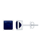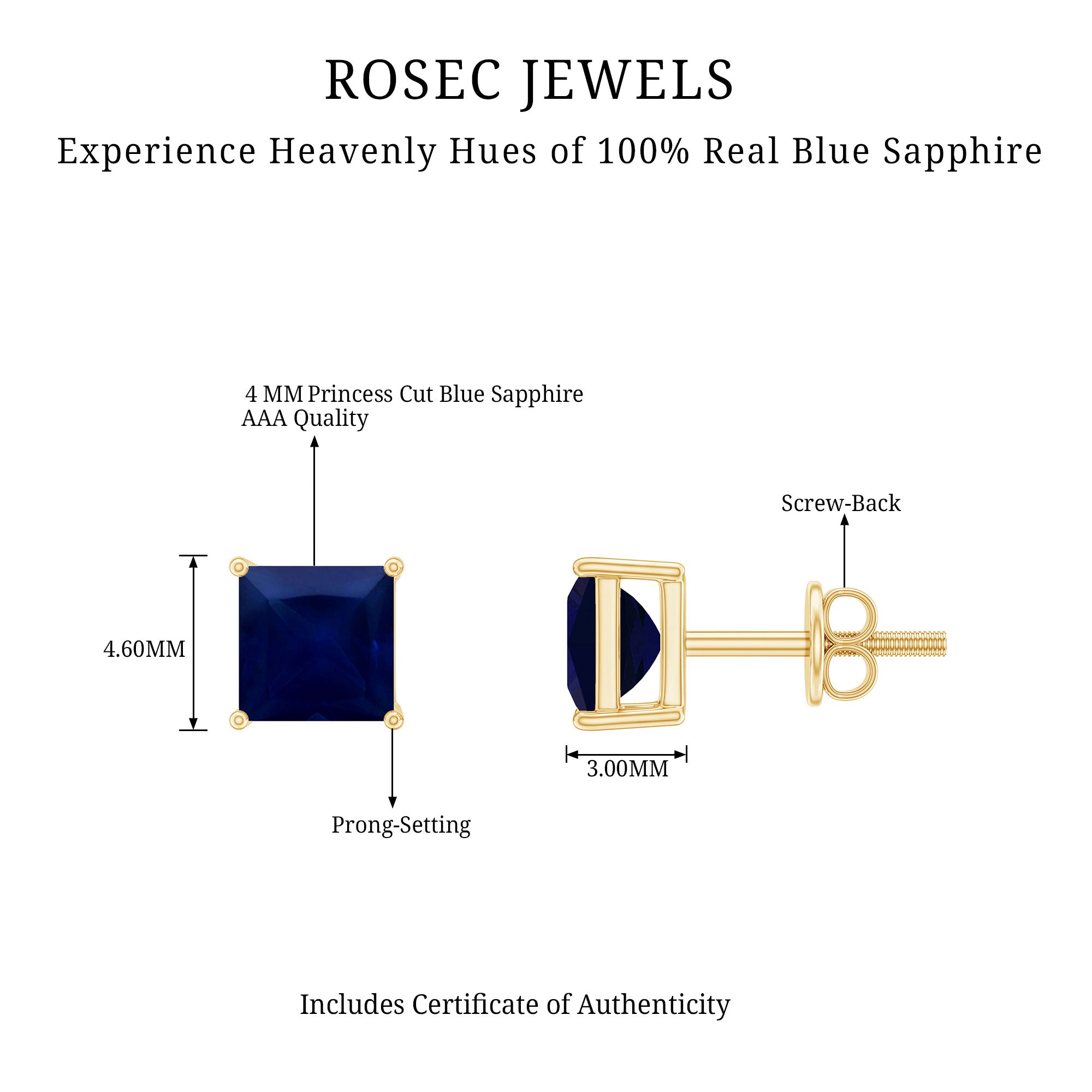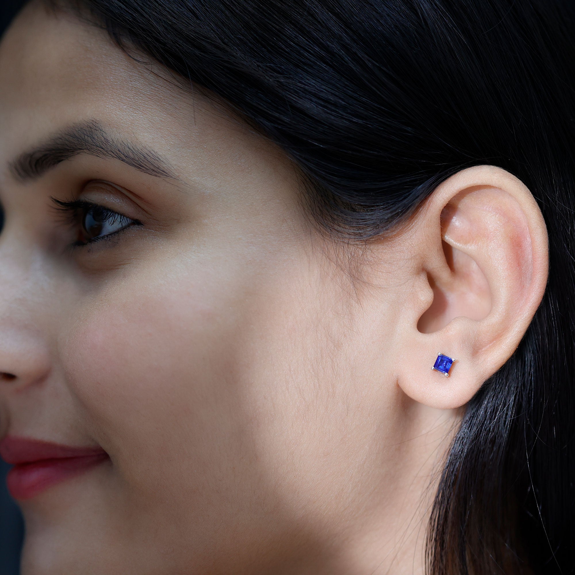 4 MM Princess Cut Blue Sapphire Solitaire Stud Earrings in 4 Prong Setting
