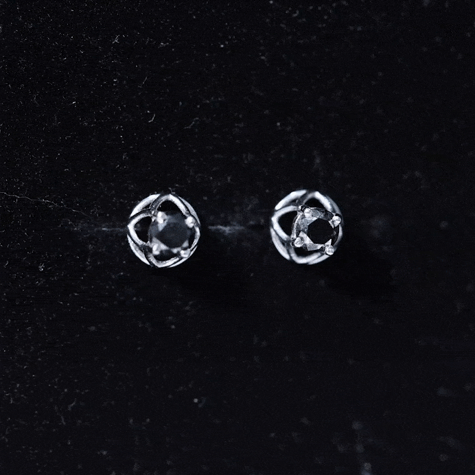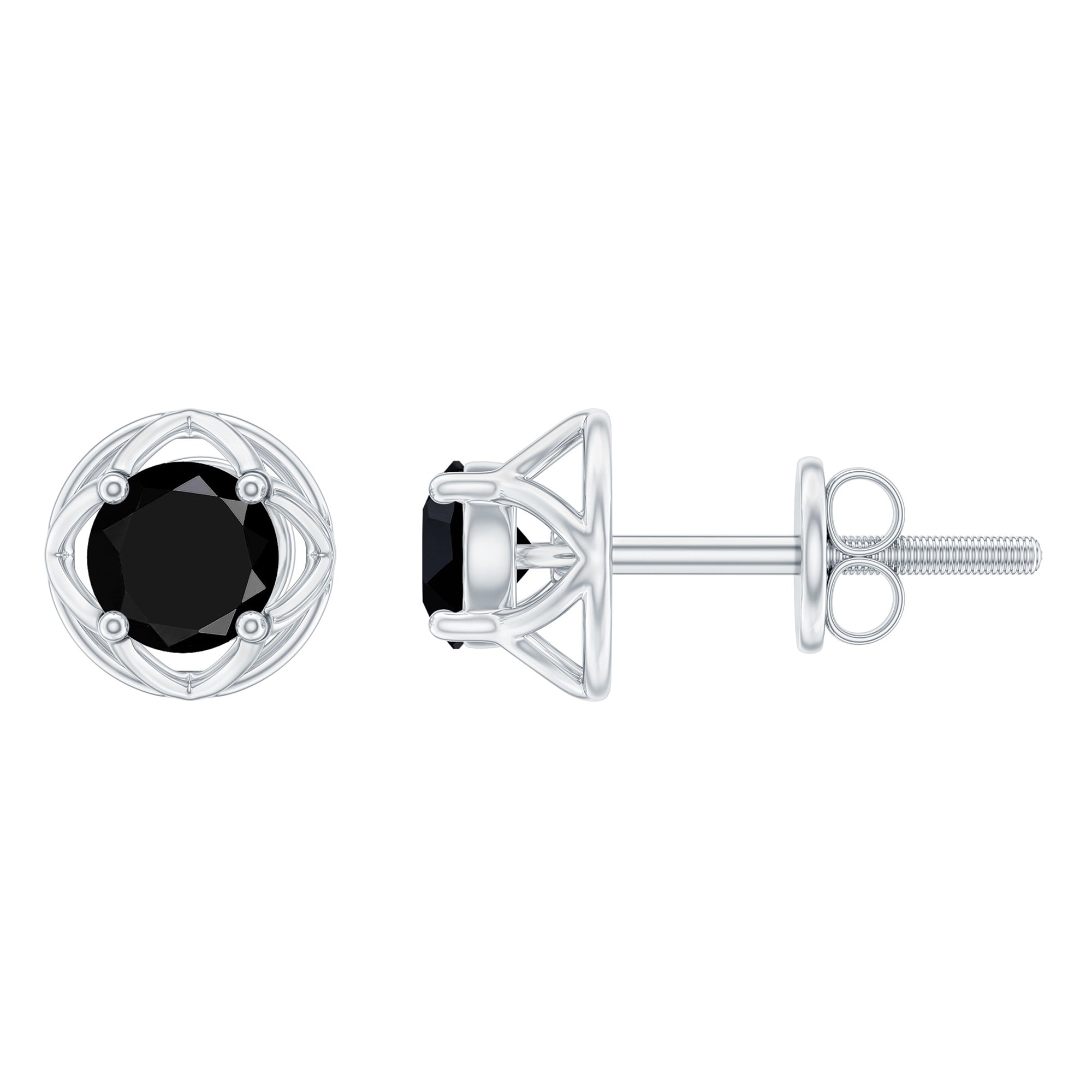 4 MM Round Cut Black Diamond Solitaire Floral Stud Earring