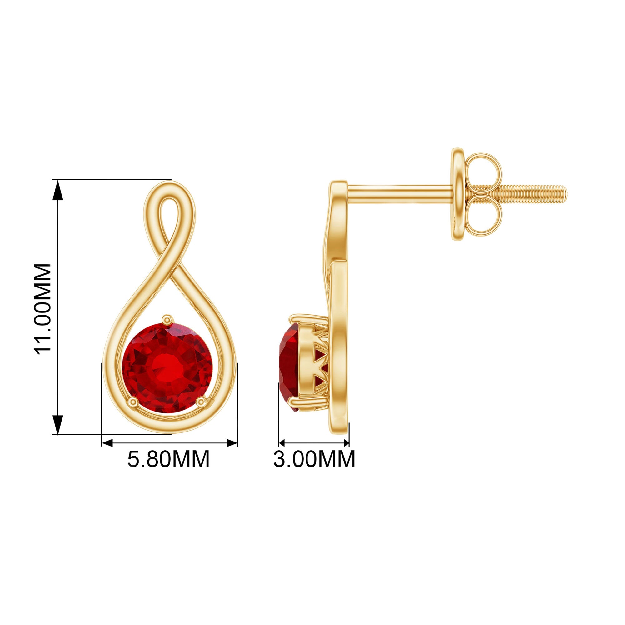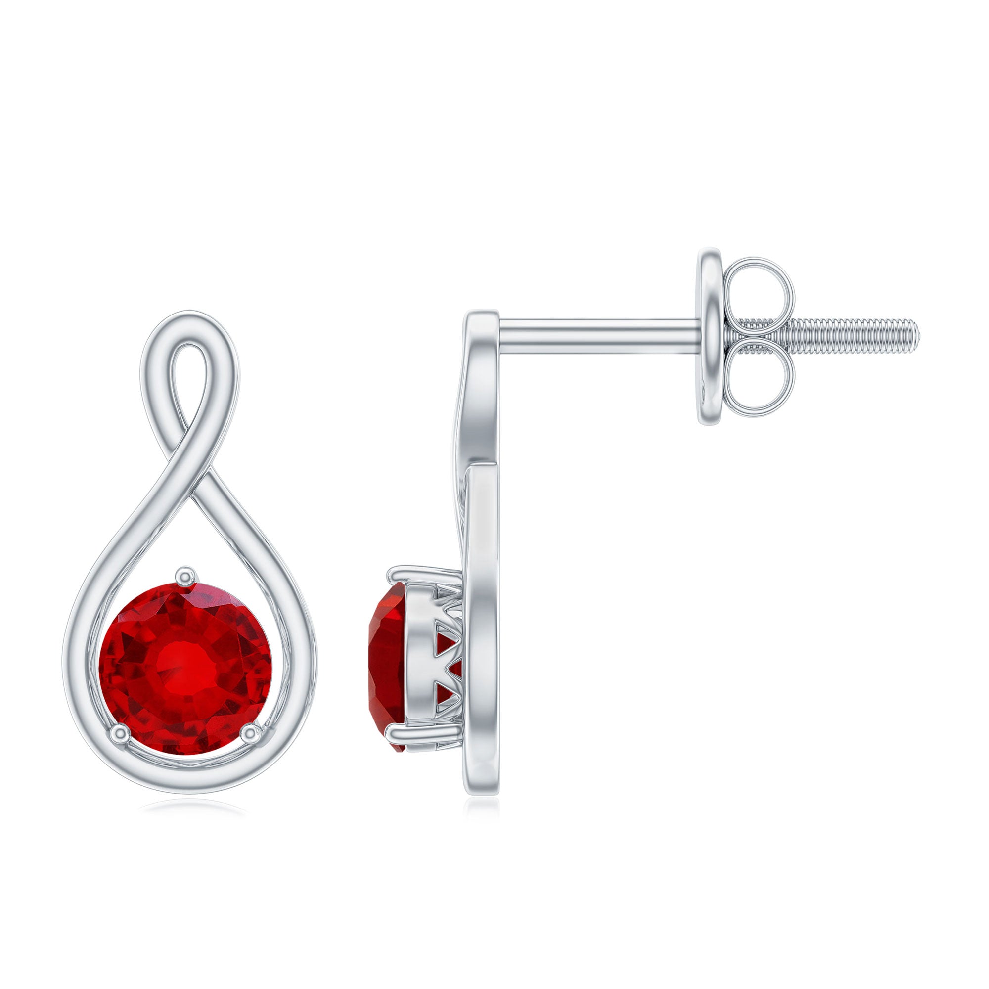 4 MM Round Cut Created Ruby Solitaire Infinity Gold Stud Earrings with Screw Back