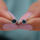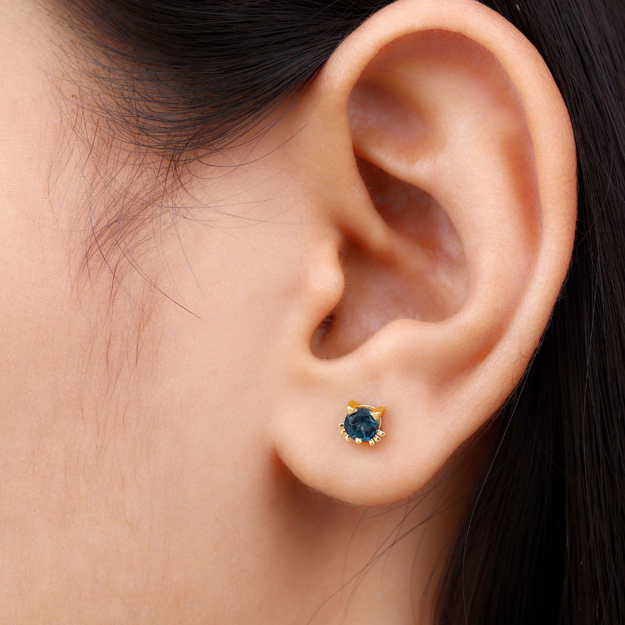 Round Shape Solitaire London Blue Topaz Cat Stud Earrings