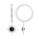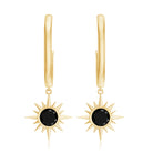 Natural Black Spinel Sunburst Drop Hoop Earrings