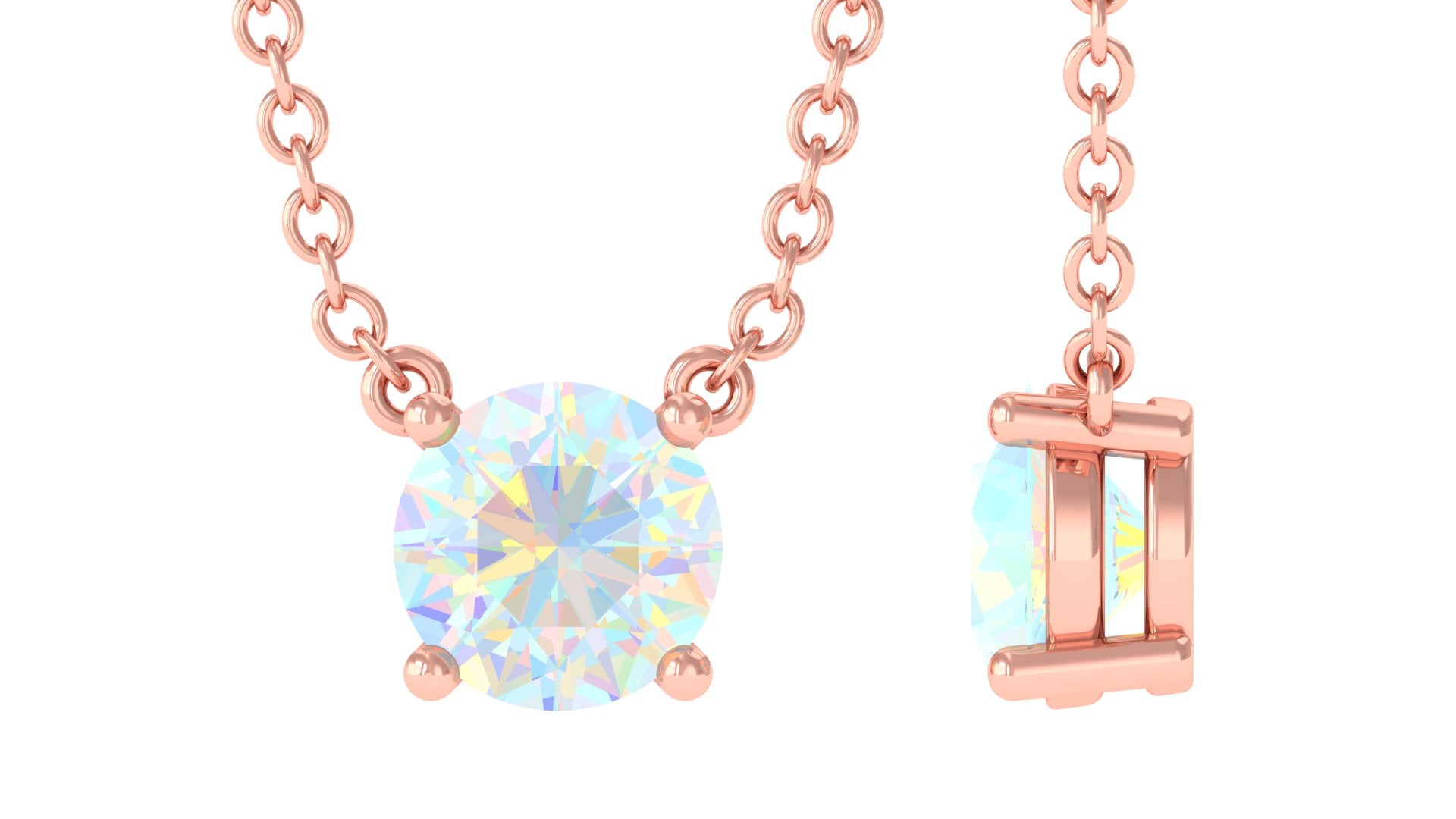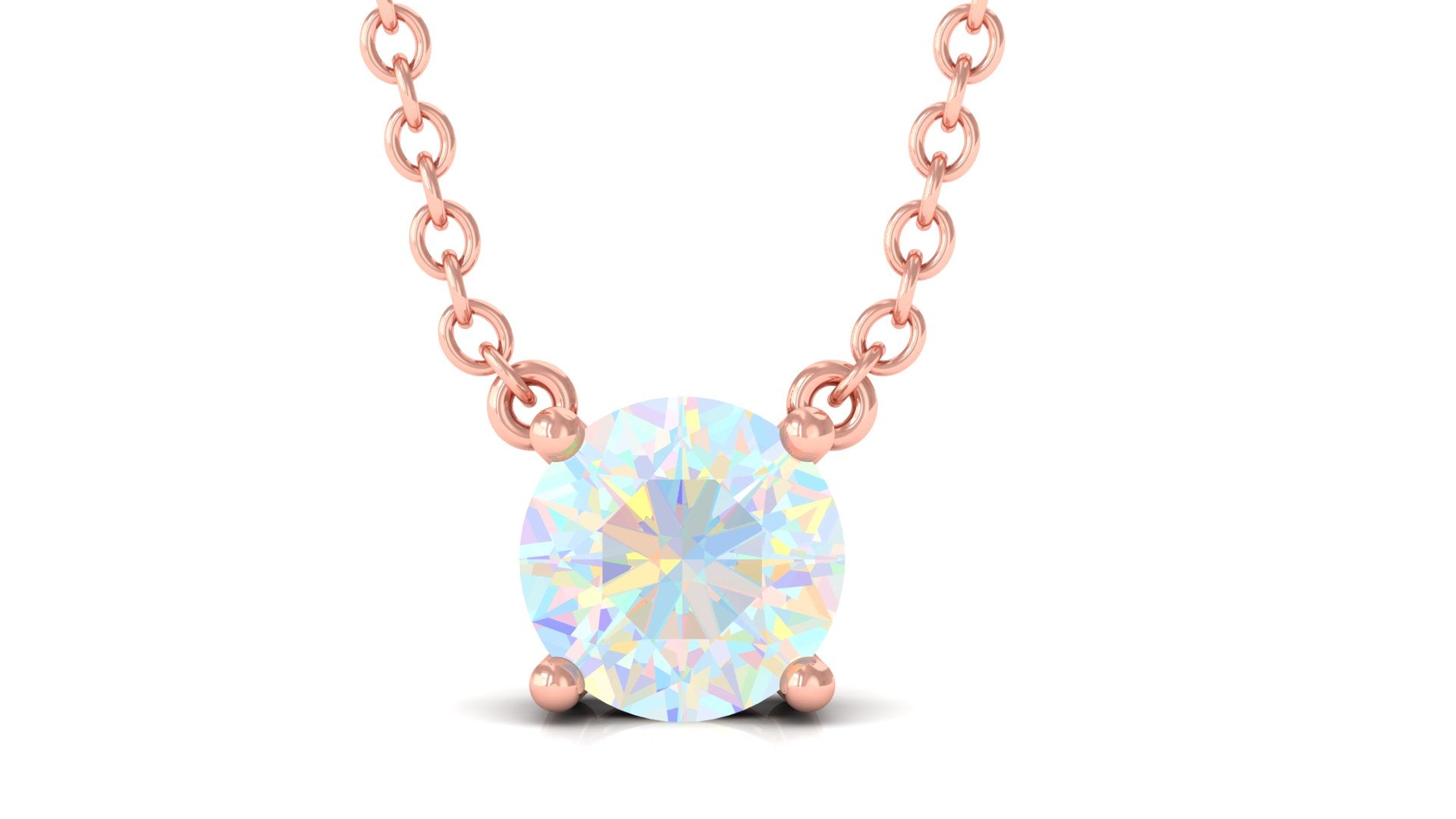 5 MM Round Shape Ethiopian Opal Solitaire Necklace in Prong Setting