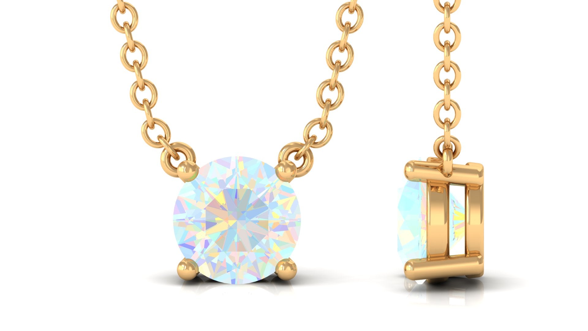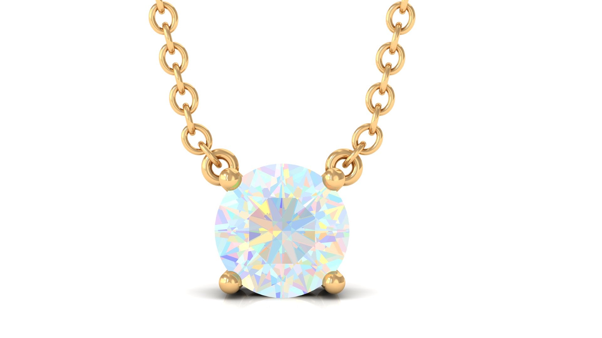 Complete your look with this stunning gold necklace, featuring a 5 MM round-shaped Ethiopian opal in a beautiful Prong setting. This opal solitaire necklace is a perfect accessory for any woman.