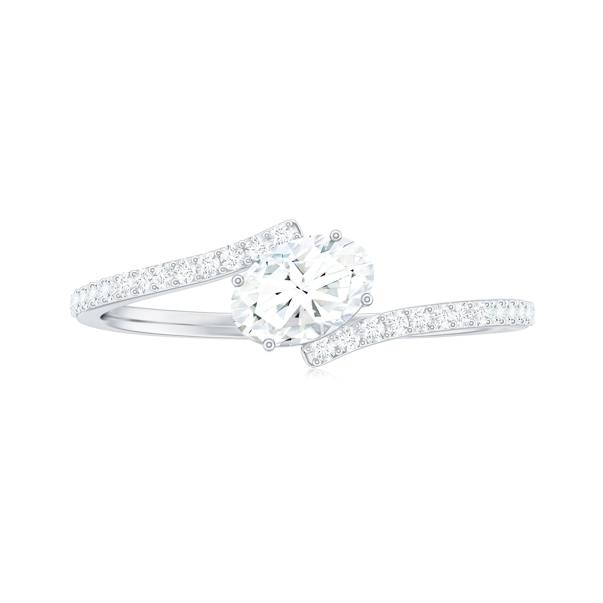 The Bypass Solitaire Ring is an exquisite and unique piece of jewelry that is sure to turn heads. This Moissanite Promise Ring featuring 4X6 mm oval cut Moissanite set at the center in a tilted style in prong setting with petite round shape moissanites set on the shank. The gleaming and beaming moissanites along the bands add an extra sparkle to this beautiful piece, while the bypass shank wraps around your finger like it hugs you, creating an unforgettable look. Whether youre looking to add a touch of sophistication to your look or make a statement piece that will be remembered, the Moissanite Oval Ring is the perfect choice. A graceful twist of love in this Moissanite Proposal Ring captures timeless commitment. This D color VS1 clarity Moissanite Ring is a perfect symbol of enduring promises and elegant beginnings. Ideal for engagement, anniversary, or celebrating yourself.
