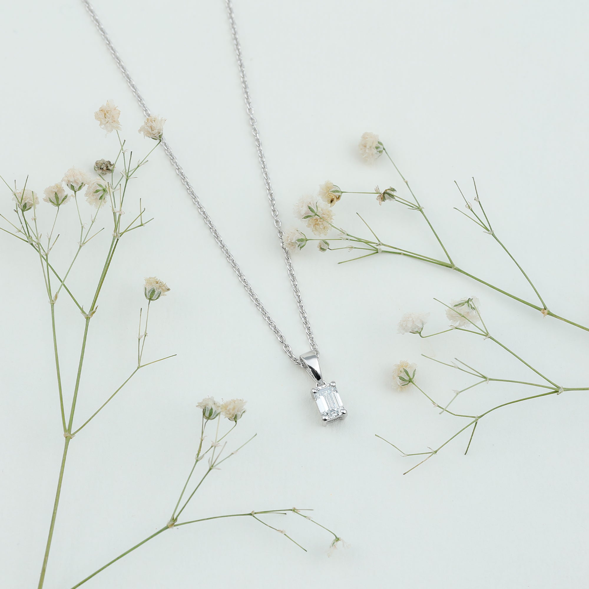 4X6MM Emerald Cut Lab Grown Diamond Solitaire Necklace with Chain