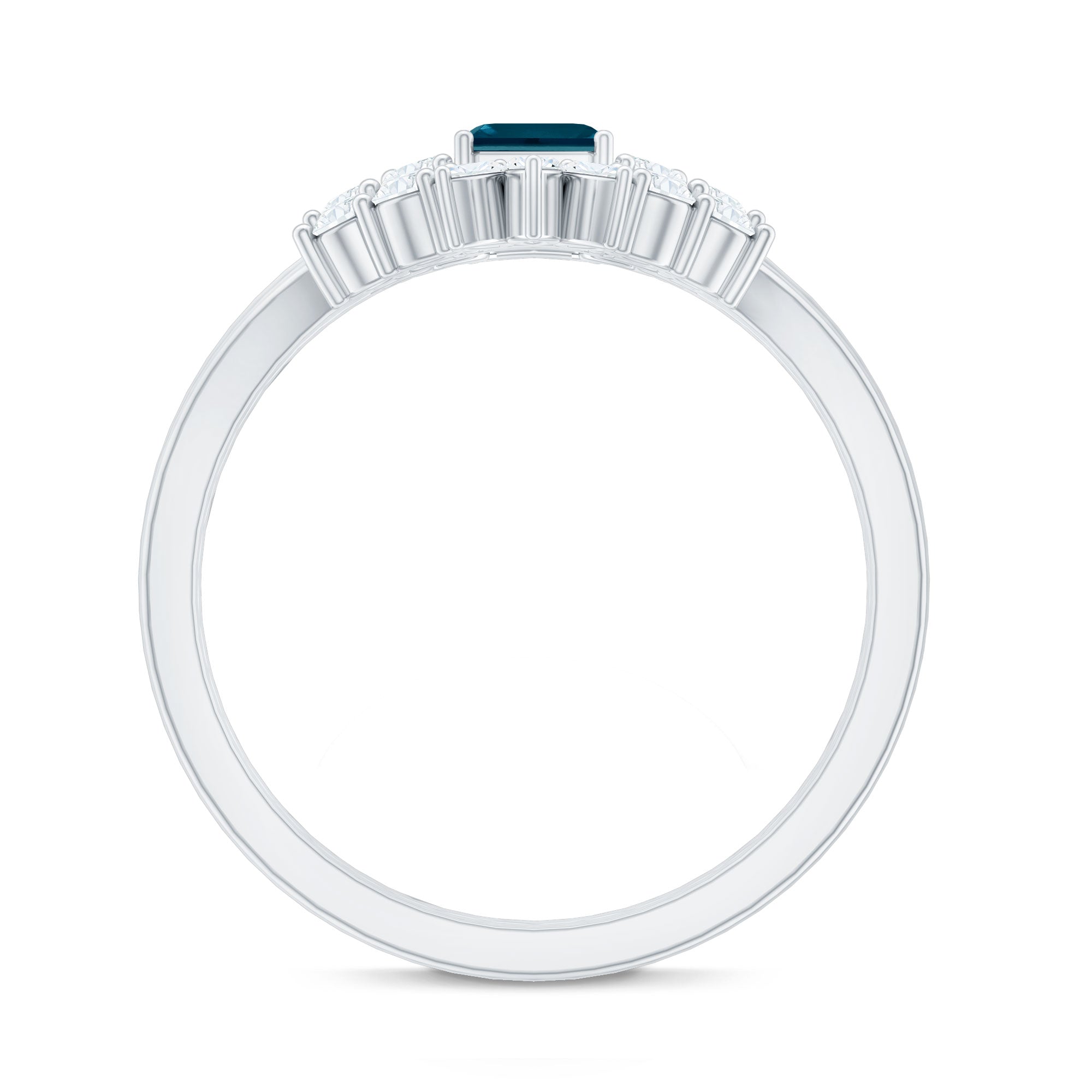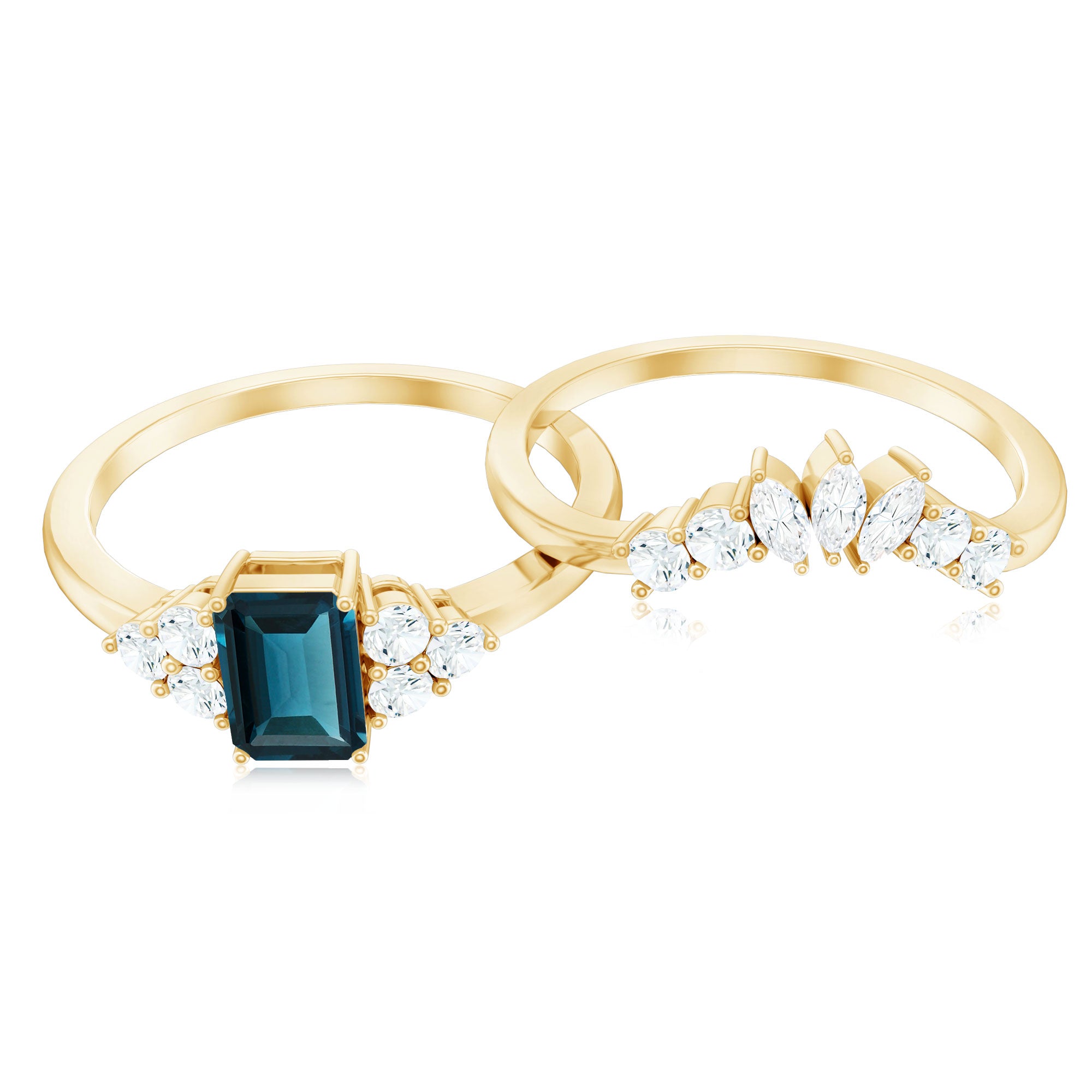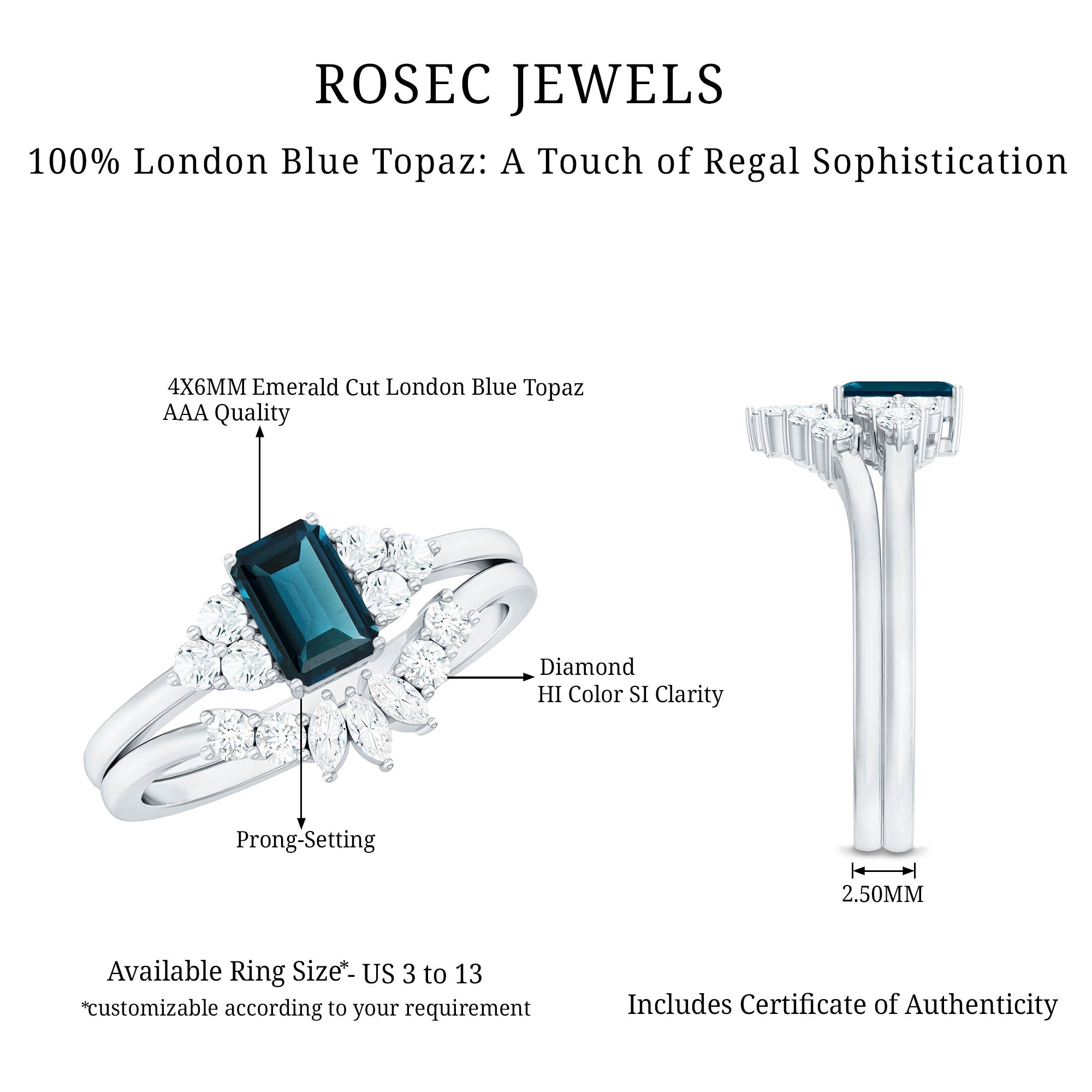 4X6mm Emerald Cut London Blue Topaz Designer Bridal Ring Set with Diamond
