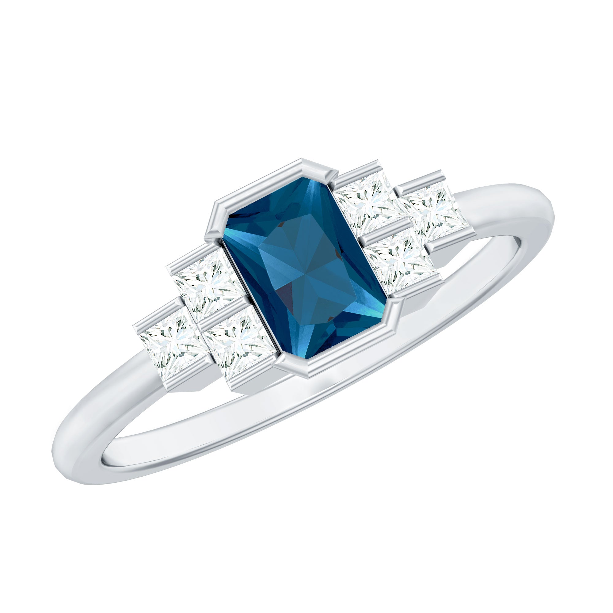 4X6mm Emerald Cut London Blue Topaz Statement Ring with Diamond