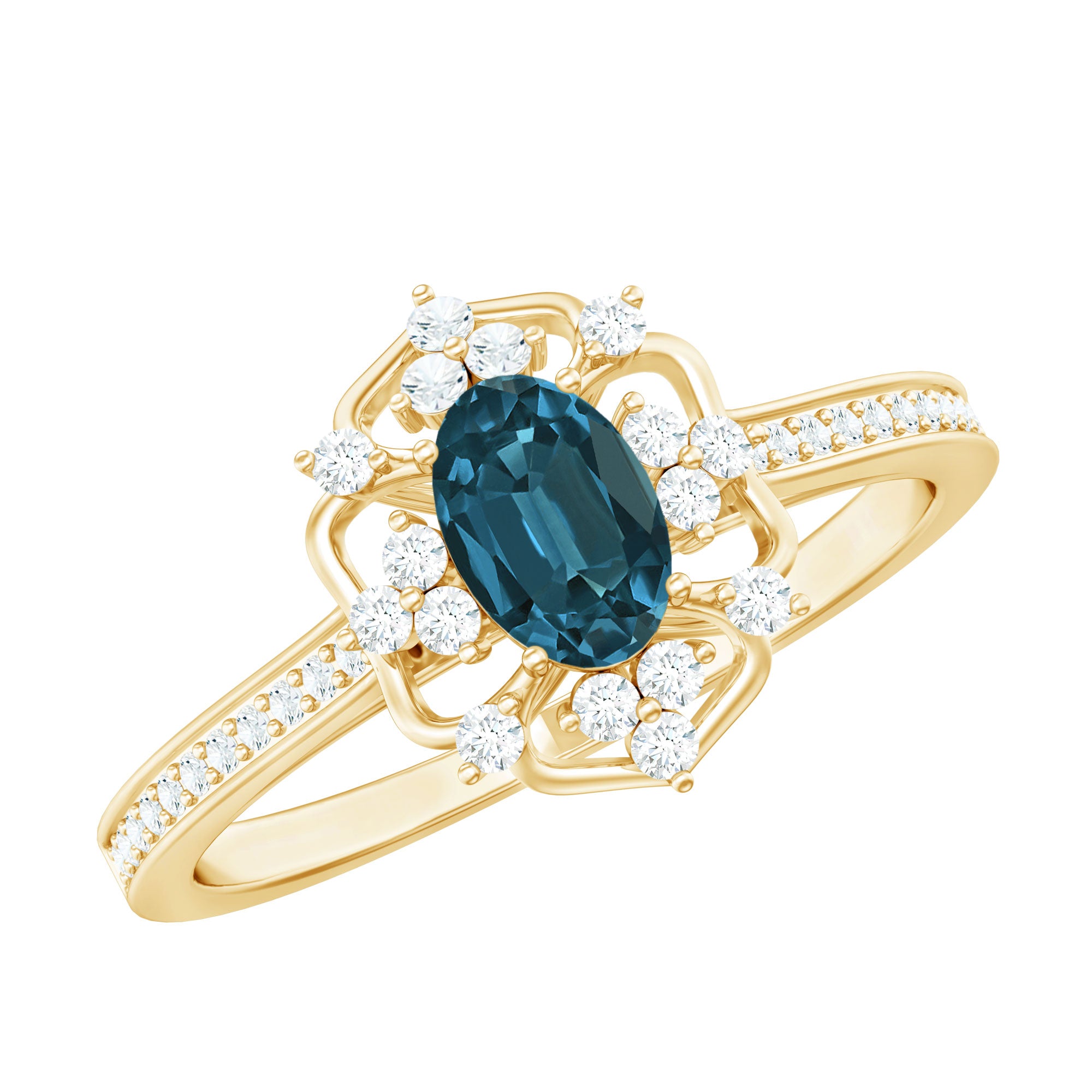 4X6mm Oval Cut London Blue Topaz Vintage Engagement Ring with Diamond