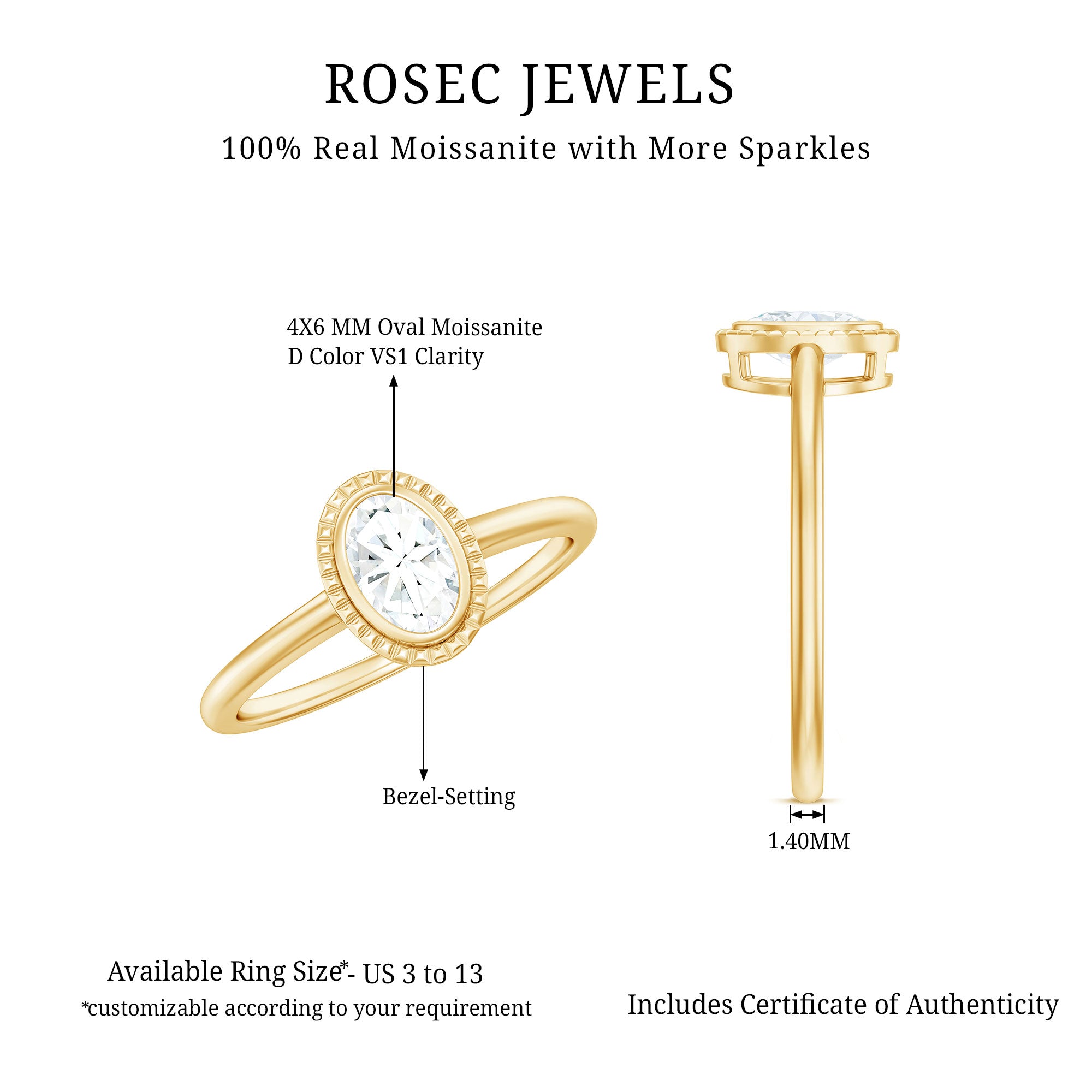 4X6mm Oval Cut Moissanite Solitaire Ring in Bezel Setting