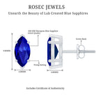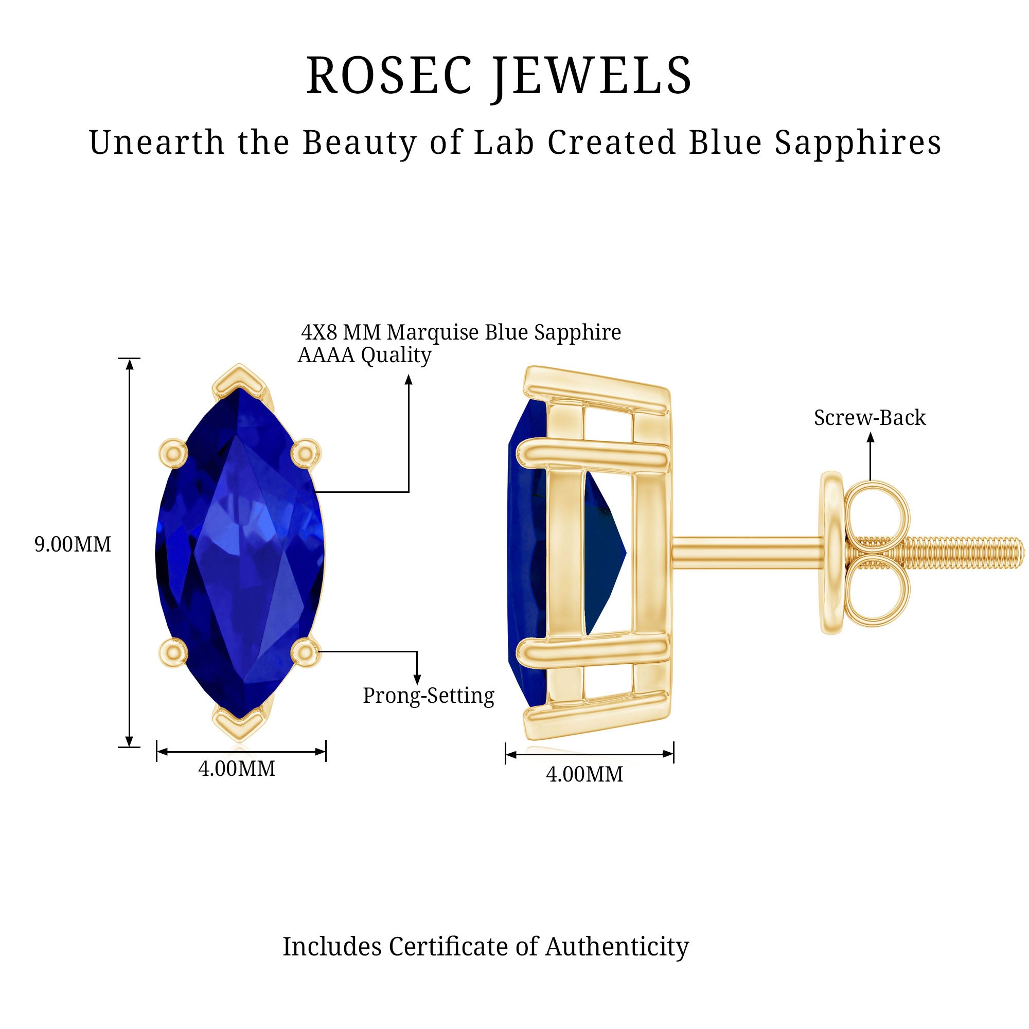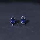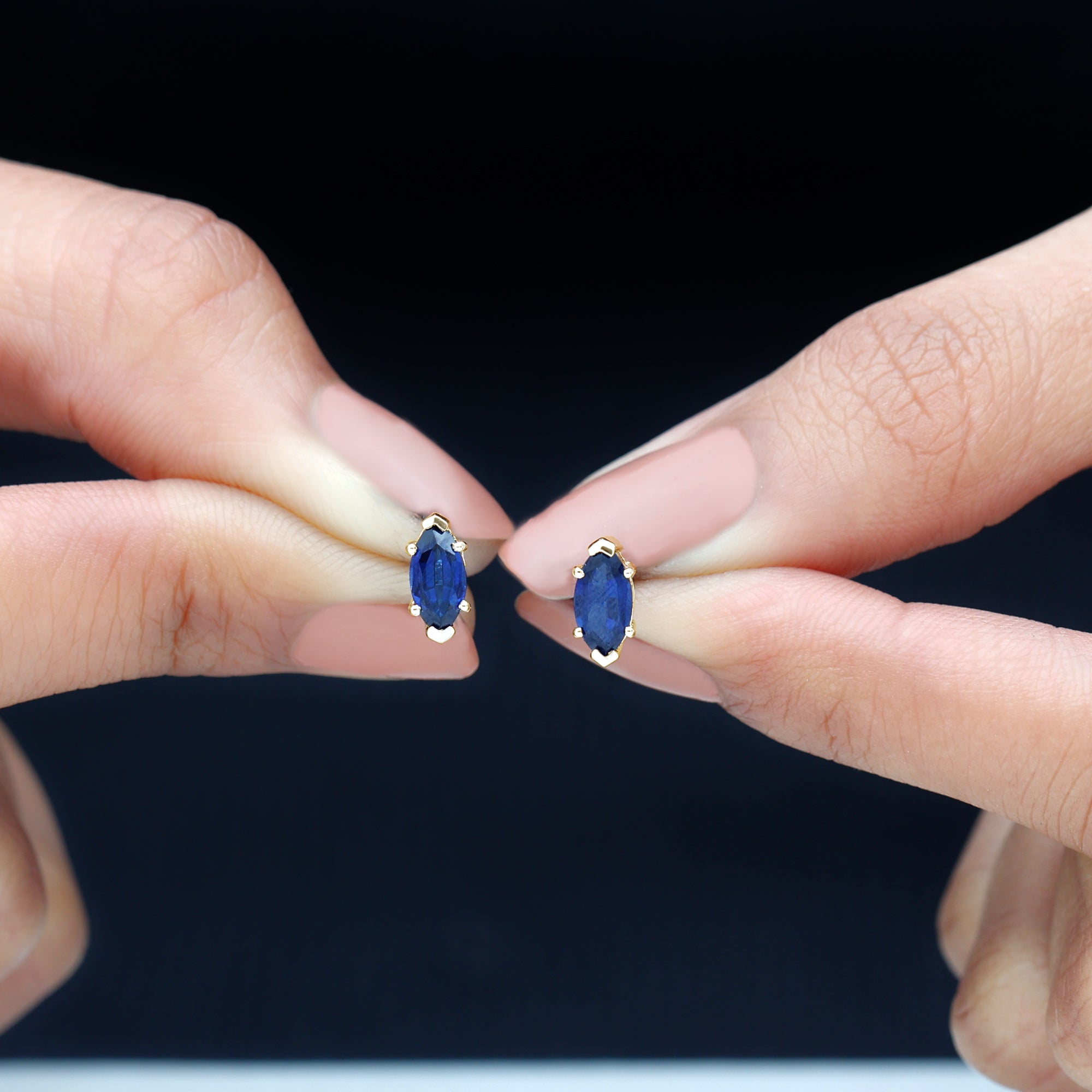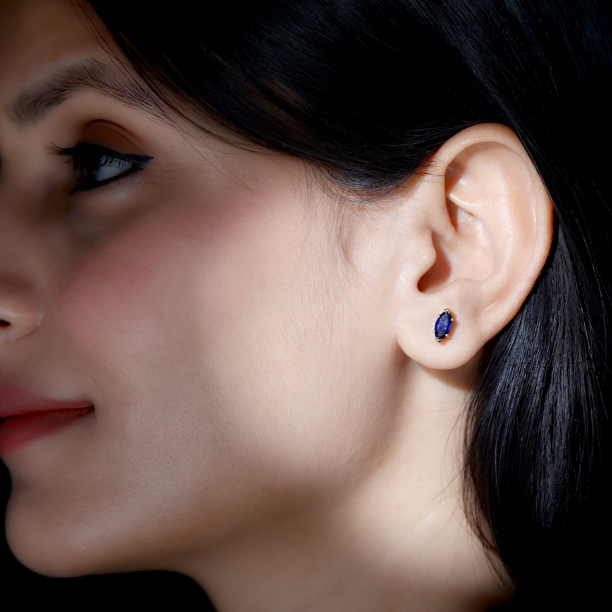 Timeless elegance captured in a single stone, these Stud Earrings feature Marquise Cut Lab Created held in prong setting making these earrings a stylish accessory. Crafted with proper care and attention, the Blue Sapphire Earrings are designed to embrace all your casual and formal outfits. Comfortably secure with Screw Back Closures ensures both safe and snug fit. Adorn her ears by gifting these effortless Solitaire Earrings on her special day.