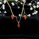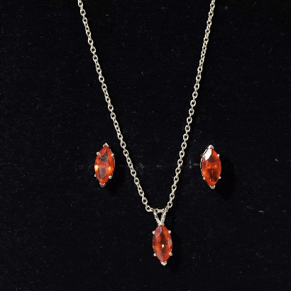 Stunning, this Solitaire Jewelry Set is adorned with Marquise Cut Fire Opal in Prong Setting. The 4X8 MM Fire Opal Solitaire Pendant and Earring Set will be a exotic piece for a woman to wear on any occasion and get lot of compliments.