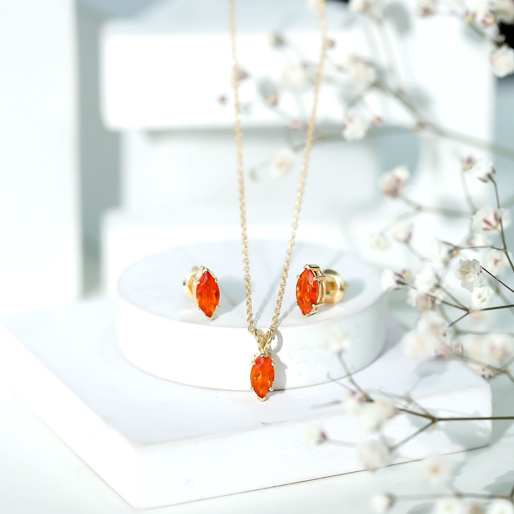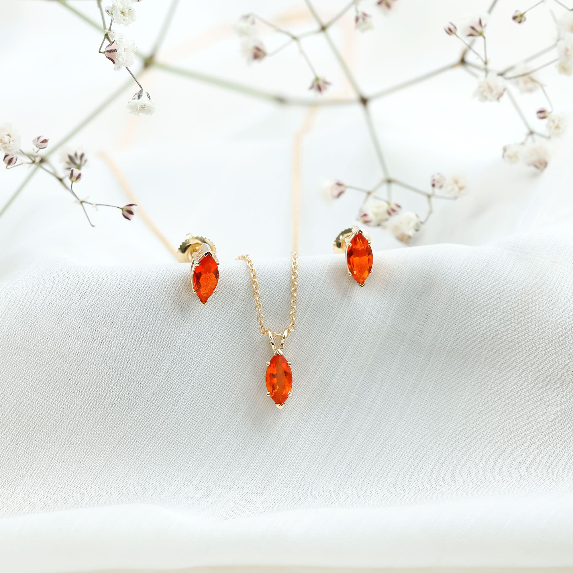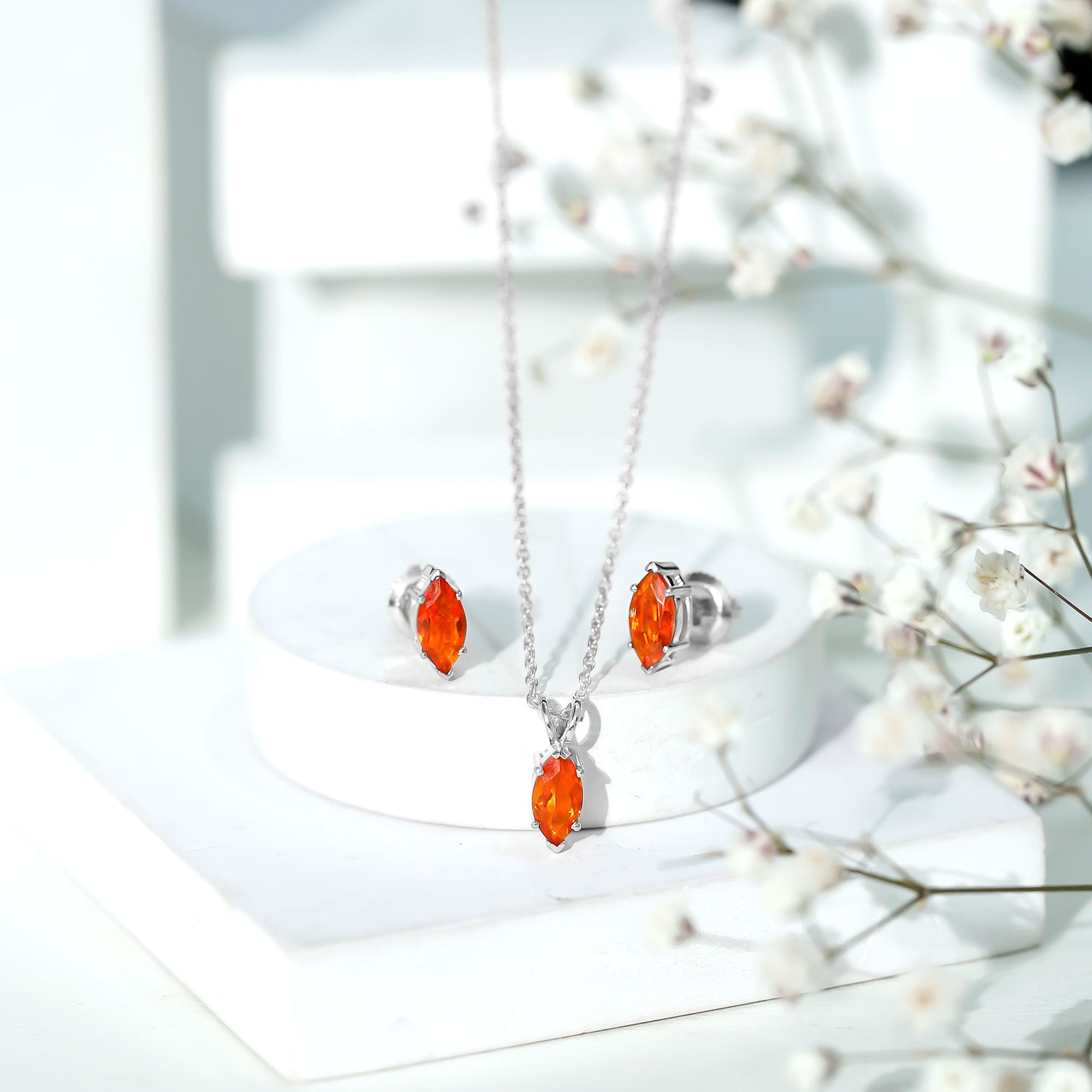 4X8 MM Marquise Cut Fire Opal Solitaire Pendant and Earring Set