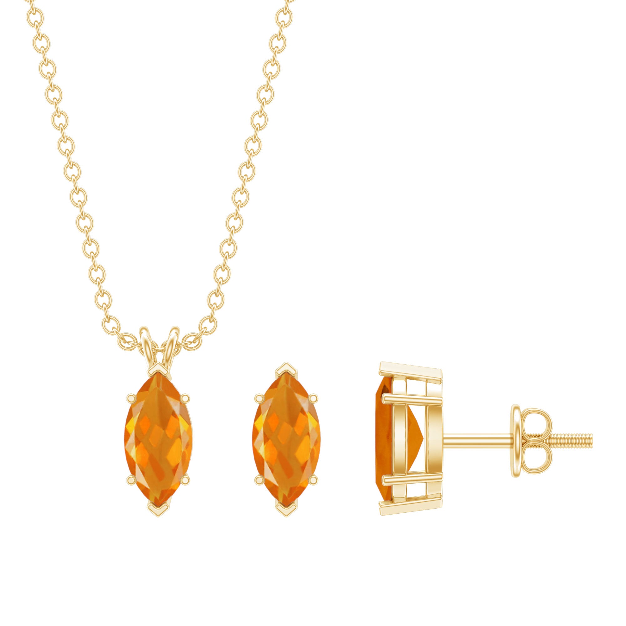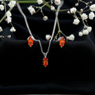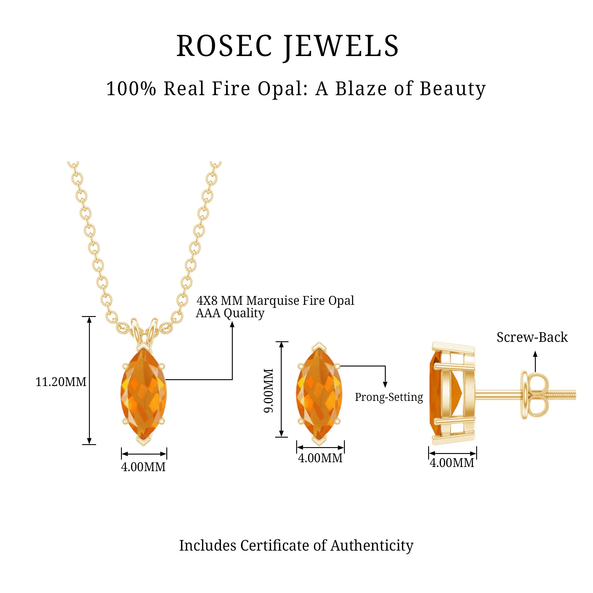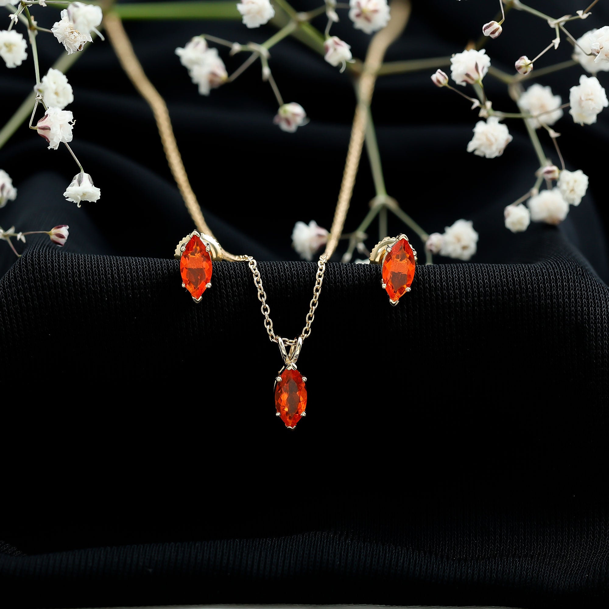 4X8 MM Marquise Cut Fire Opal Solitaire Pendant and Earring Set