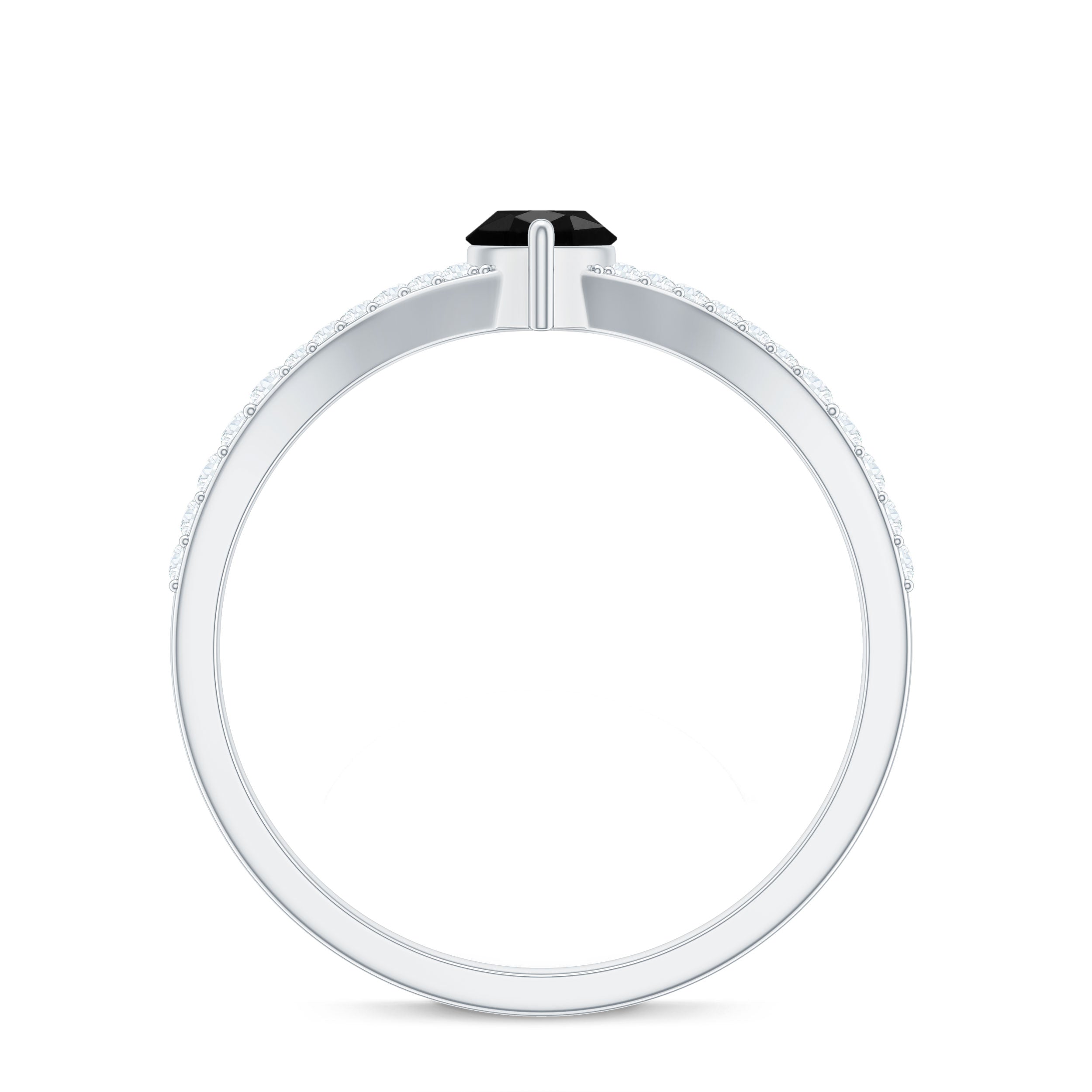 This gorgeous Marquise Engagement Ring is a fantastic way to express love to your lady. At its heart is a 4X8 MM Marquise cut Black Onyx held in prong setting. The Split Shank Engagement Ring showcases a split shank band, adorned with round cut Diamond stones. Crafted with meticulous attention, this Black Onyx Engagement Ring boasts a designer vibe and sophisticated details, ideal for anyone seeking something distinctive and eye-catching. Whether you are popping the question or marking a special occasion, this Split Shank Ring is designed to shine and be cherished for a lifetime. It provides exceptional brilliance, durability, and timeless elegance without breaking the bank. The Marquise Cut Onyx Ring arrives in a lovely jewelry box, perfect for gifting. Plus, you will get a certificate of authenticity for the stone, ensuring you feel good about your purchase. This stylish and budget-friendly engagement ring is made to dazzle in every way, just like your love.