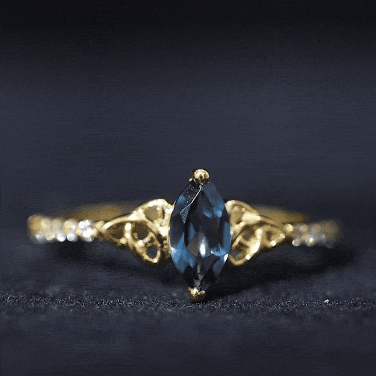 London blue topaz is known for its deep, saturated blue tone with subtle depth. In a marquise cut, the gemstone appears elongated and elegant, enhancing finger coverage and presence.