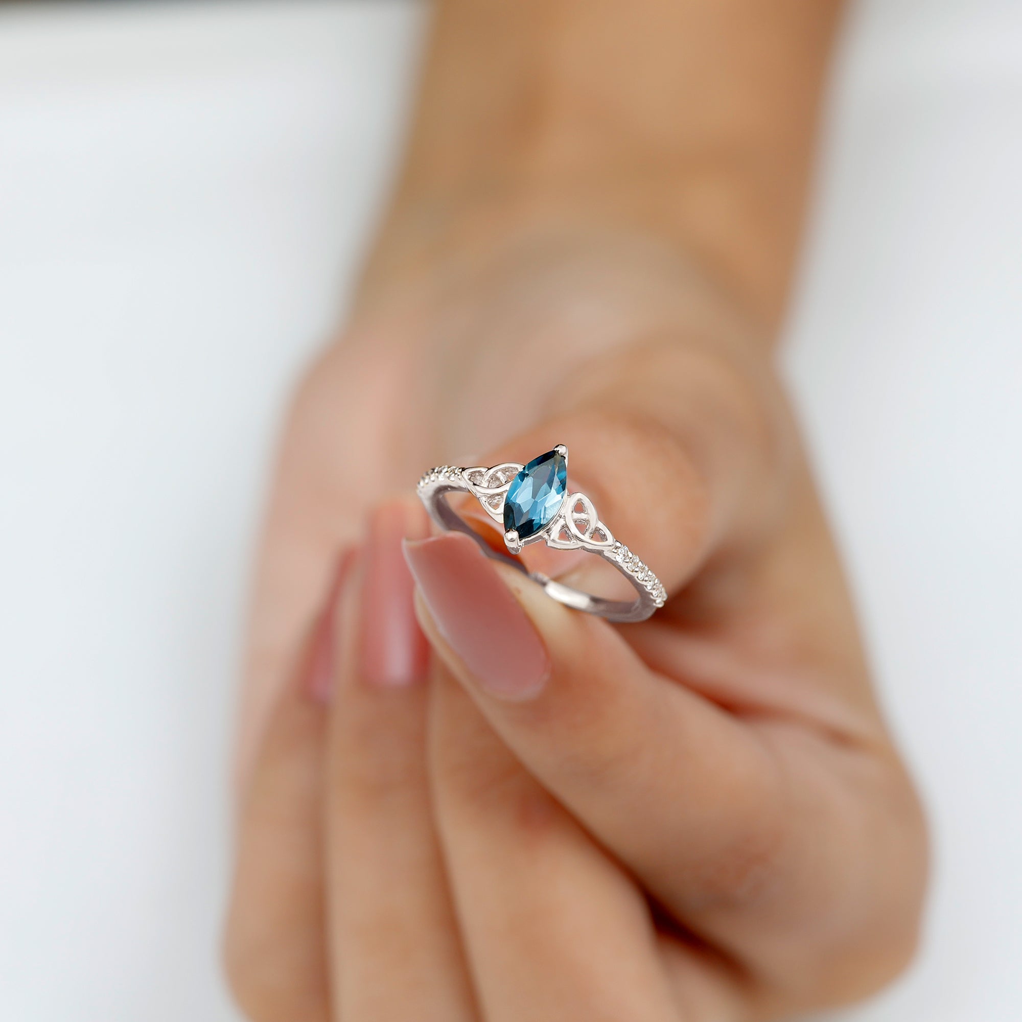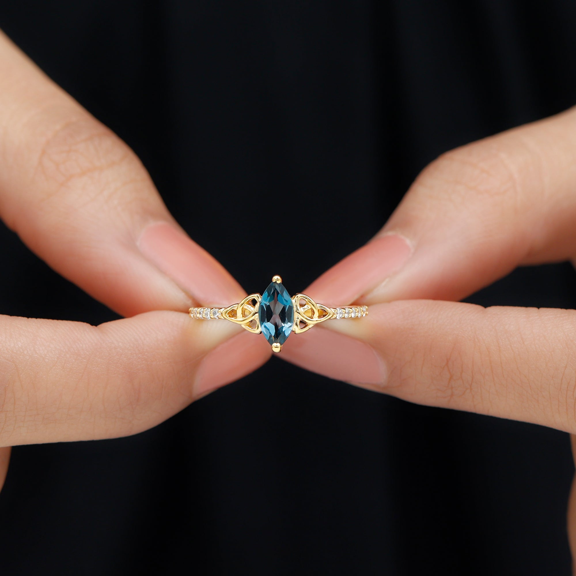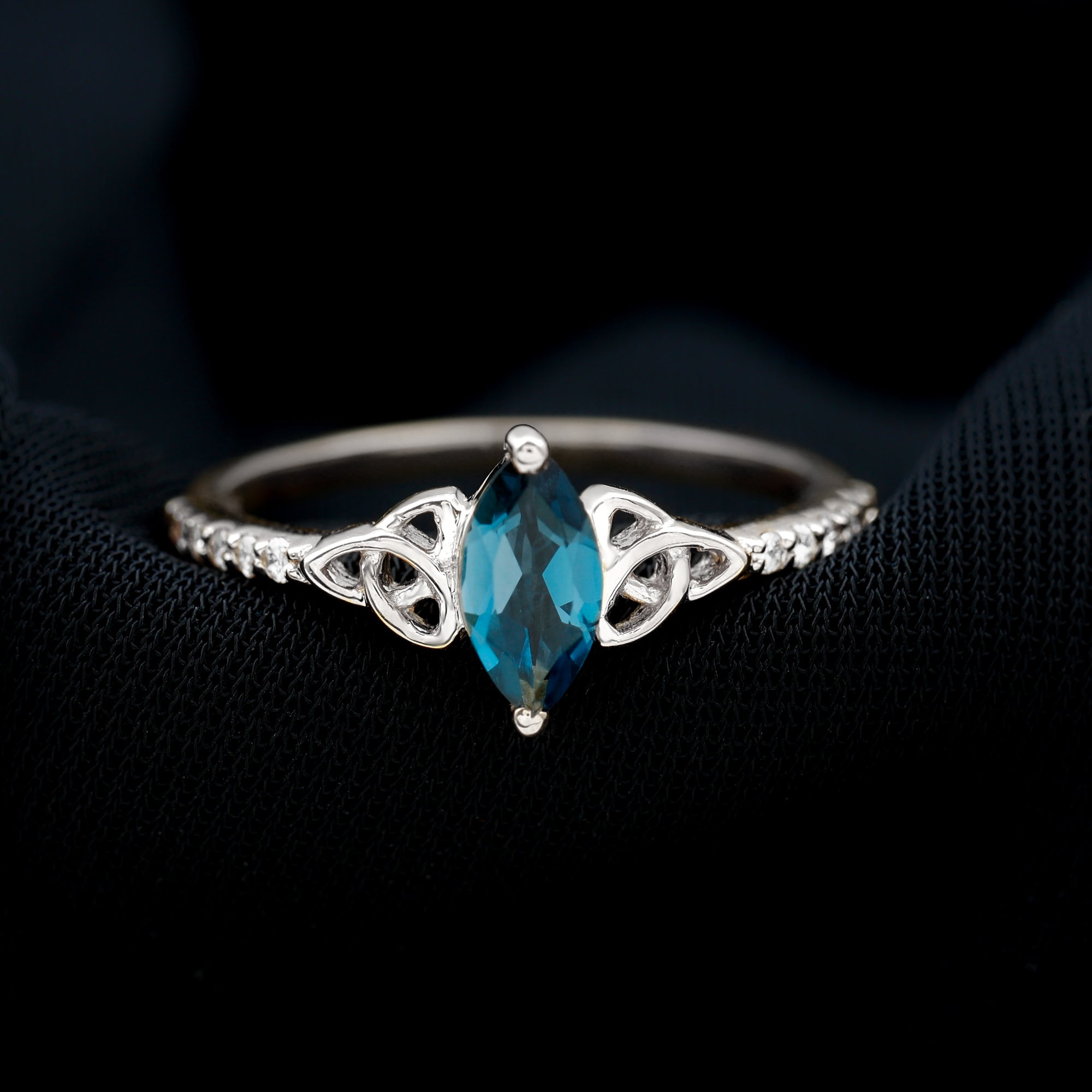 4x8mm Marquise Cut London Blue Topaz Celtic Engagement Ring with Diamond