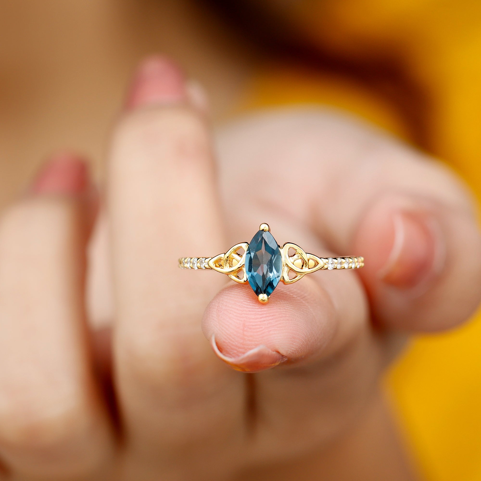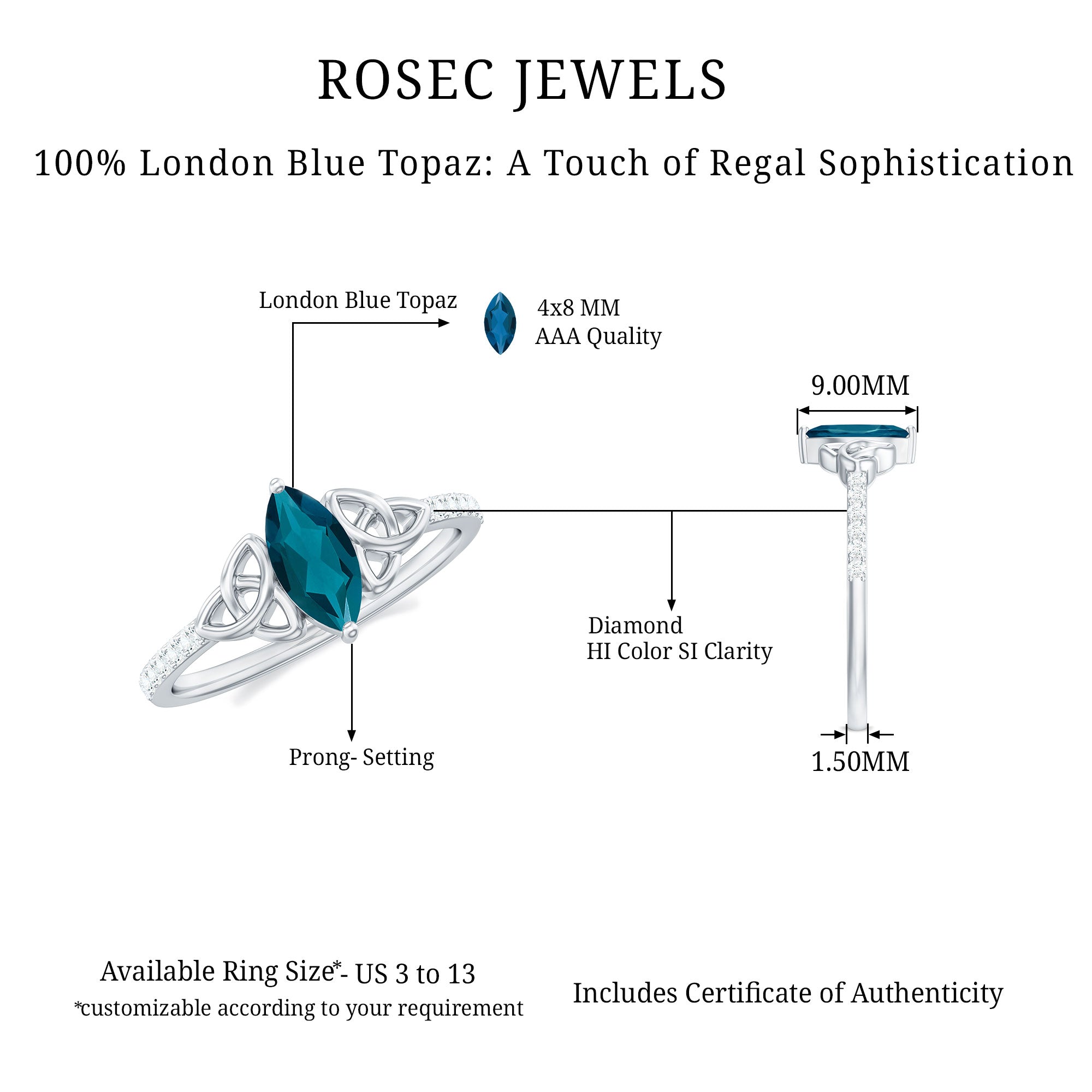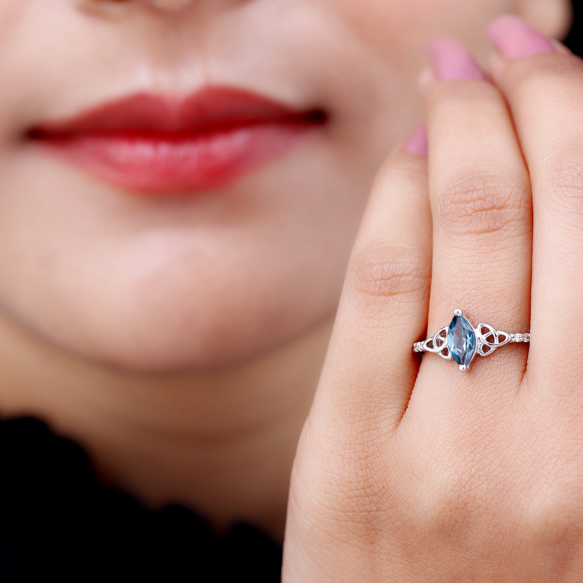 4x8mm Marquise Cut London Blue Topaz Celtic Engagement Ring with Diamond