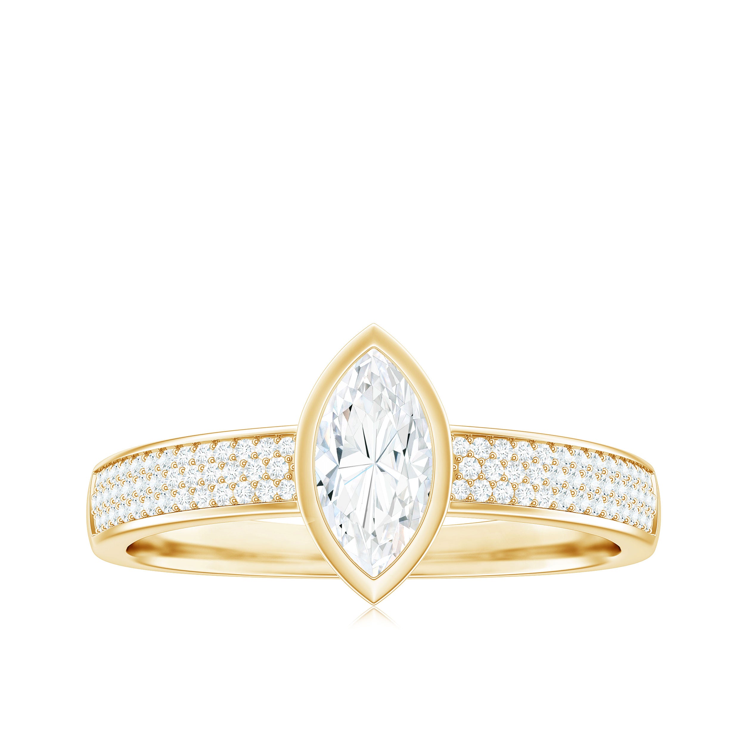 4x8mm Marquise Cut Moissanite Engagement Ring in Bezel Setting