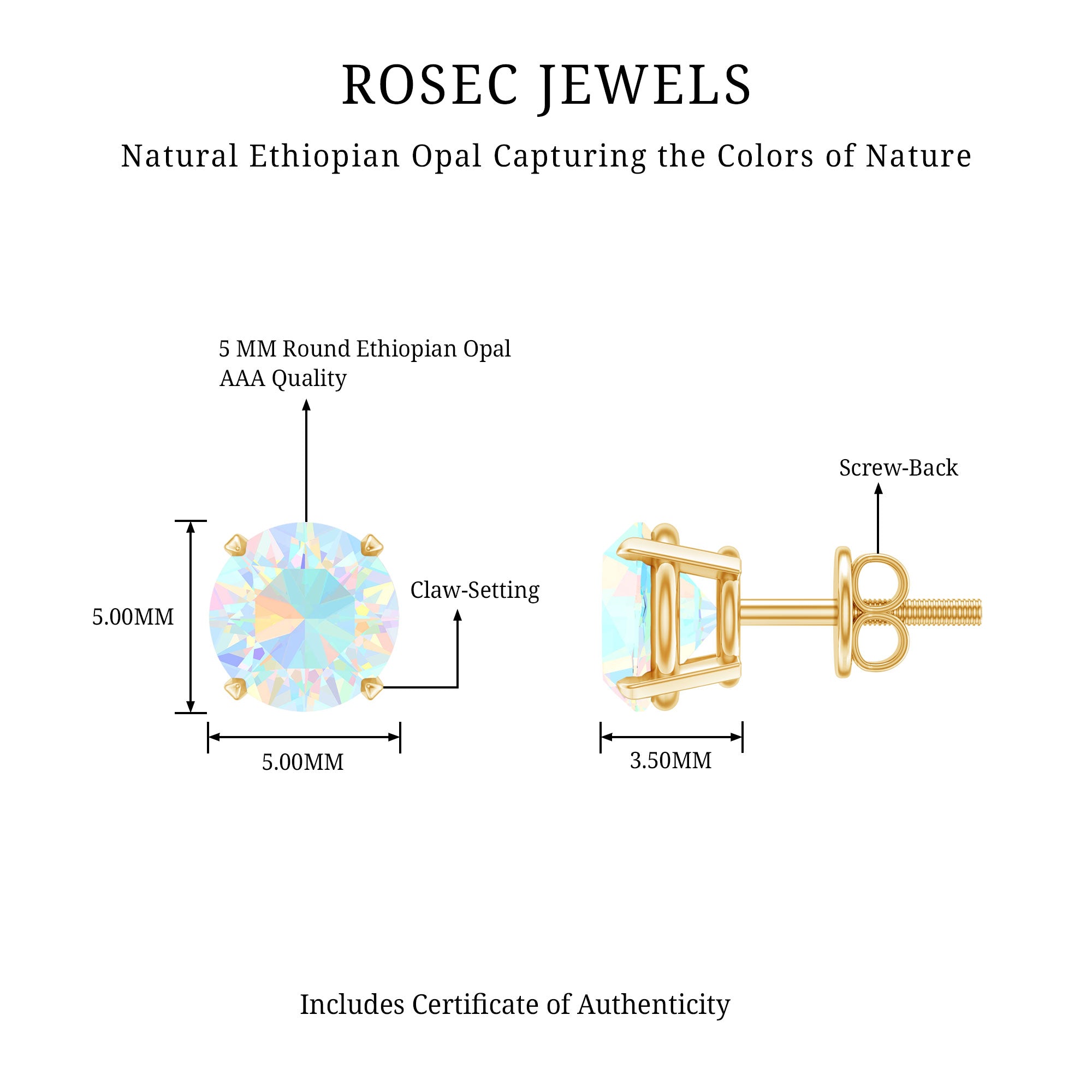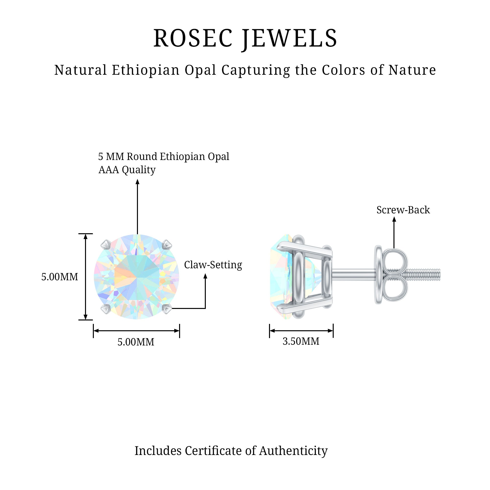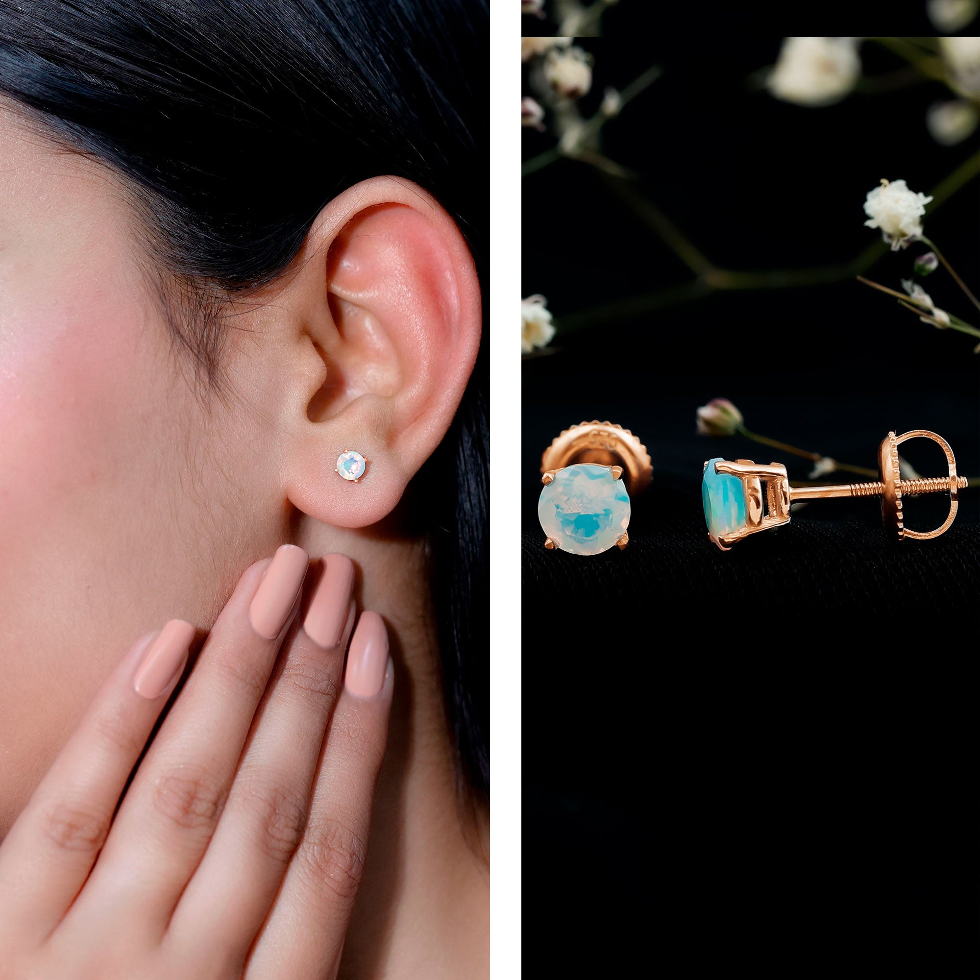 Elevate your elegance with our stunning Solitaire Stud Earrings, each adorned with a mesmerizing Round Shape Ethiopian Opal gemstone, delicately cradled in a secure Claw Setting. These earrings are a perfect choice for those who appreciate the unique beauty and allure of opal, adding a touch of enchantment to any look.