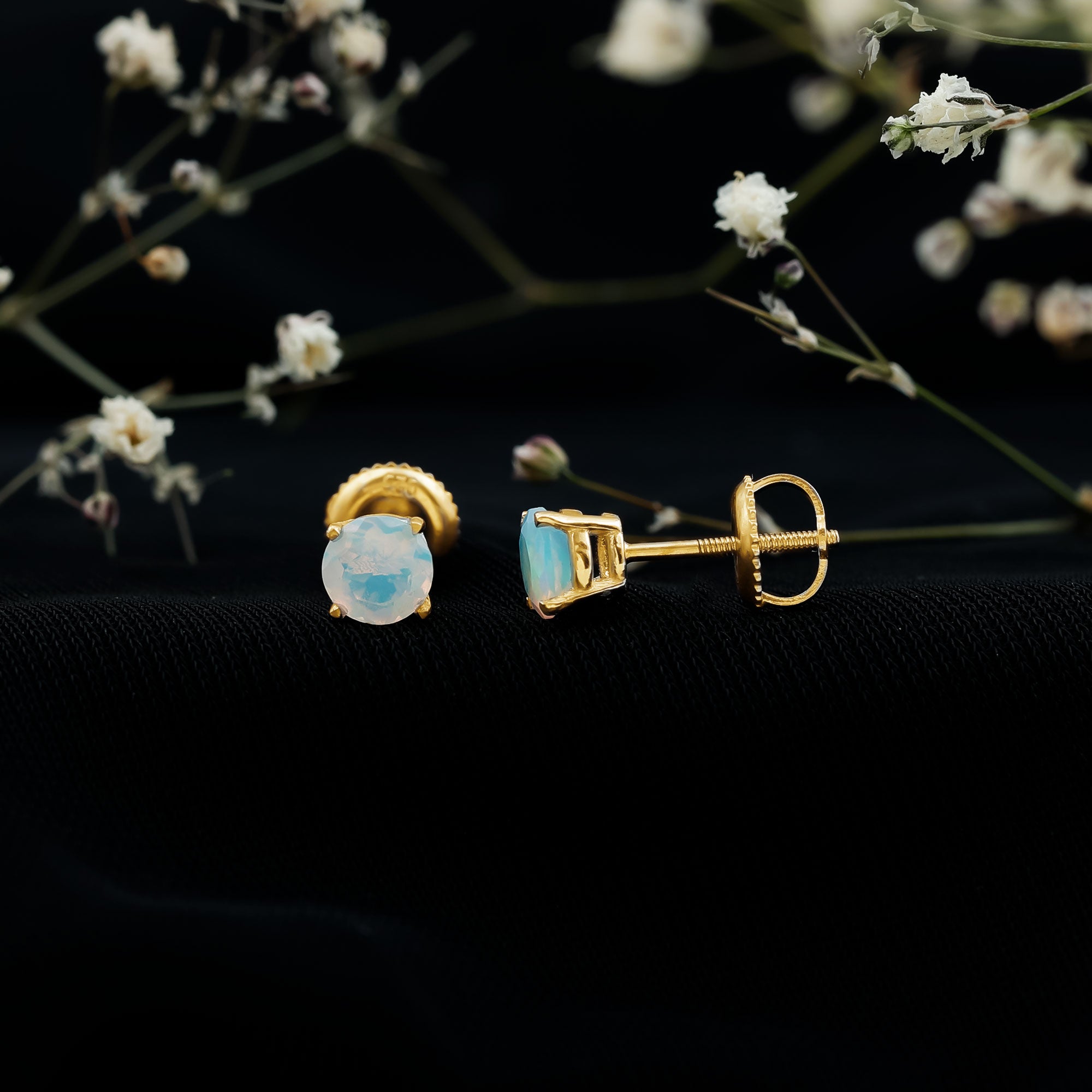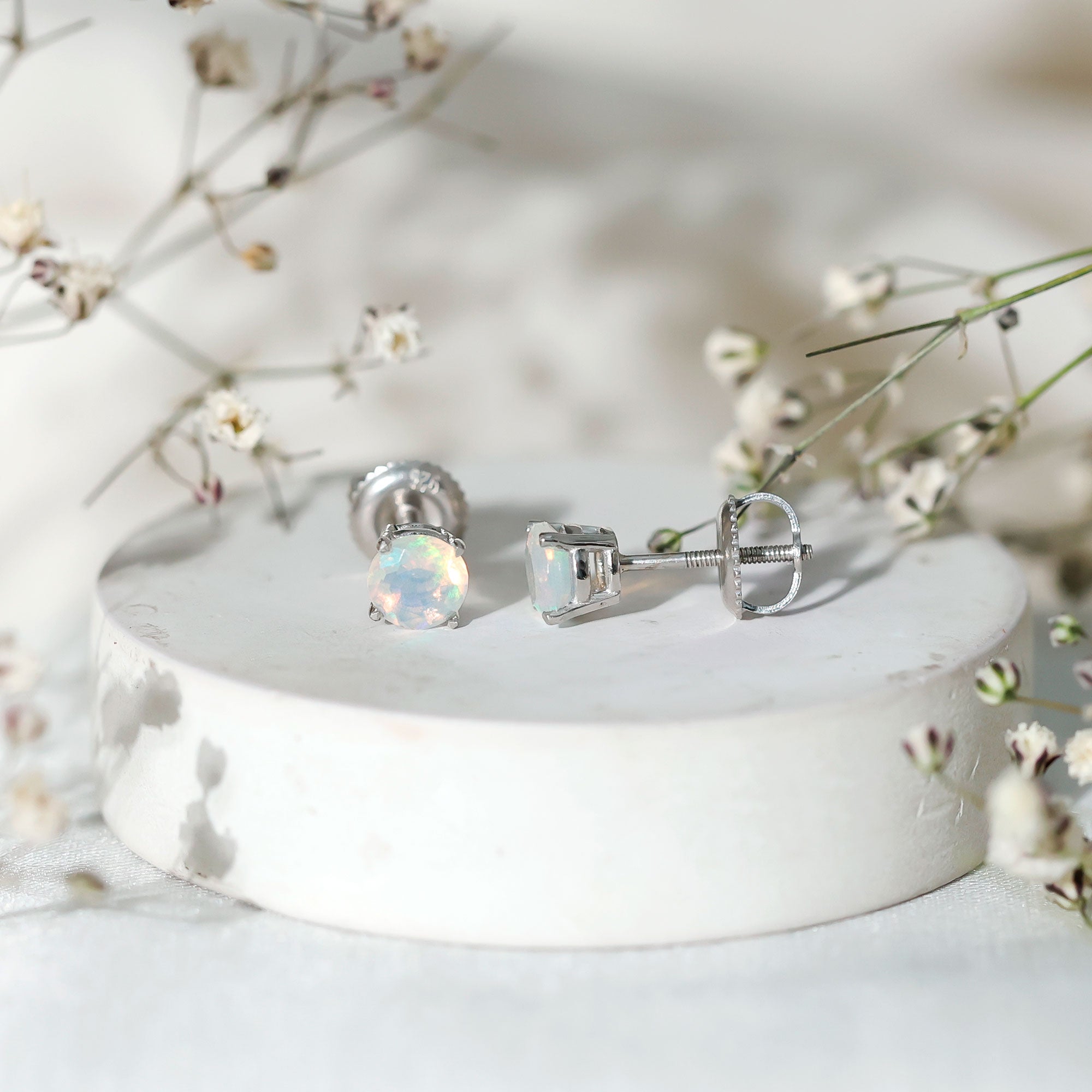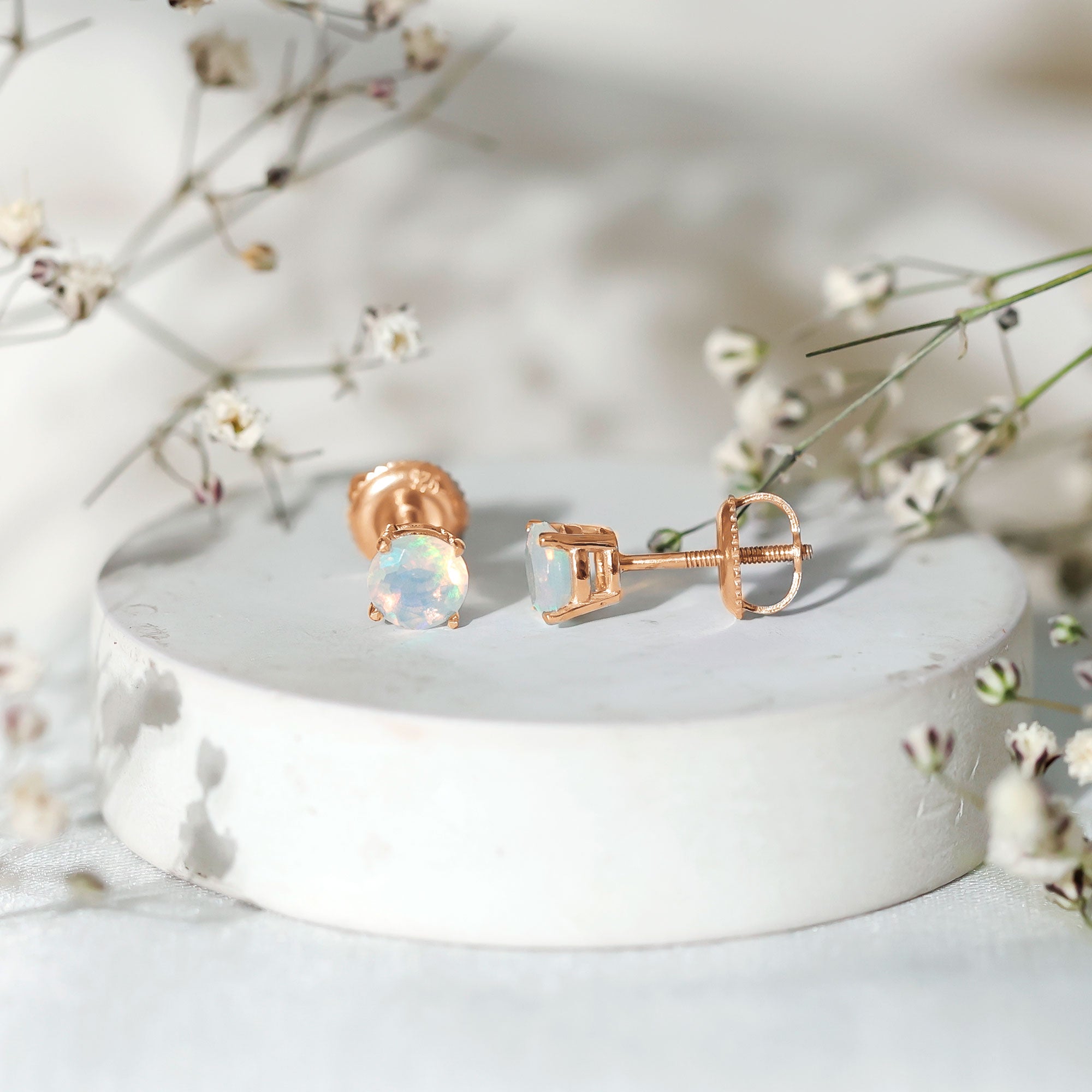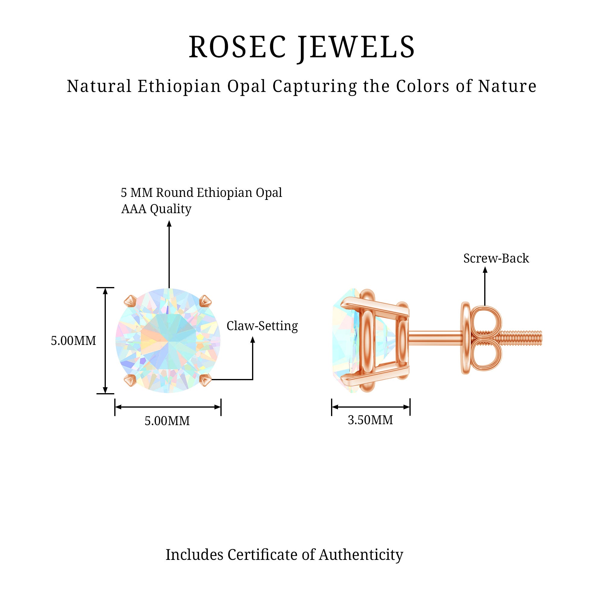 Elevate your elegance with our stunning Solitaire Stud Earrings, each adorned with a mesmerizing Round Shape Ethiopian Opal gemstone, delicately cradled in a secure Claw Setting. These earrings are a perfect choice for those who appreciate the unique beauty and allure of opal, adding a touch of enchantment to any look.