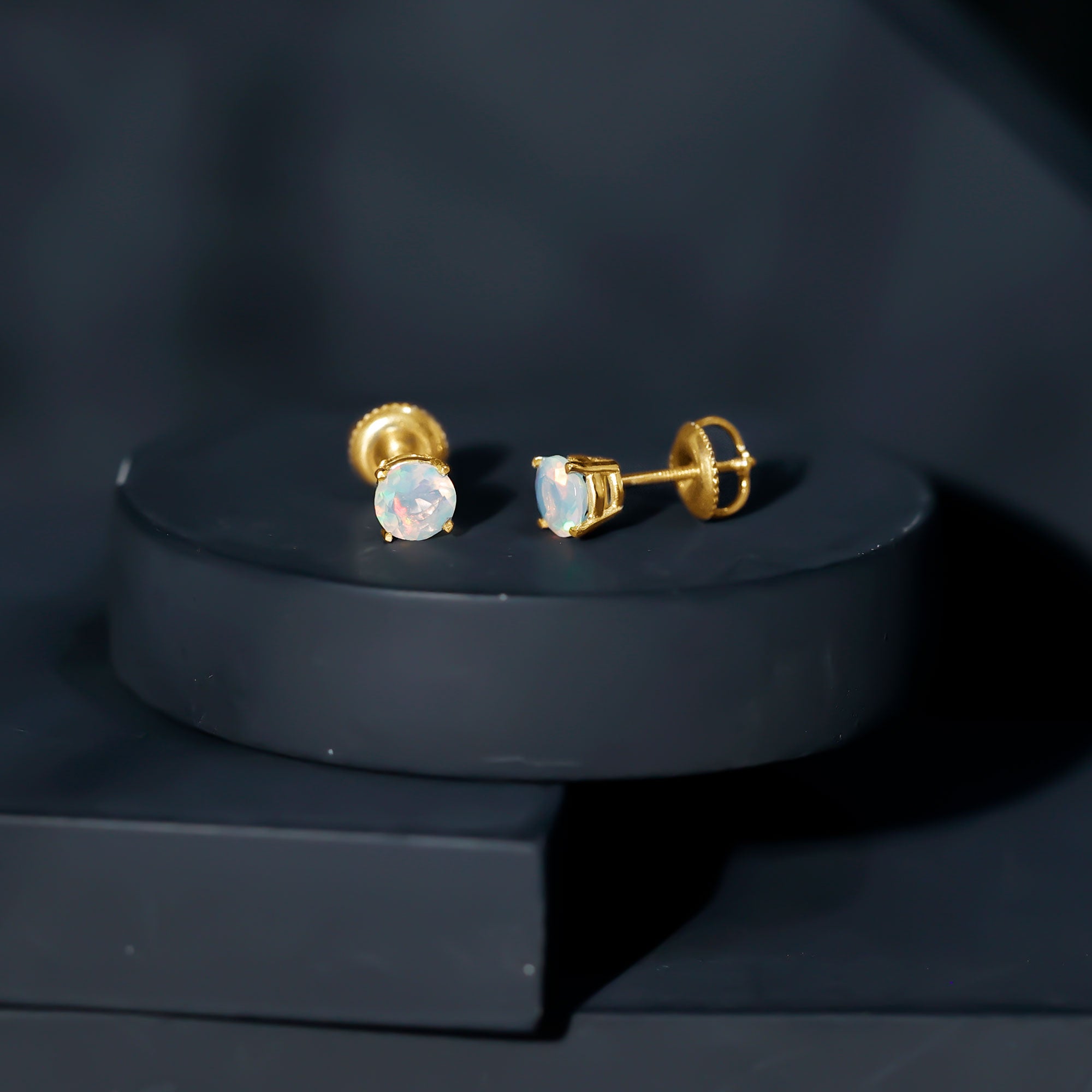 Real Ethiopian Opal Solitaire Stud Earrings
