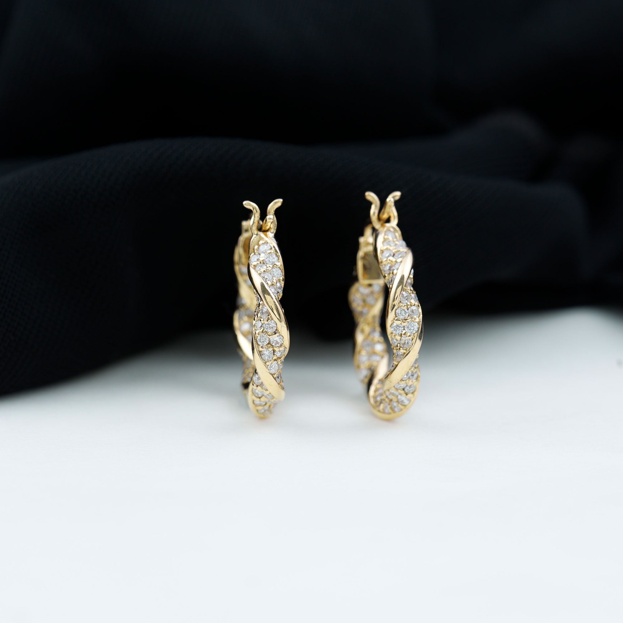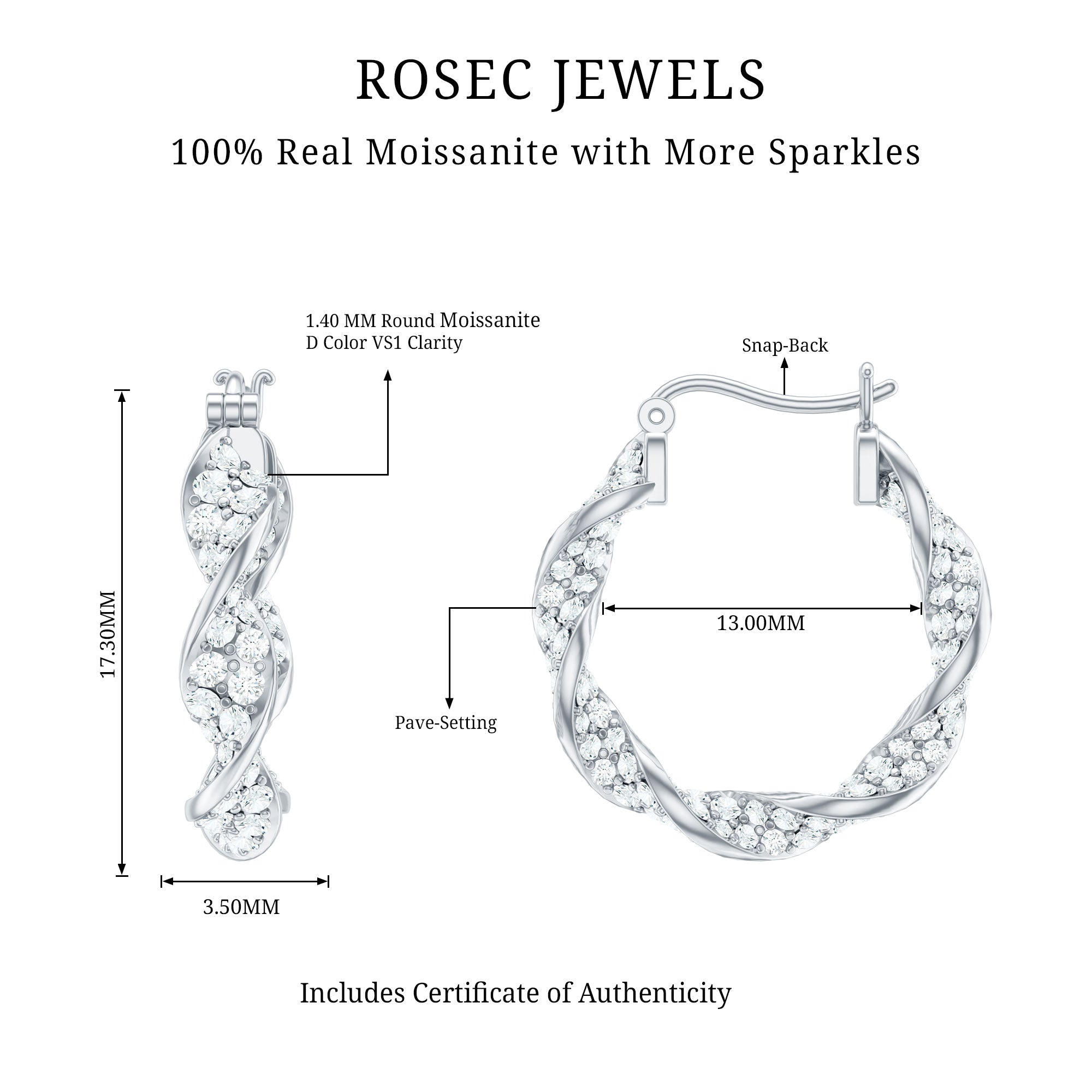 Elevate your personal style to new heights with the enduring elegance of these exquisite Hoop Earrings. These twisted hoops are not just accessories; they are timeless symbols of grace that transcend fashion trends. Each hoop is meticulously crafted with shimmering Round Shape Moissanite gemstones delicately encased in a captivating Pave Setting.