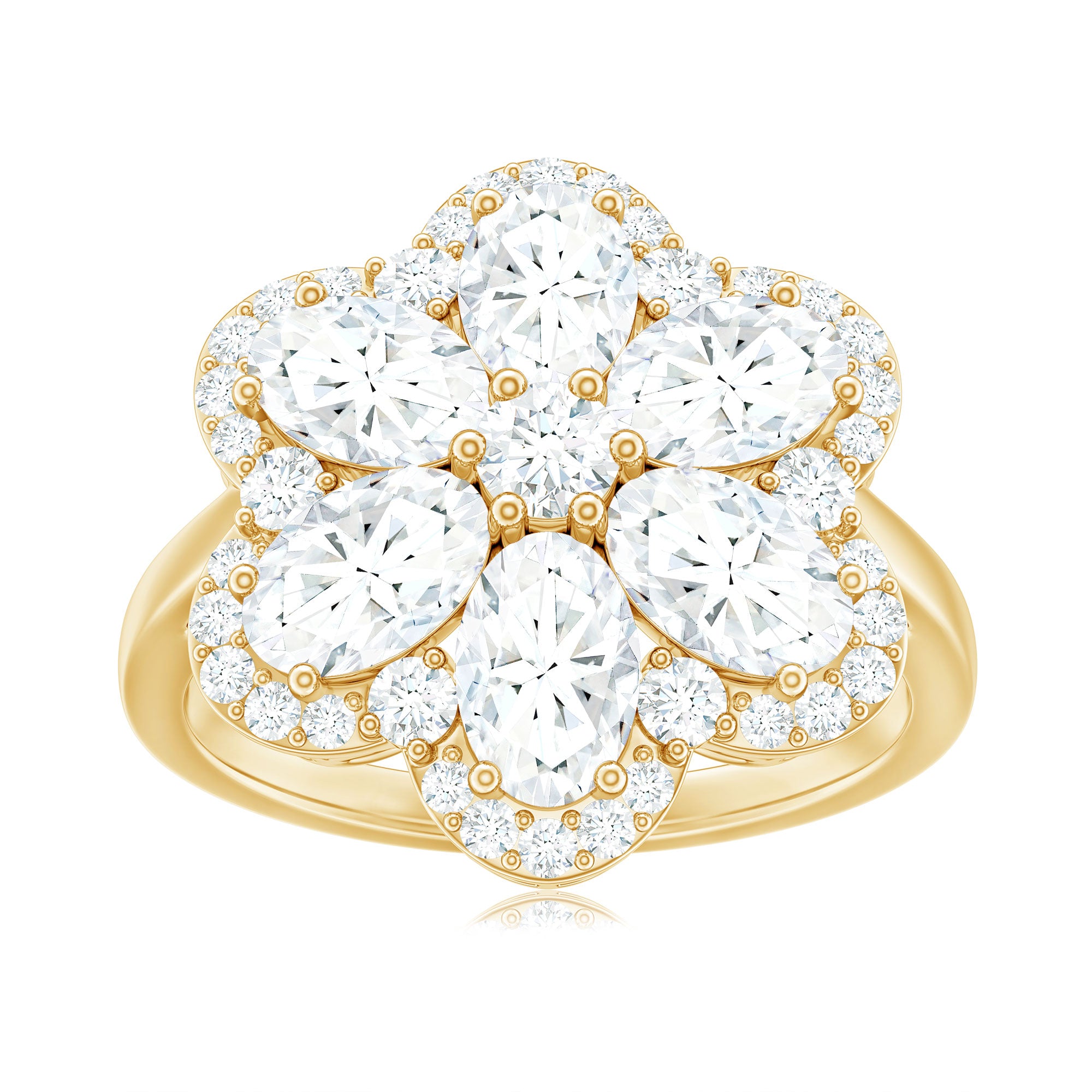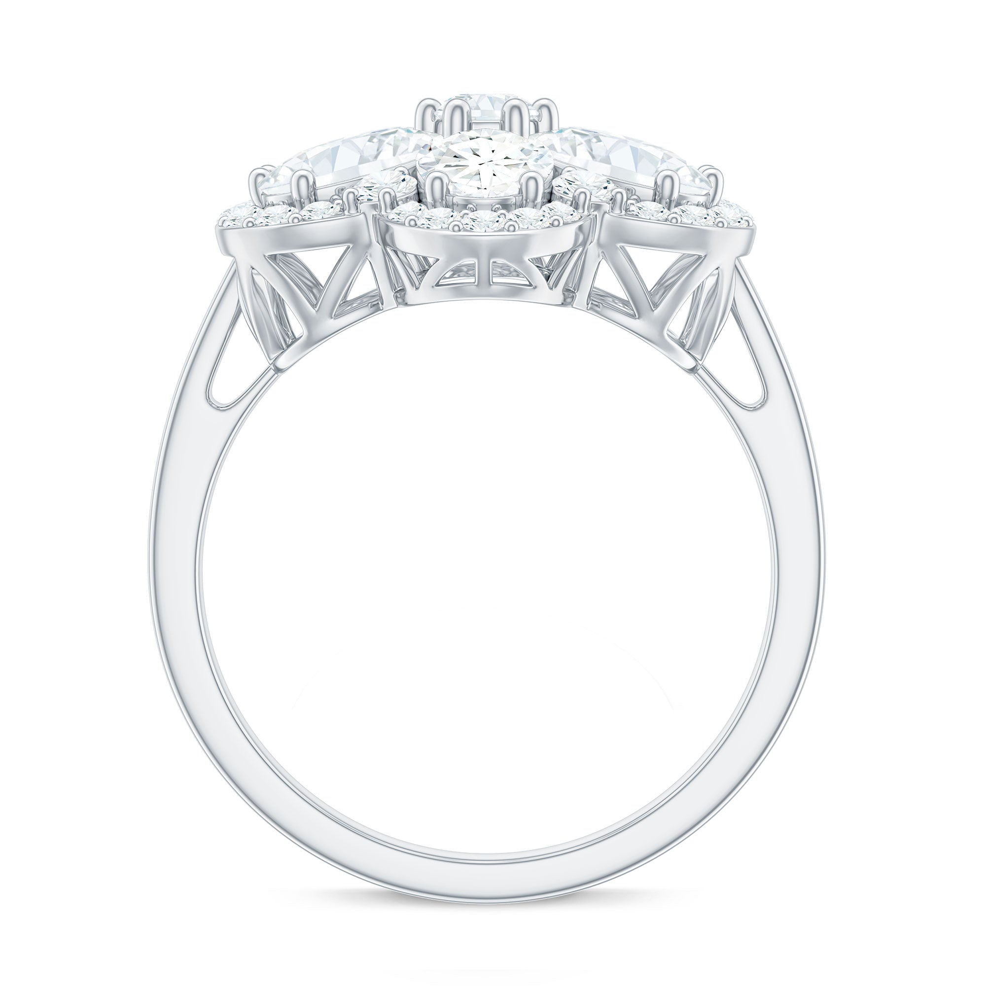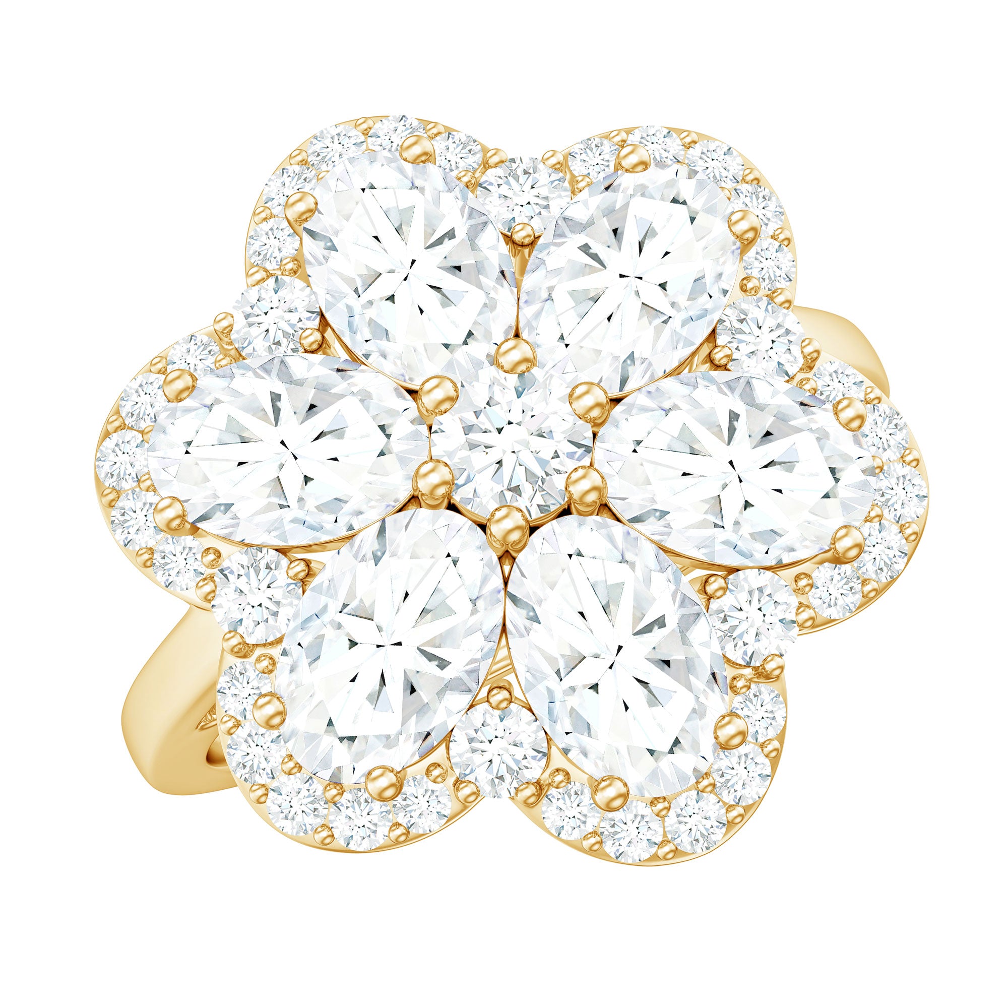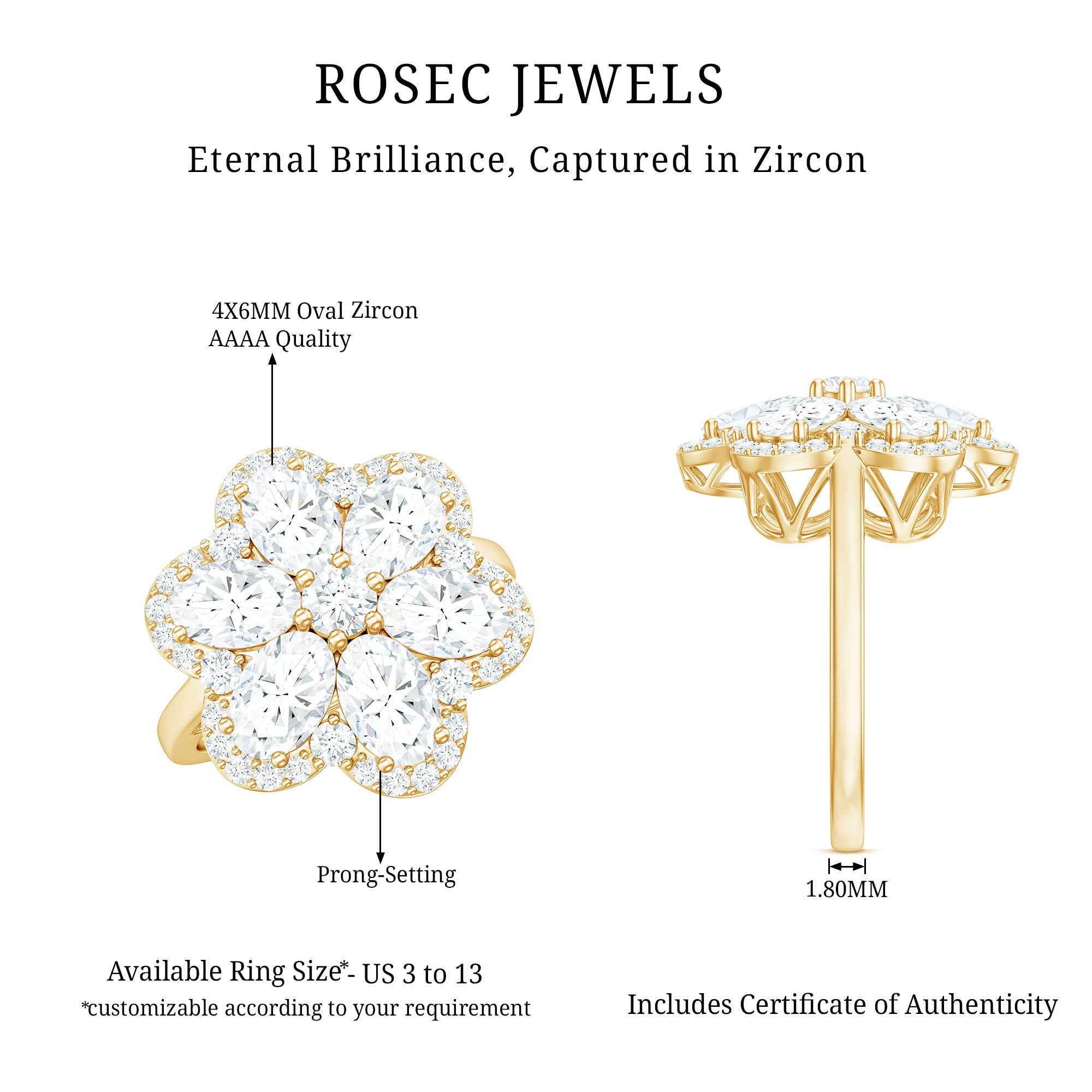 5.50 CT Oval and Round Cut Zircon Floral Statement Ring
