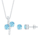 5 MM Aquamarine Minimal Jewelry Set with Diamond Accent